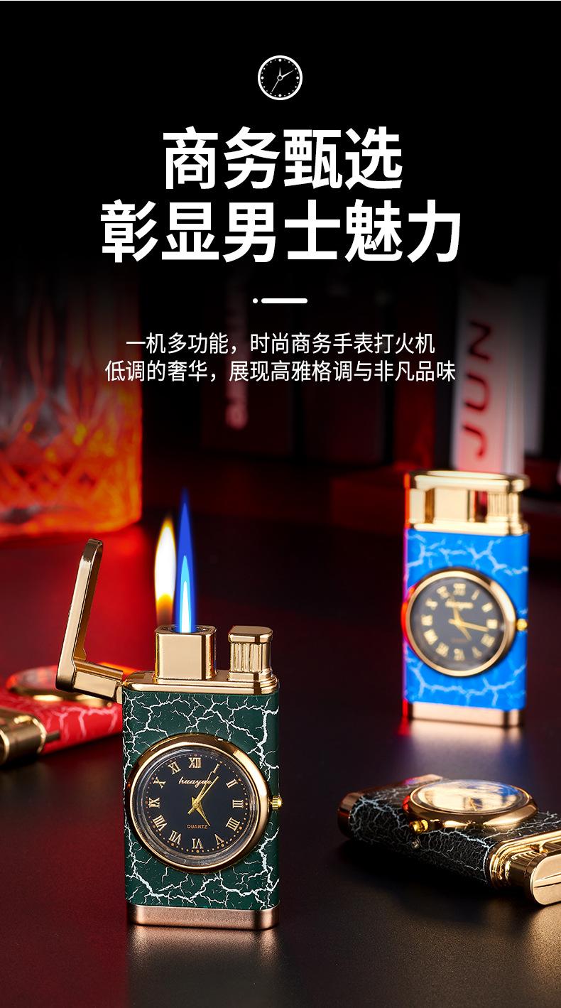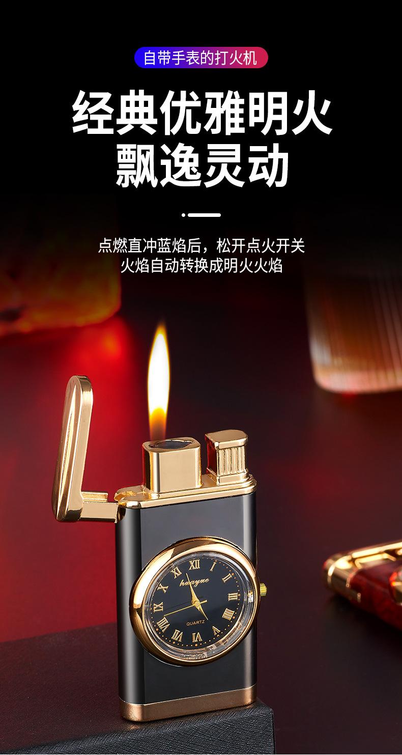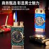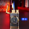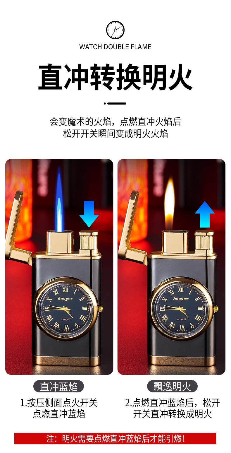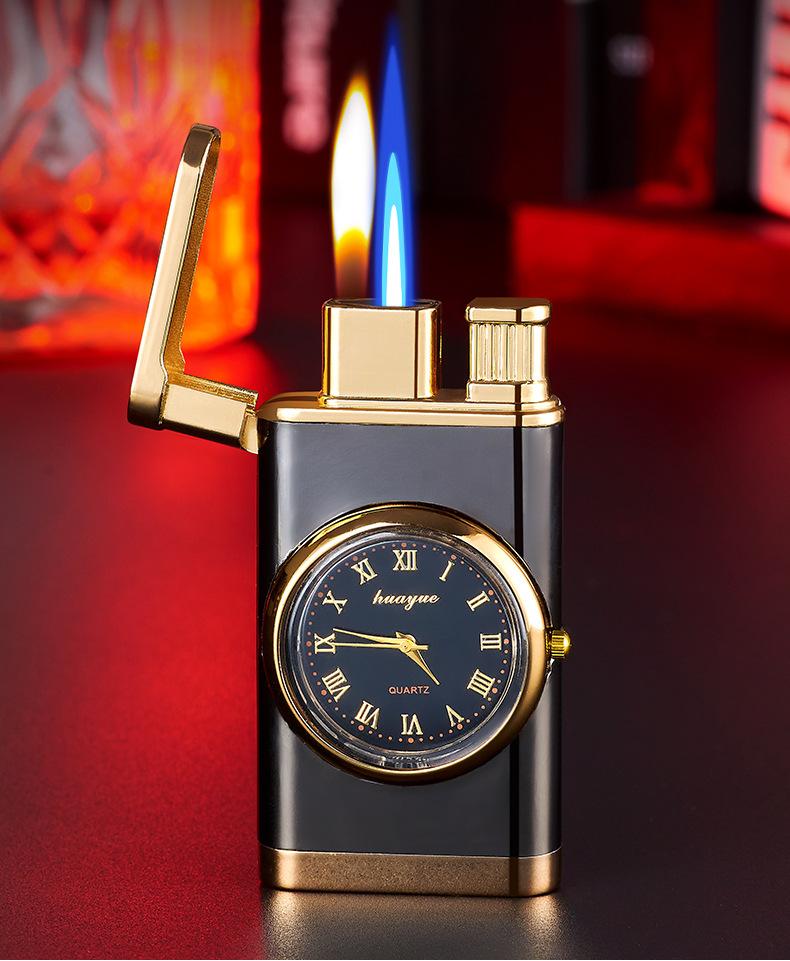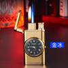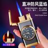 Encendedor creativo de doble fuego, conversión de punzón directo, encendedor inflable de fuego abierto, a prueba de viento, llama azul, multifuncional, con reloj personalizable