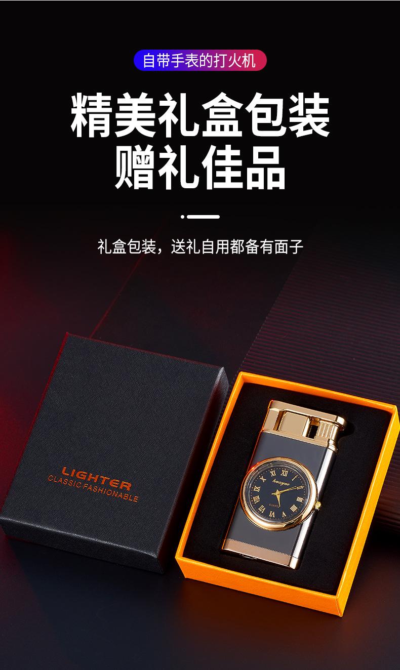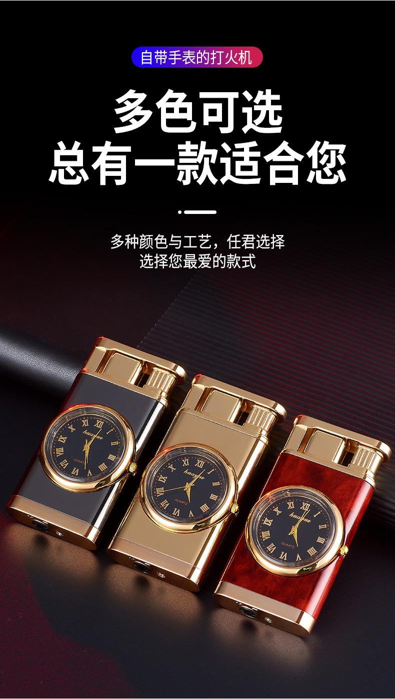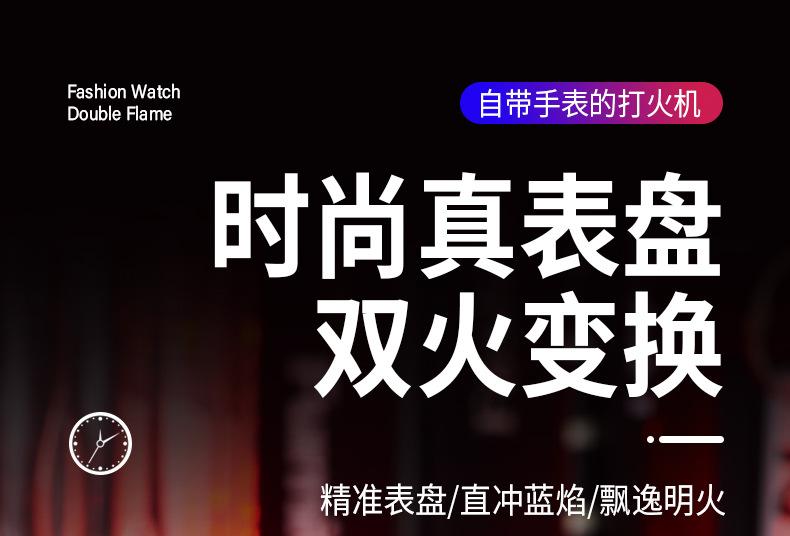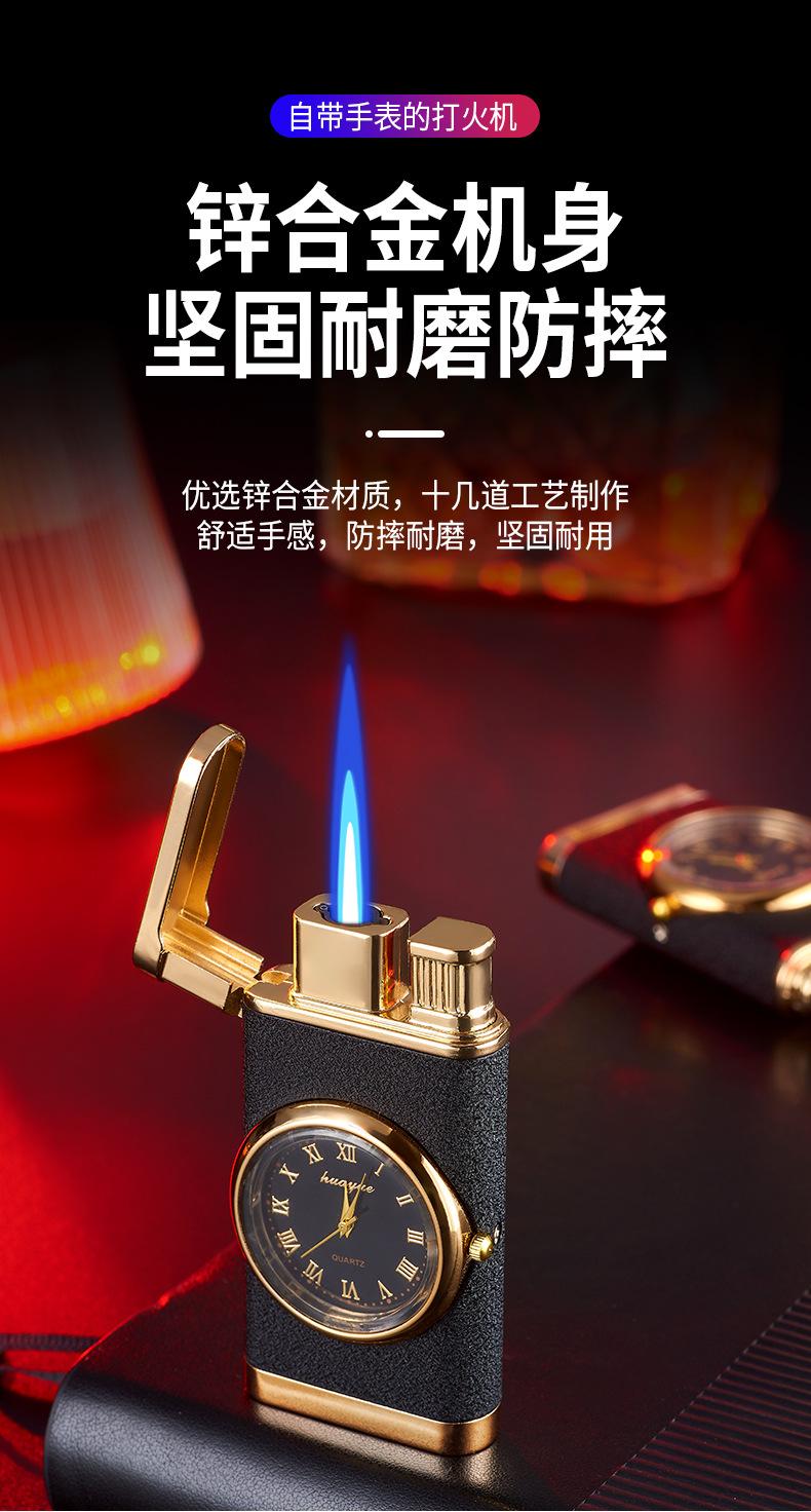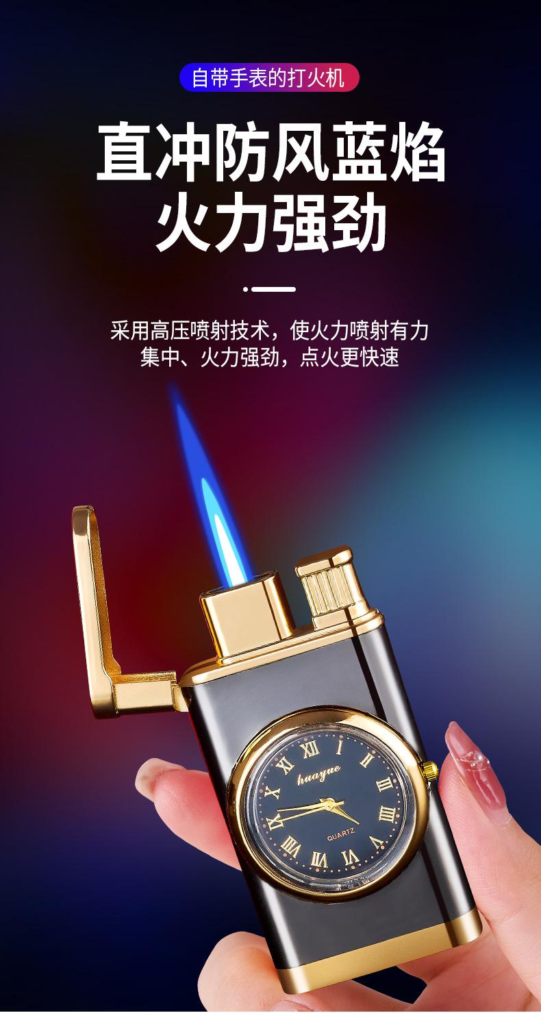 Encendedor creativo de doble fuego, conversión de punzón directo, encendedor inflable de fuego abierto, a prueba de viento, llama azul, multifuncional, con reloj personalizable