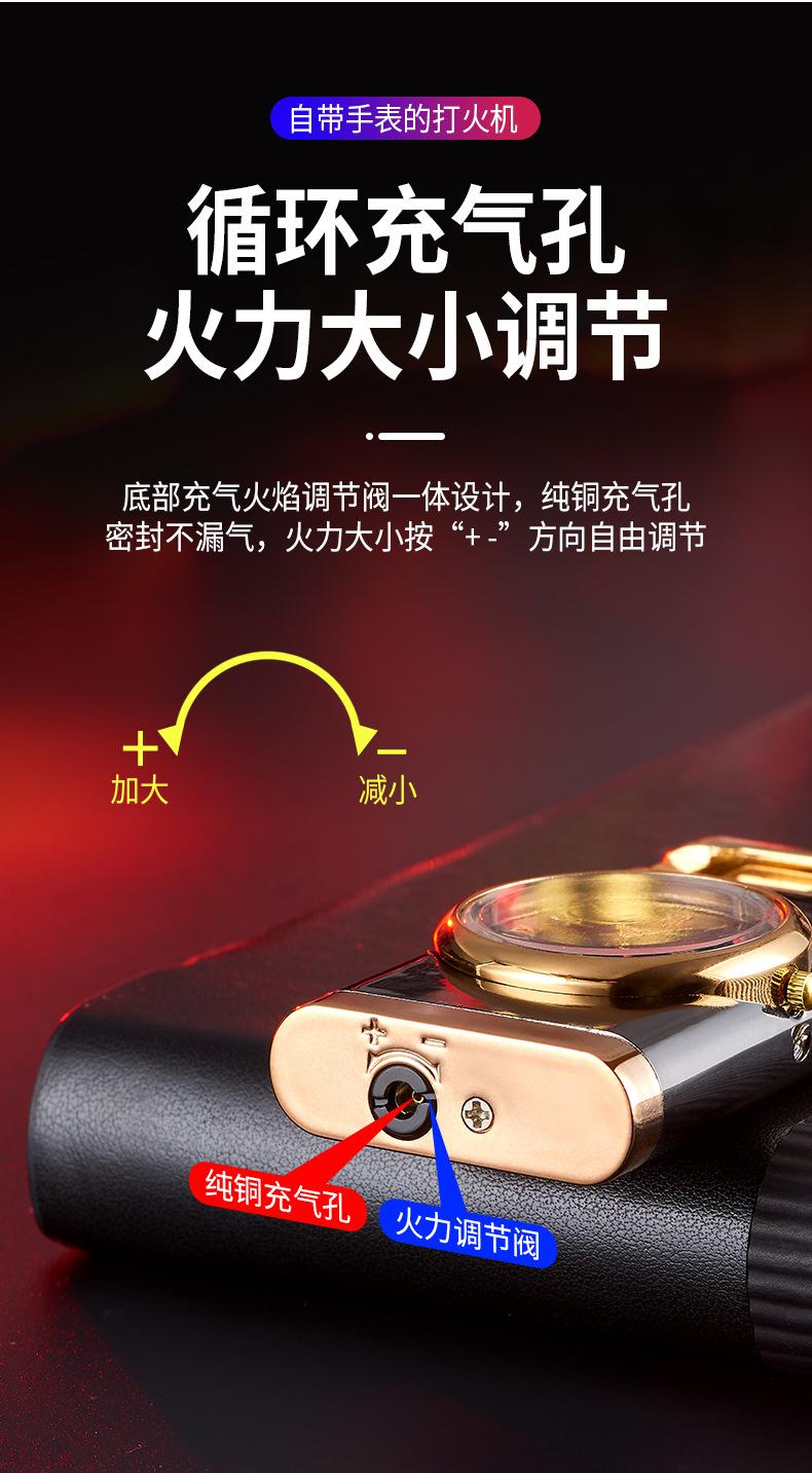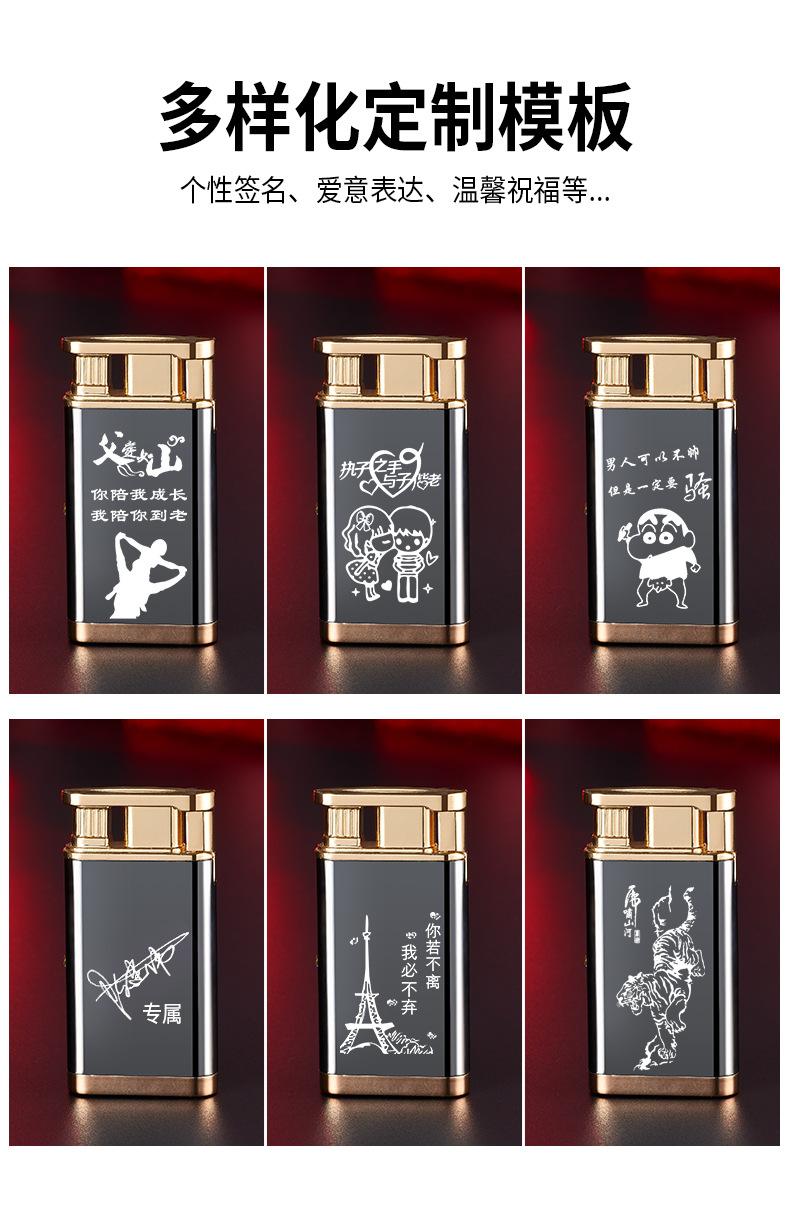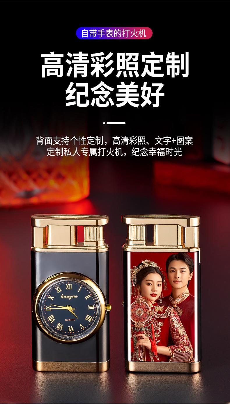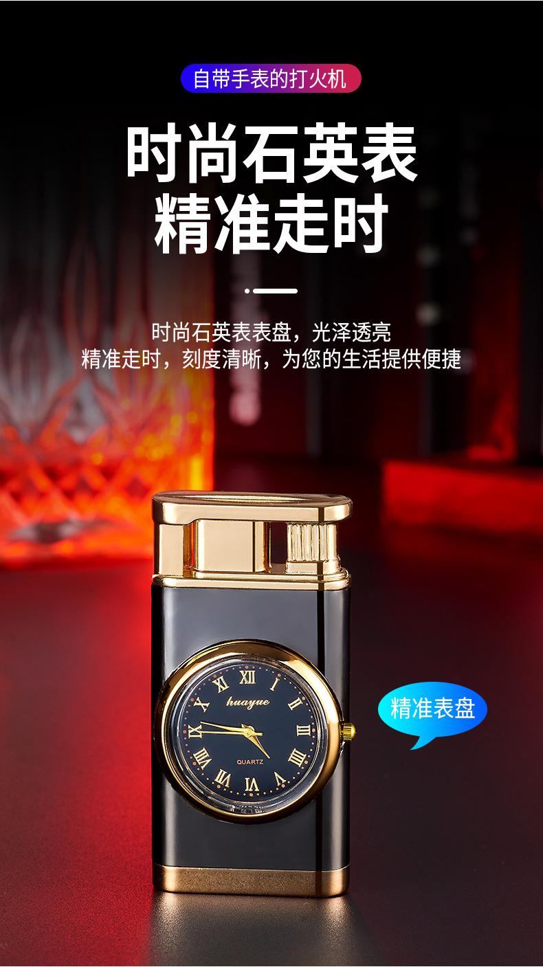 Encendedor creativo de doble fuego, conversión de punzón directo, encendedor inflable de fuego abierto, a prueba de viento, llama azul, multifuncional, con reloj personalizable