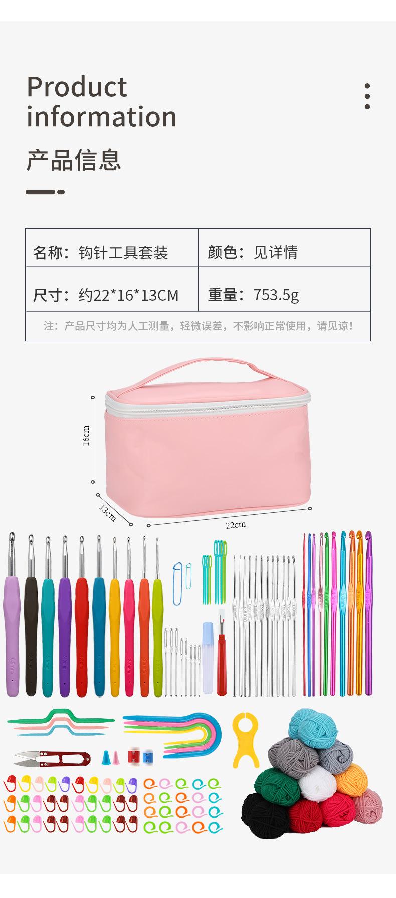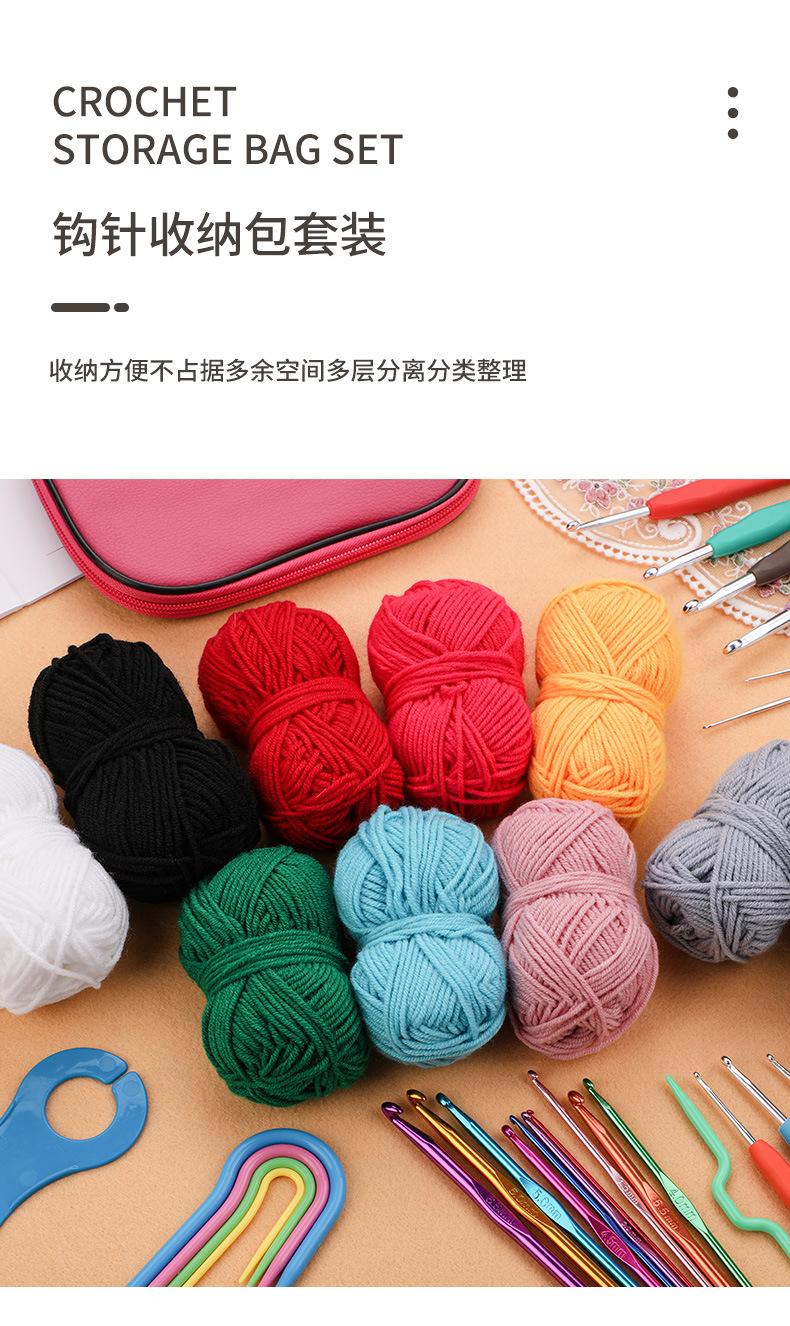 Bolsa de almacenamiento para trajes de lana de crochet transfronteriza, nueva, conjunto completo de materiales de crochet a mano, herramientas de tejido para principiantes