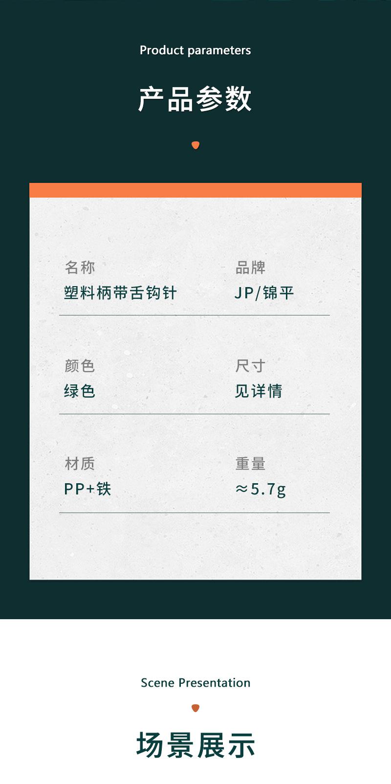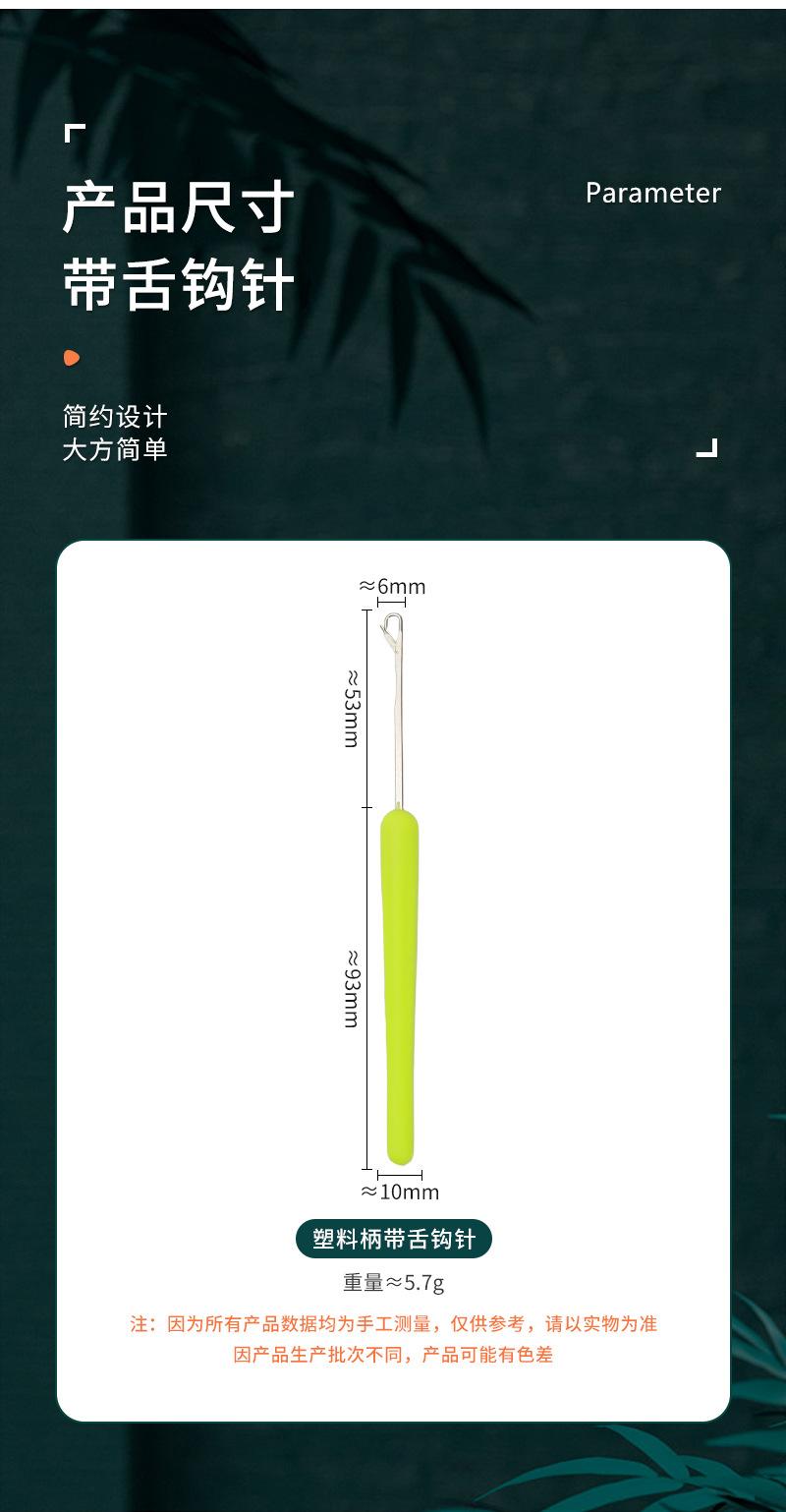 【Descripción del producto】: El ancho exterior del cabezal de la aguja de gancho es de aproximadamente 5.7 mm; generalmente depende del diámetro interior del gancho. Peso individual: 5g