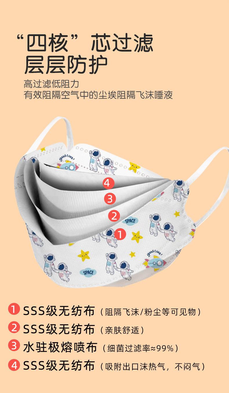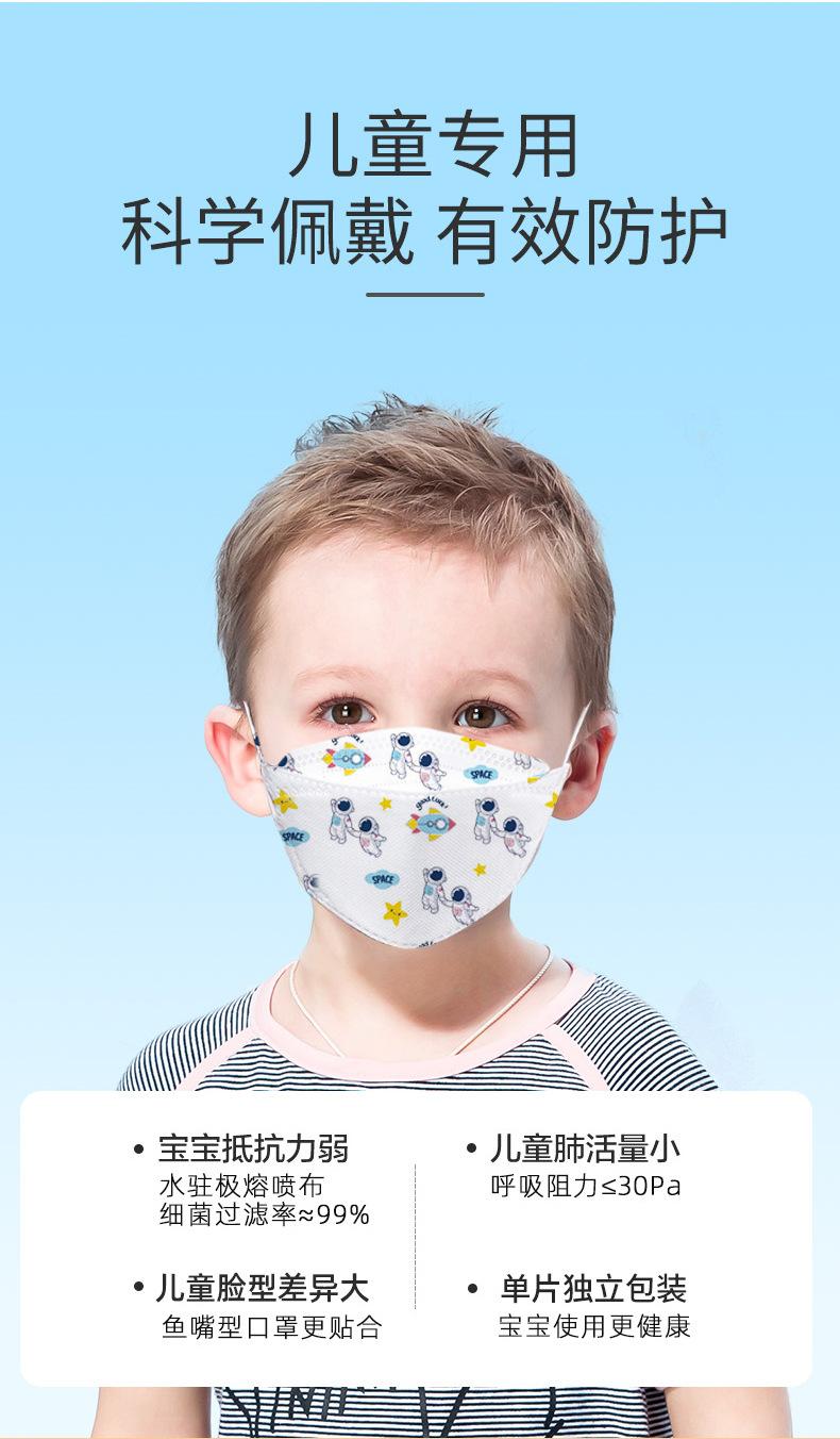 Cubrebocas para Niños para Protección, Delgados, Transpirables, Estéreo 3D para Colgar de las Orejas Desechables Empaque Individual al Por Mayor