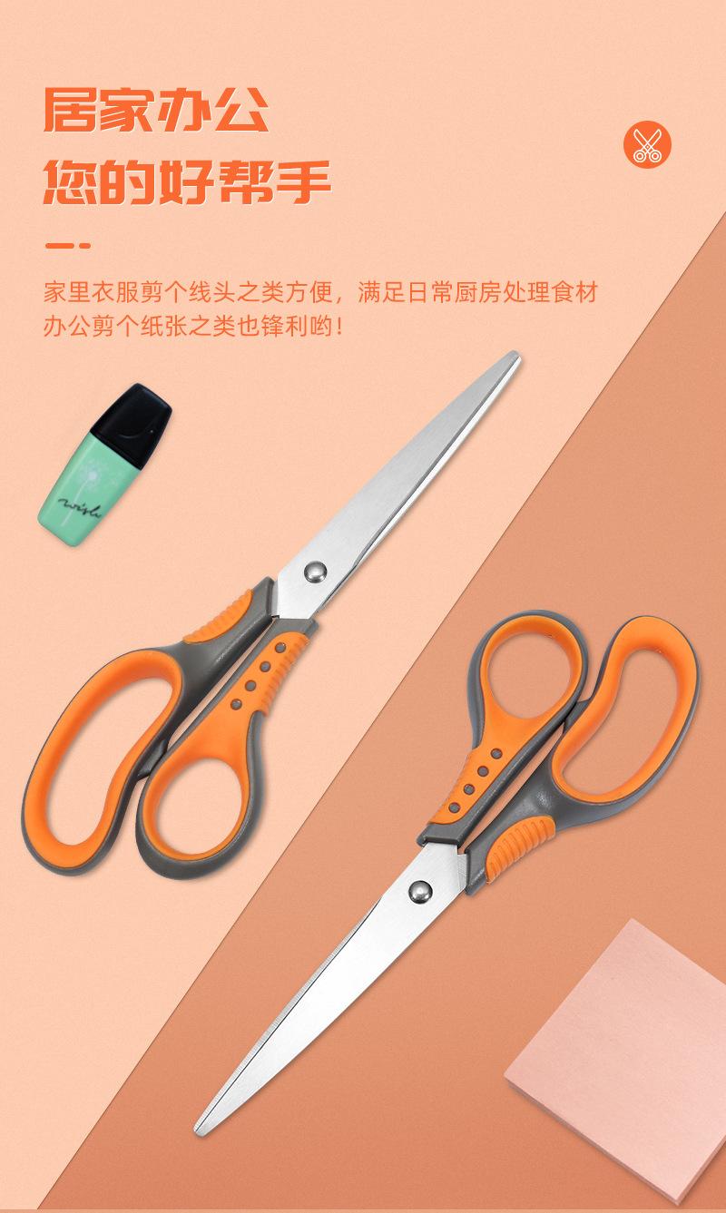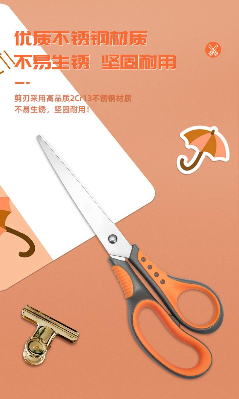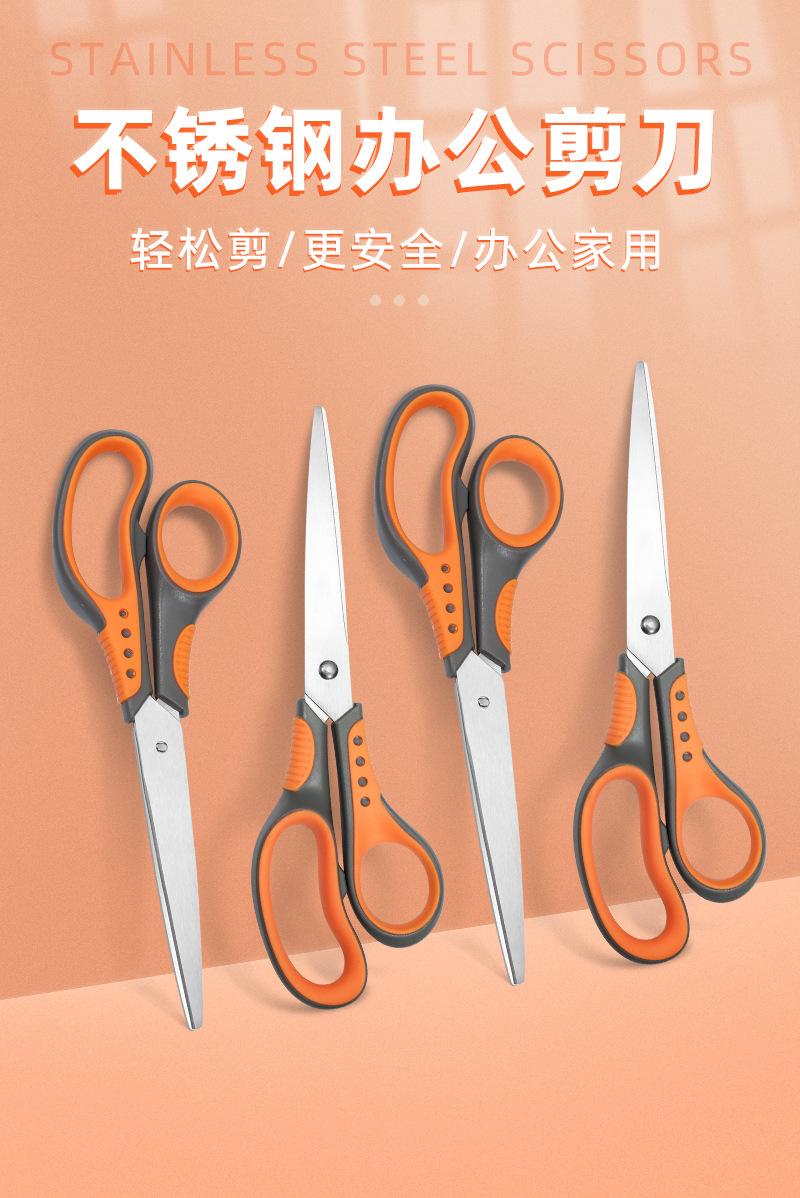 Tijeras de oficina de acero inoxidable al por mayor, tijeras multiusos para oficina con corte de papel, tijeras de sastre de cabeza recta para el hogar