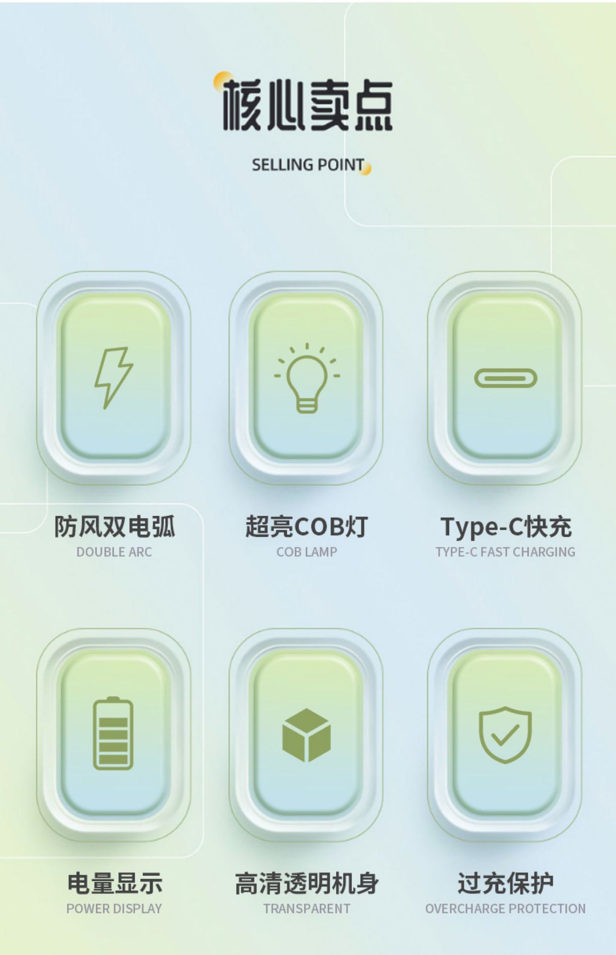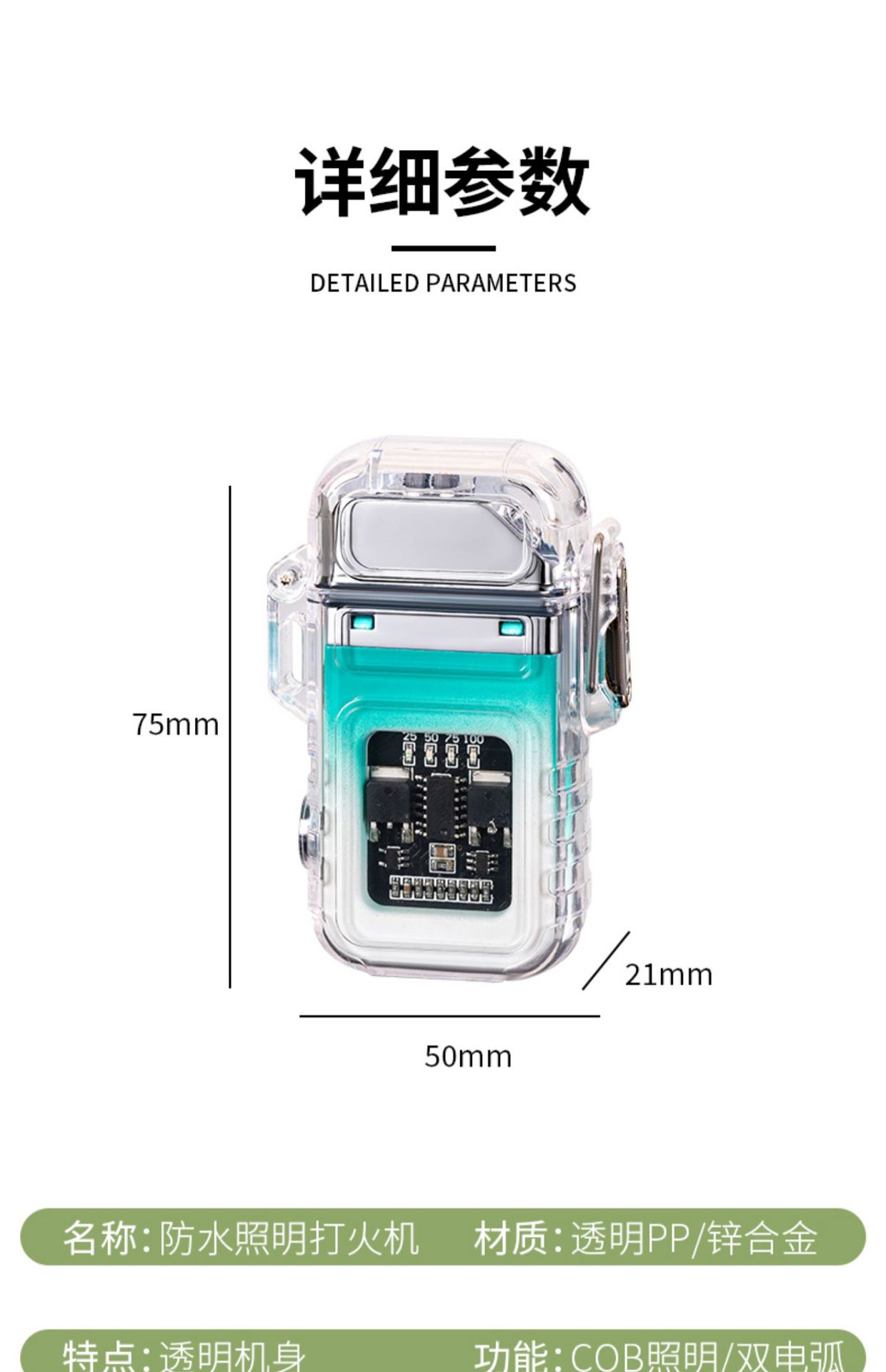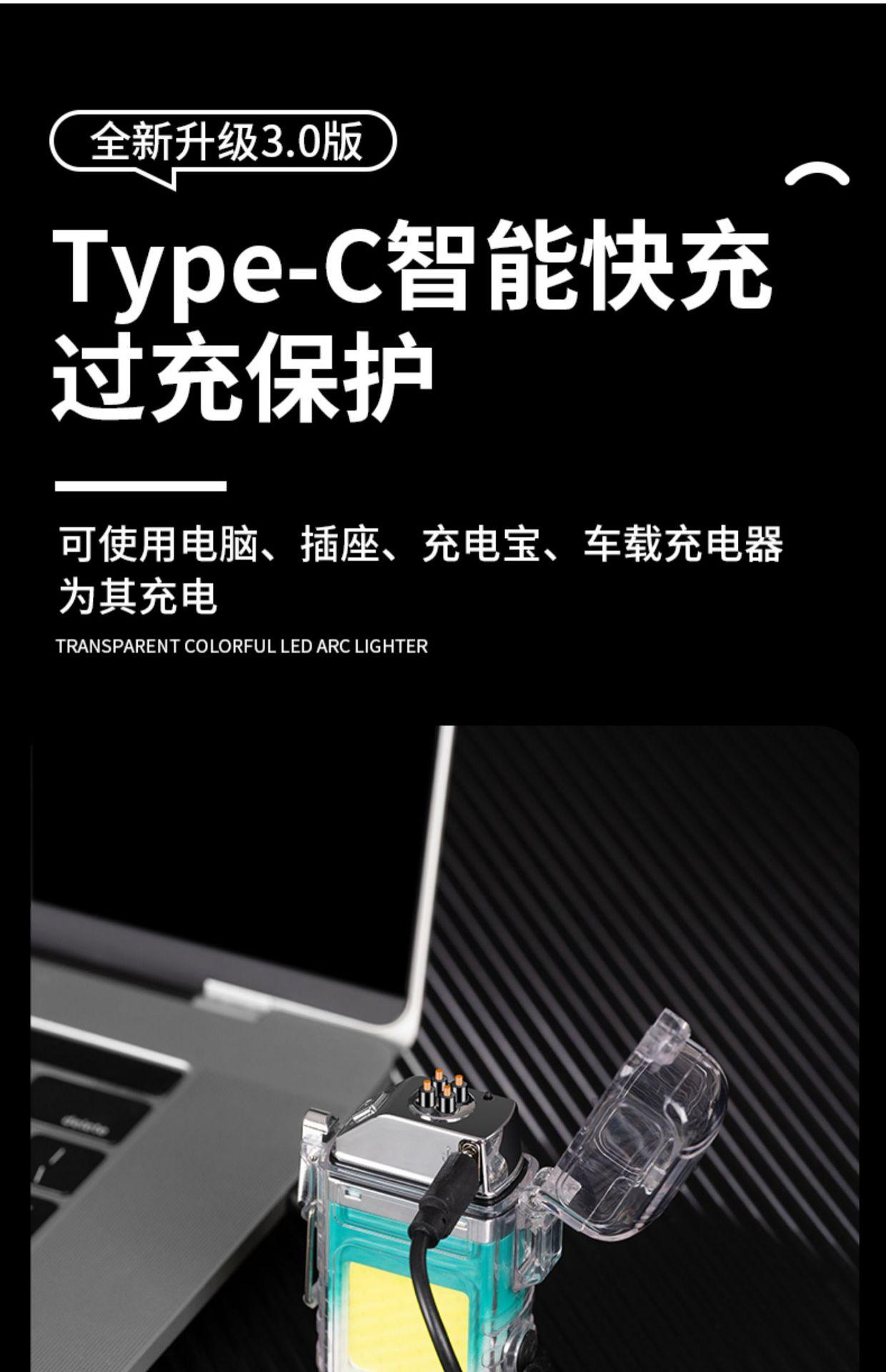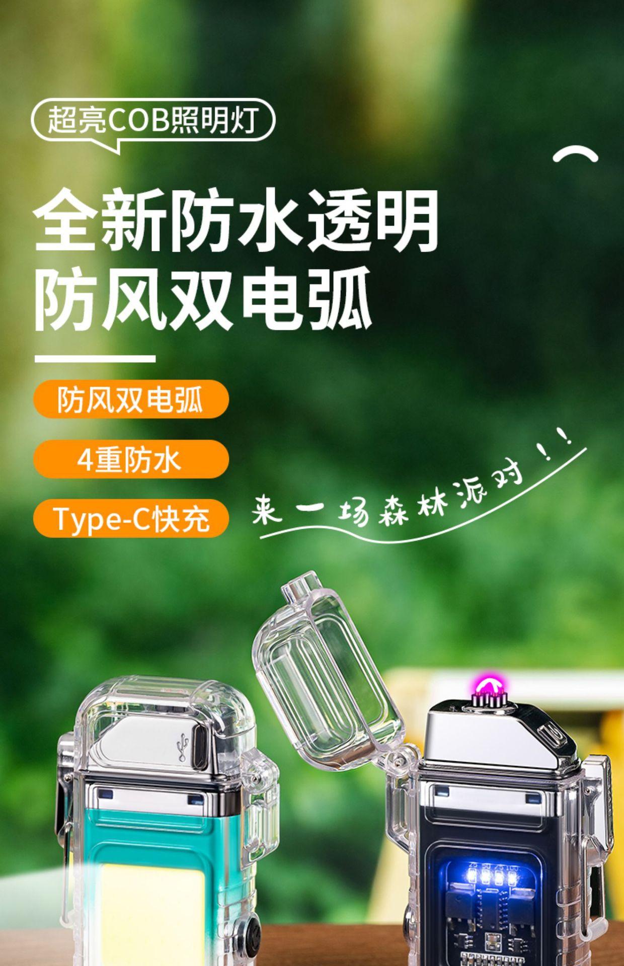 Encendedor de Arco Dual Zc-169 A Prueba de Viento Carga Exterior Transparente Portátil Creativo Personalidad Multifuncional con Iluminación