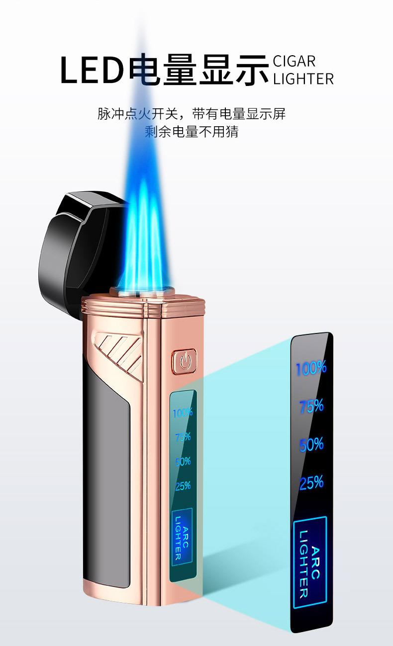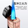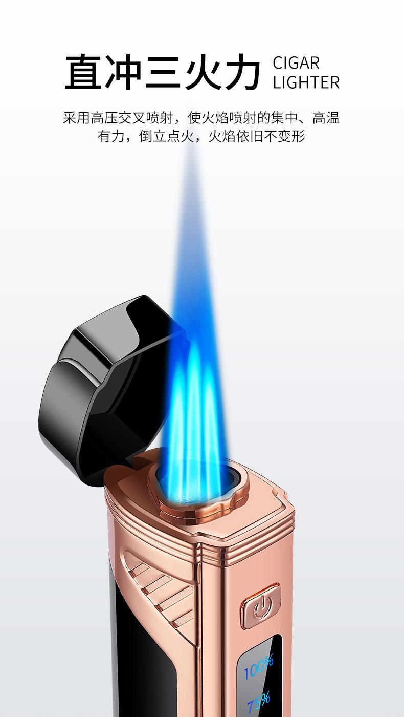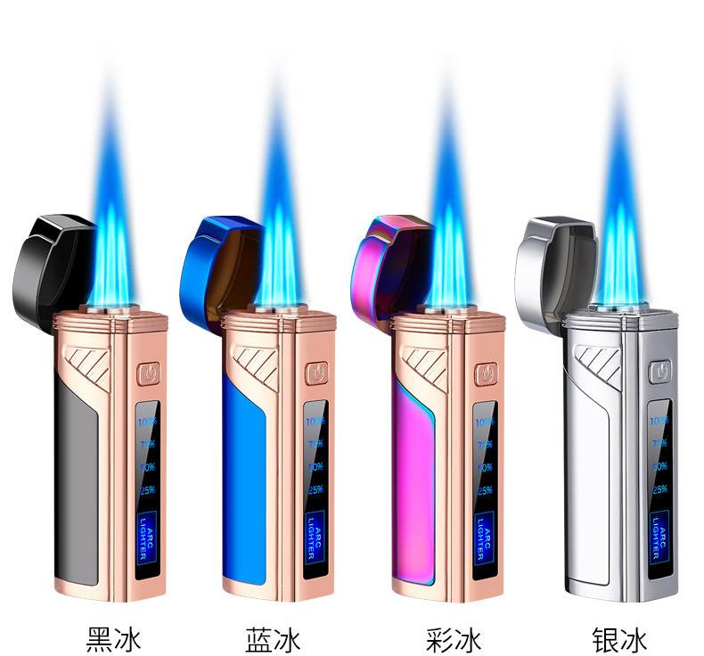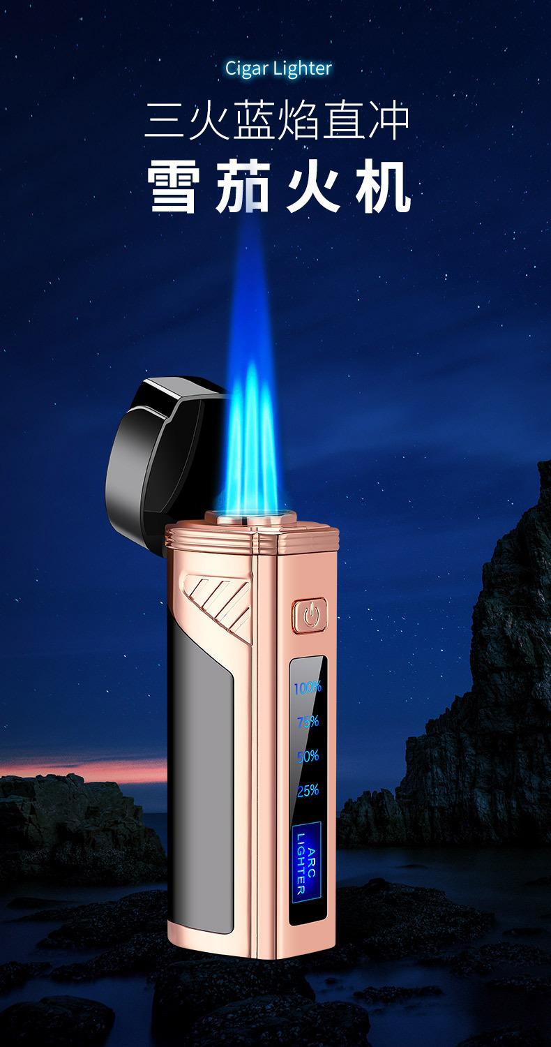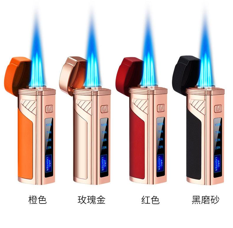 Encendedor de cigarros de metal, llama azul, recto, tres fuegos, inflable, pantalla LED, encendido por pulsos, transfronterizo