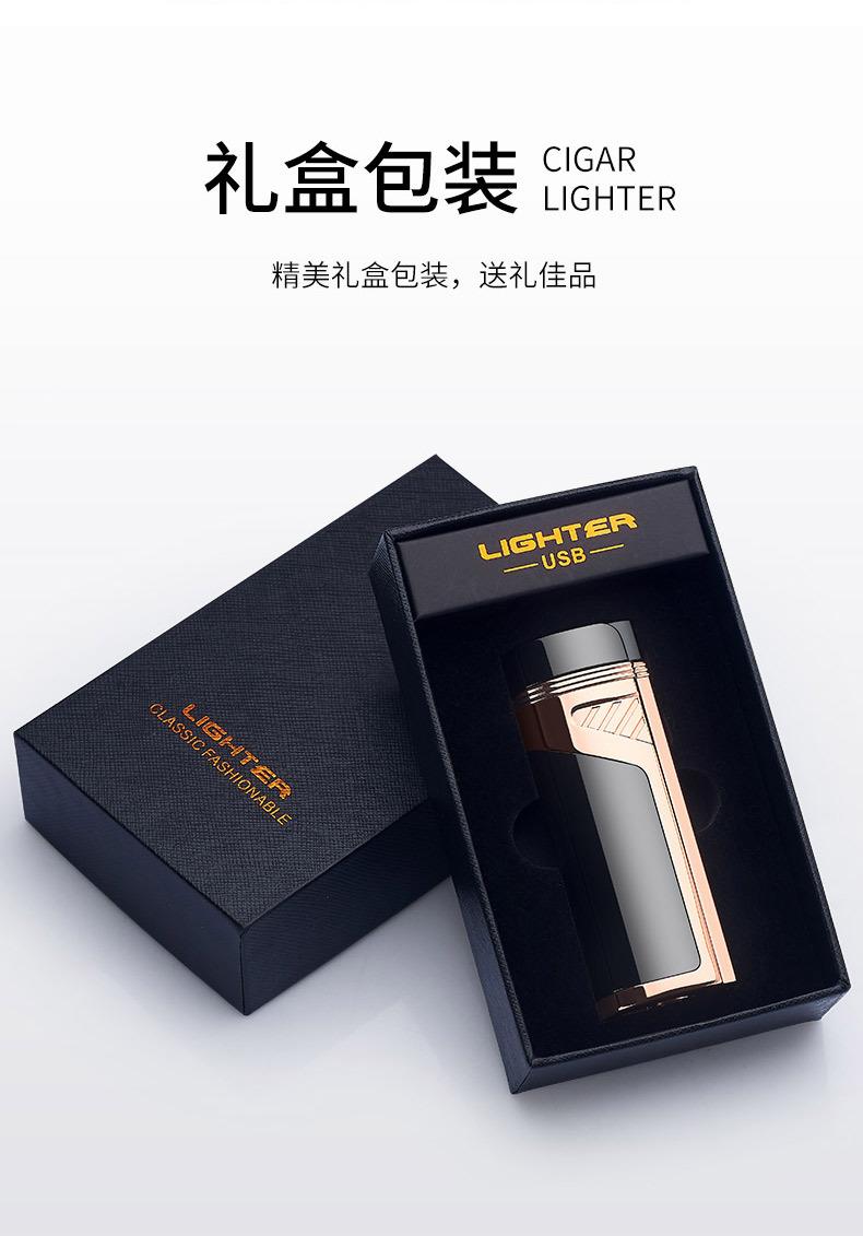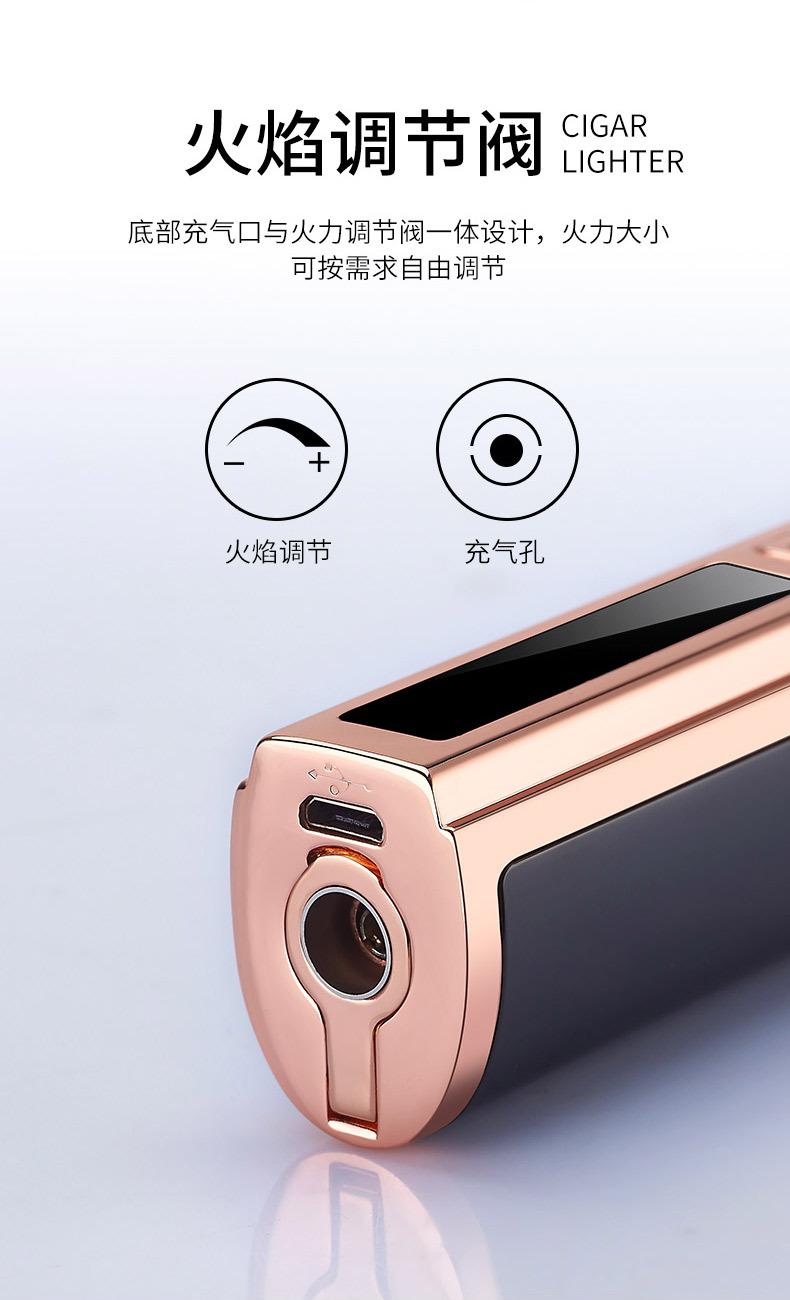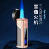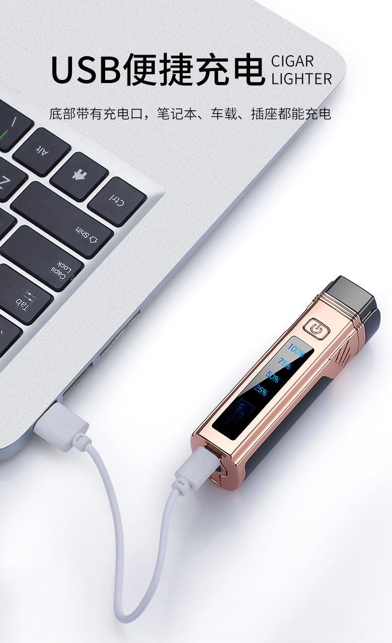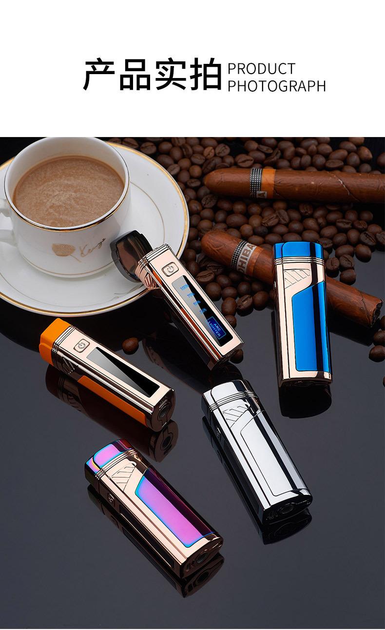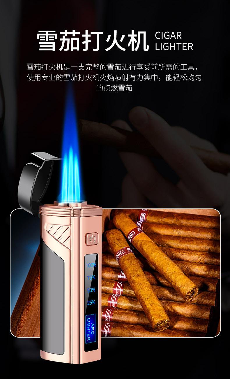 Encendedor de cigarros de metal, llama azul, recto, tres fuegos, inflable, pantalla LED, encendido por pulsos, transfronterizo