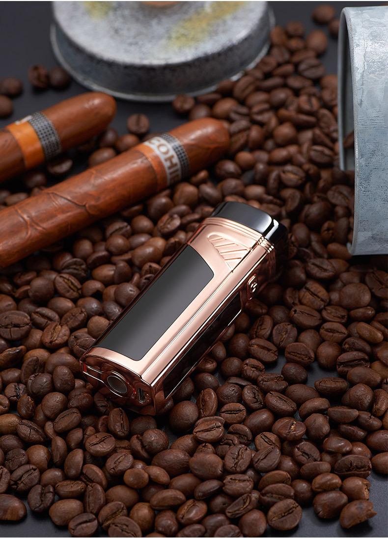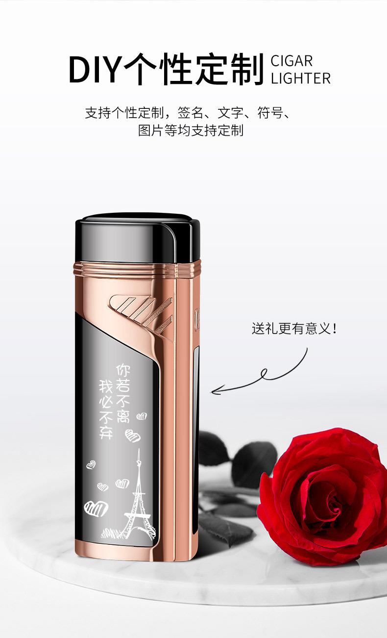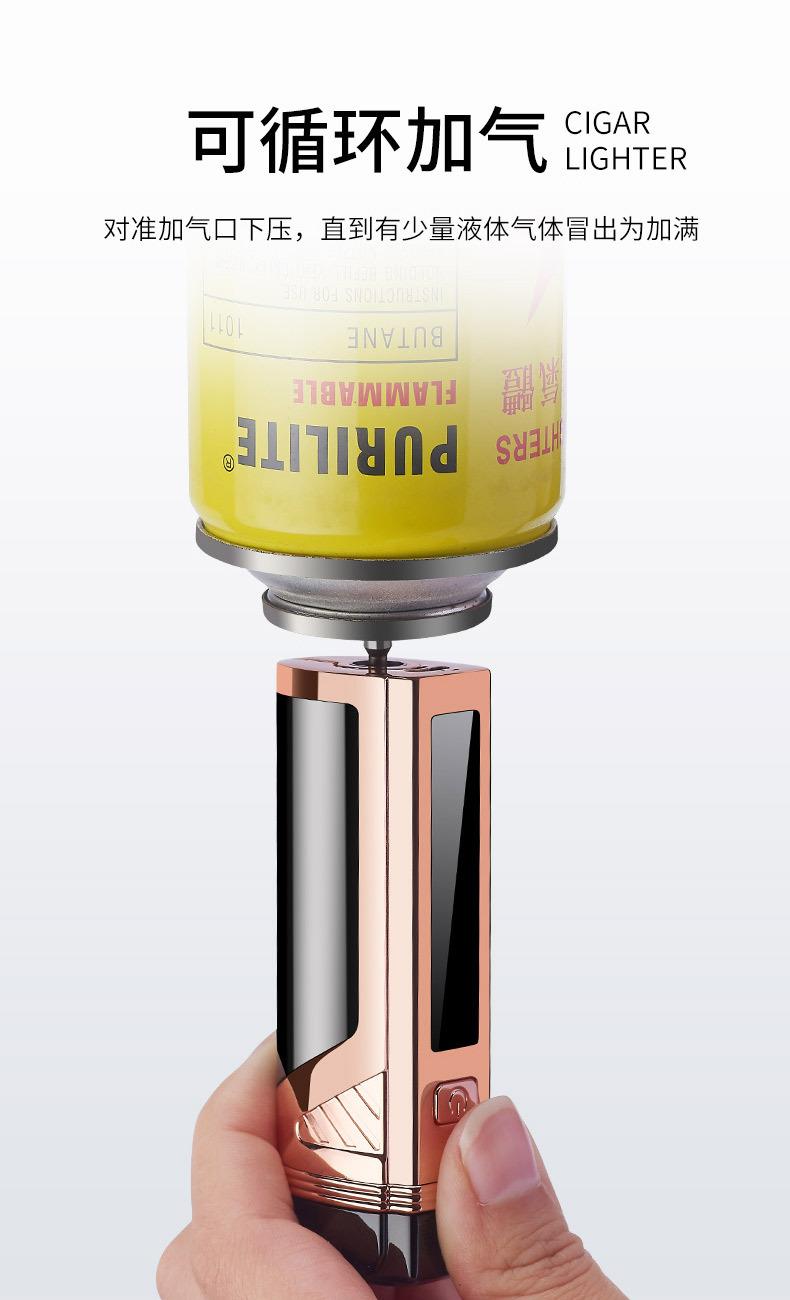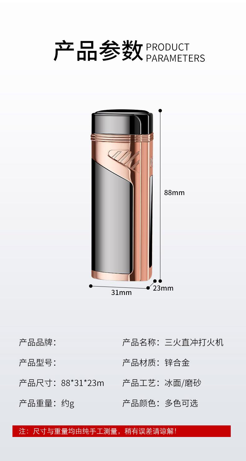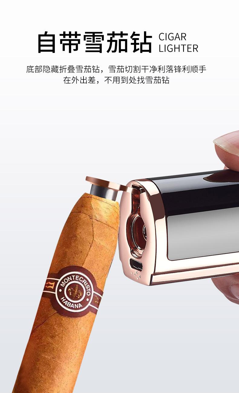Encendedor de cigarros de metal, llama azul, recto, tres fuegos, inflable, pantalla LED, encendido por pulsos, transfronterizo