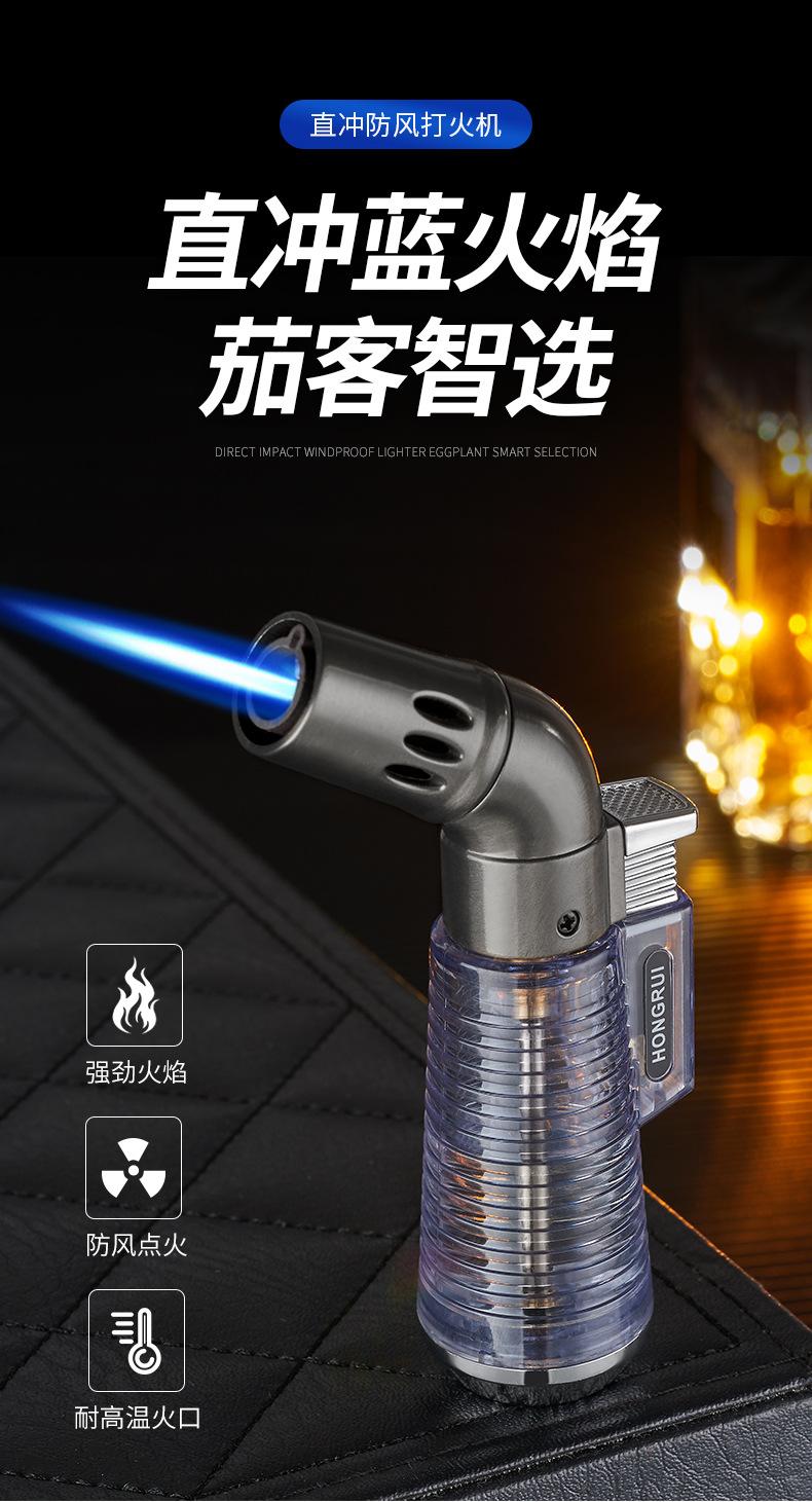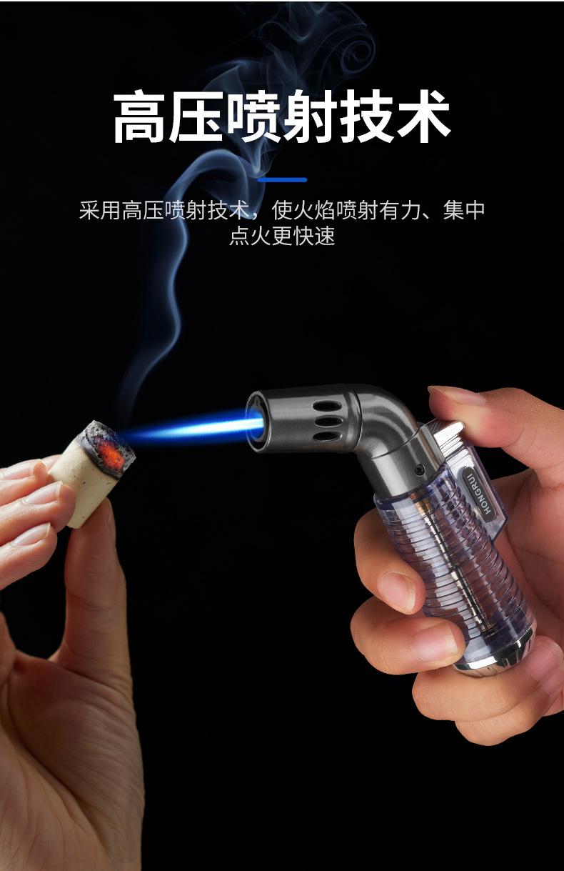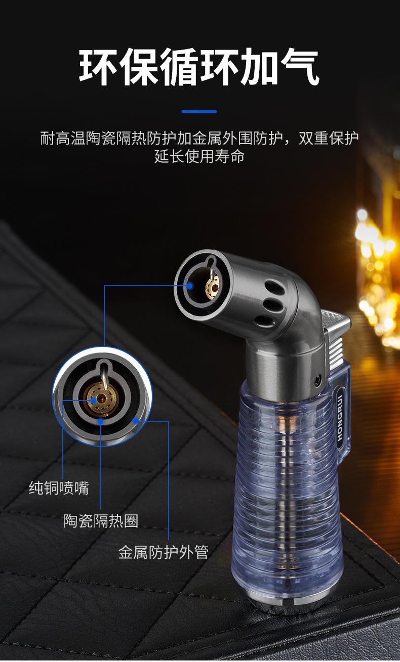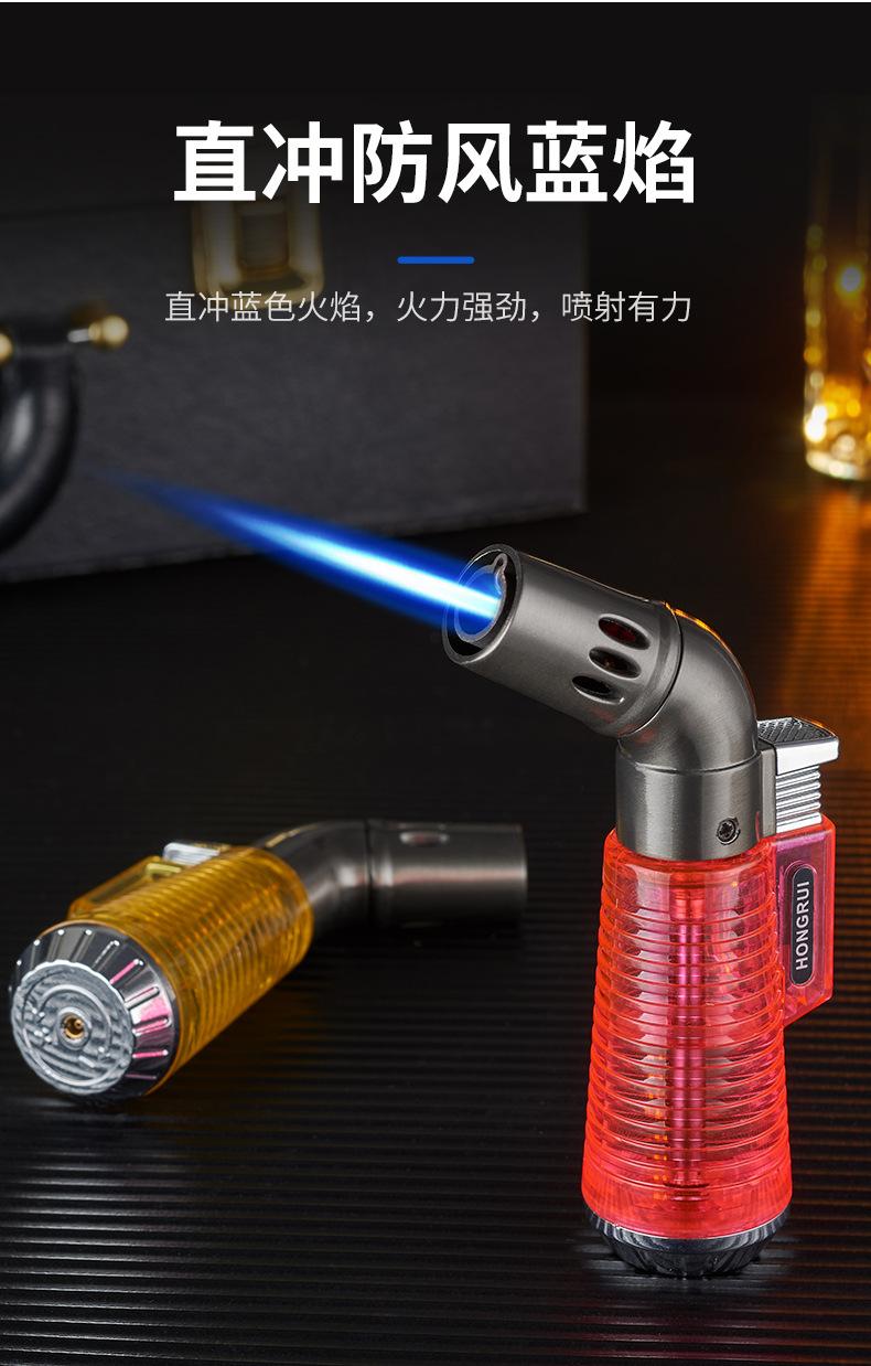 Encendedor de gas transparente con forma de codo, pistola pulverizadora pequeña, moxibustión, barbacoa, puros, herramienta para exteriores, intermitente, resistente al viento, con llama azul.