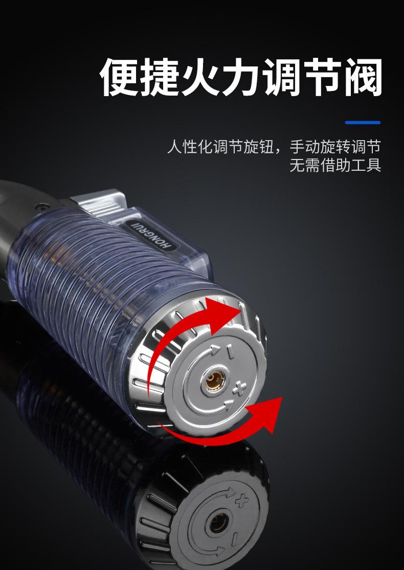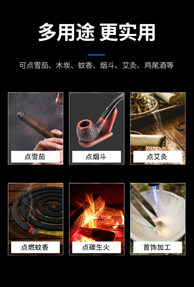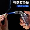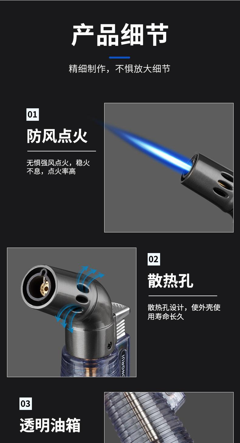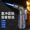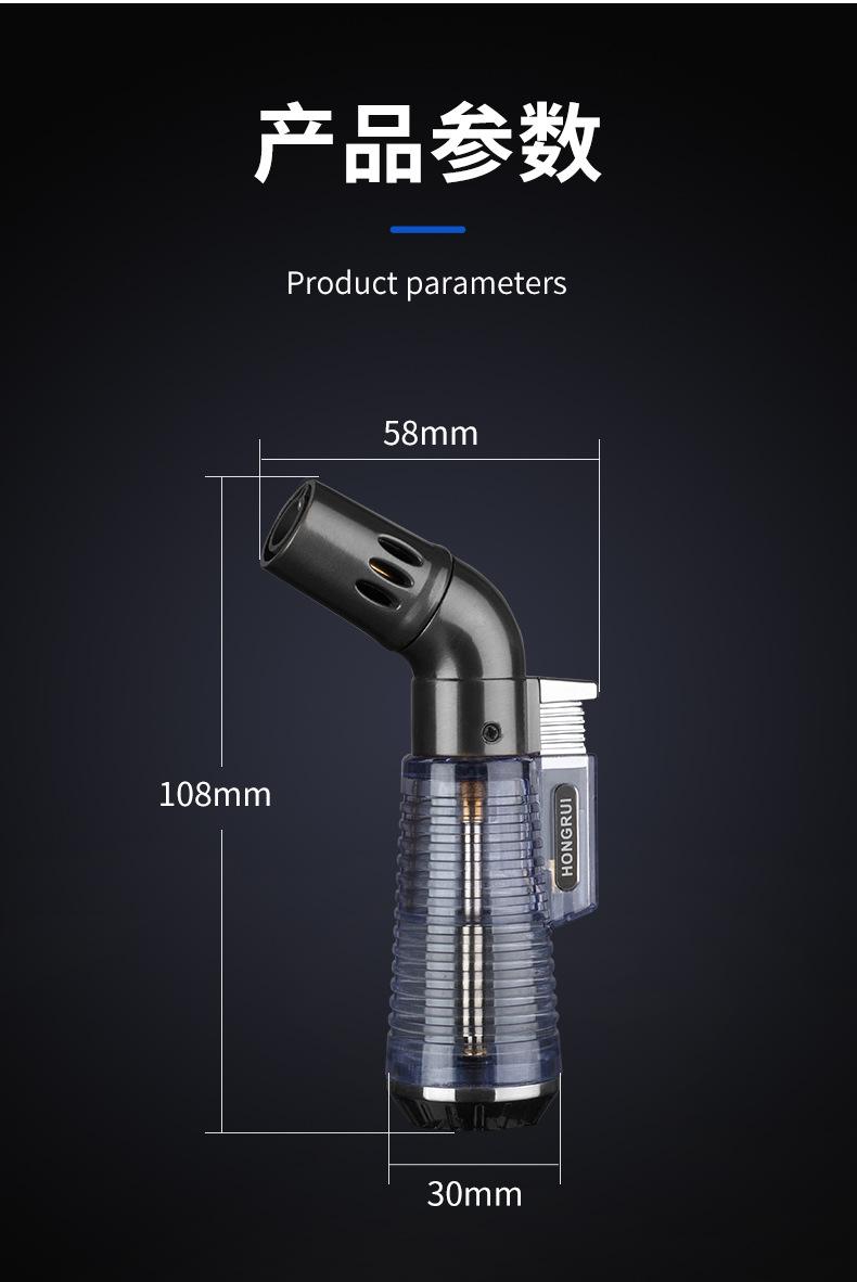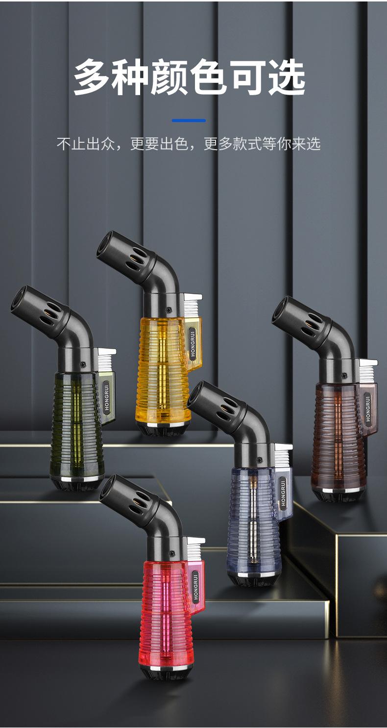 Encendedor de gas transparente con forma de codo, pistola pulverizadora pequeña, moxibustión, barbacoa, puros, herramienta para exteriores, intermitente, resistente al viento, con llama azul.