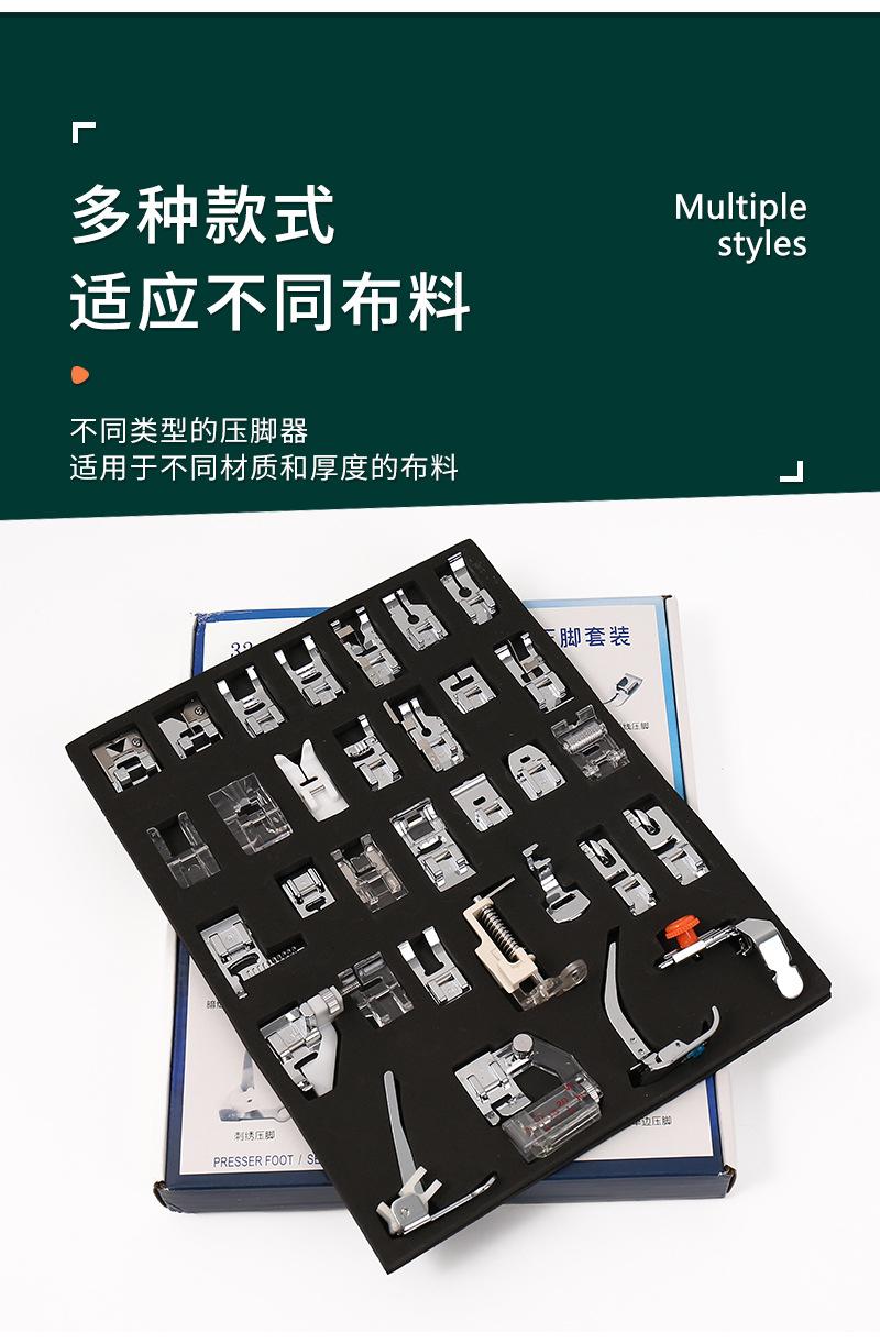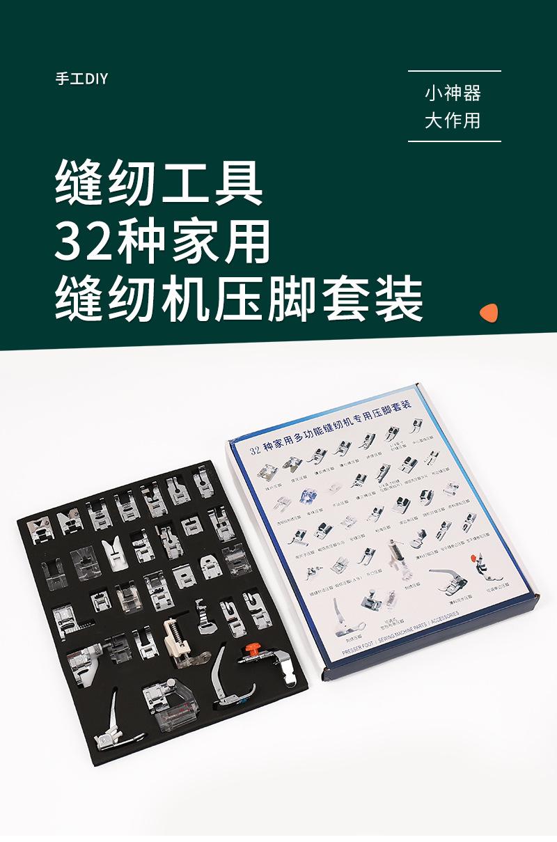 Juego de 32 tipos de prensatelas especiales para máquina de coser doméstica multifuncional, prensatelas de goma, accesorios para máquina de coser doméstica, juego de prensatelas