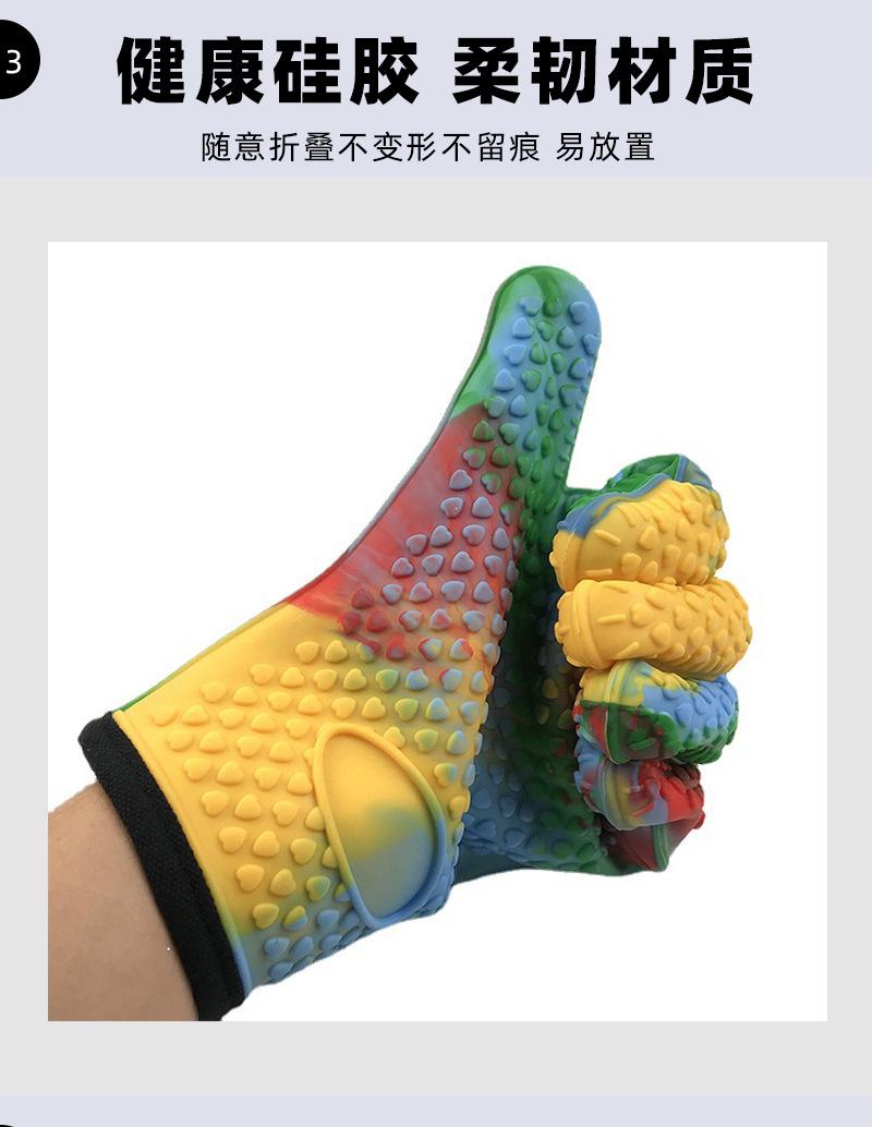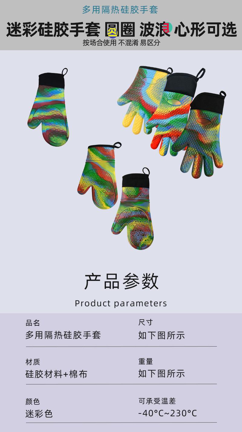 Ojos grandes doble capa algodón engrosado guantes de silicona forma de corazón aislamiento térmico guantes de colores mezclados horneado horno microondas cinco dedos