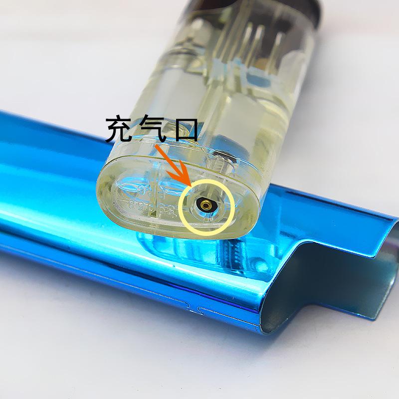 3. Al rellenar los modelos comunes, invierta el encendedor, alinee la salida de la bombona de gas con la entrada y cúbralo. Presione con fuerza varias veces, manteniéndolo presionado durante unos 2 segundos cada vez. Si no puede rellenar el gas, es posible que quede aire en la caja de vapor. En ese momento, puede desinflarlo. Use un destornillador pequeño para alinear la entrada de aire, desinfle rápidamente una o dos veces y luego vuelva a llenarlo.