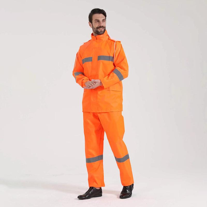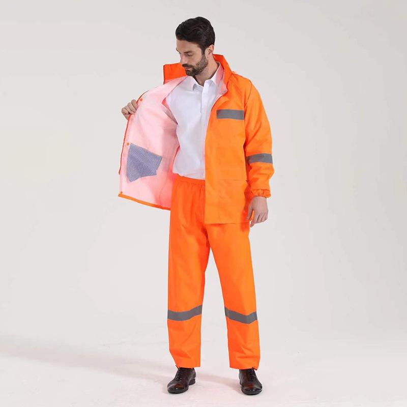 Tela Oxford impermeable reflectante para adultos para exteriores, deber ferroviario, protección laboral, impermeable dividido, traje de pantalones de lluvia, venta al por mayor