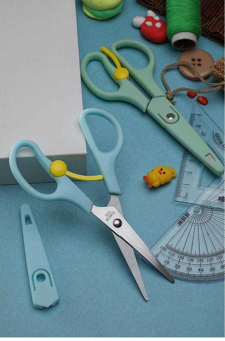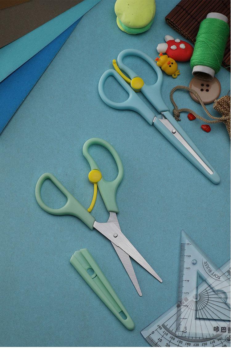 Tijeras escolares elásticas de acero inoxidable de color para estudiantes, tijeras de resorte para niños, tijeras domésticas para cortar papel, tijeras pequeñas