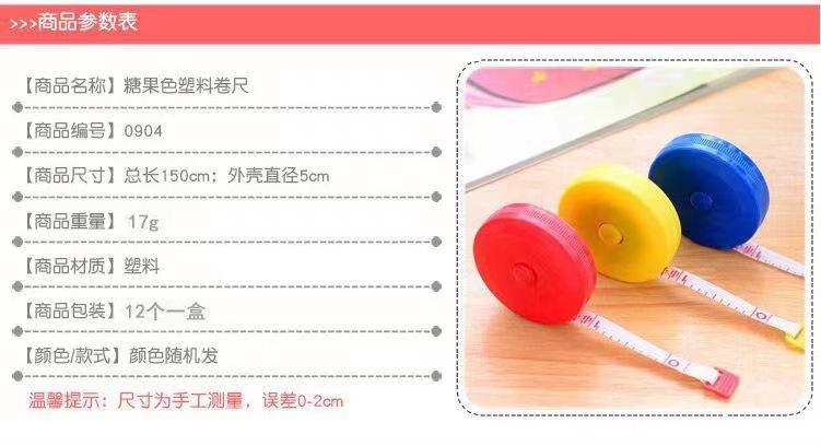 Mini cinta métrica portátil de sastrería, regla telescópica tridimensional suave de plástico de 1,5 metros de color caramelo.