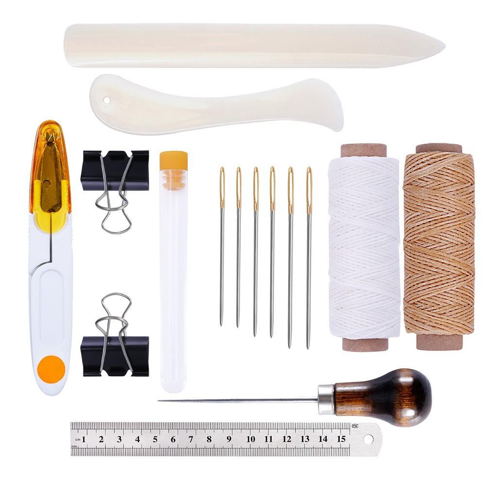 Cortador de papel con fractura de hueso de vaca: 1 juego,Hilo transparente amarillo: 1 pieza,Aguja de coser a mano de 5,4 cm: 2 piezas,