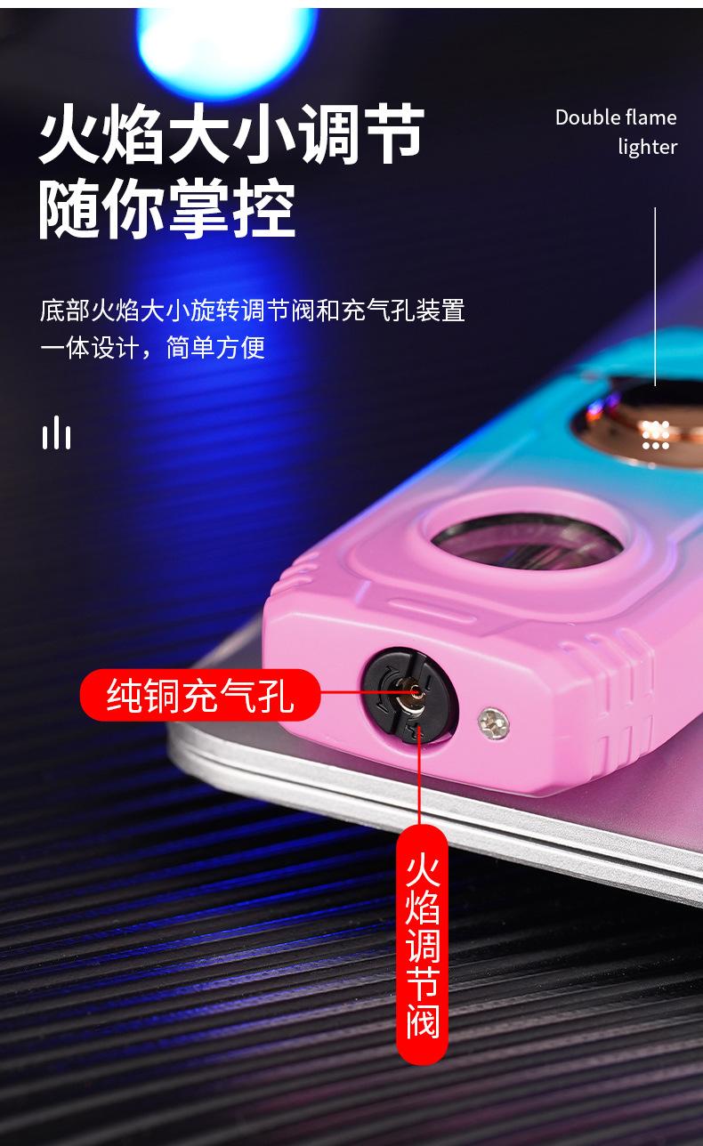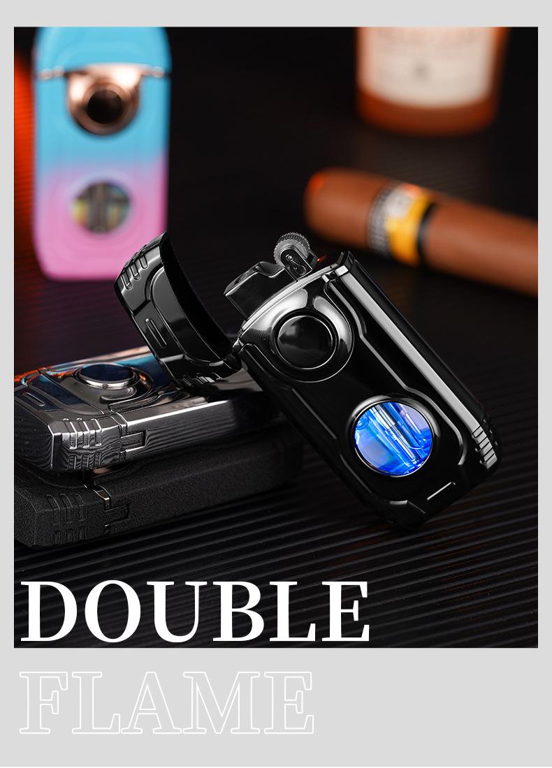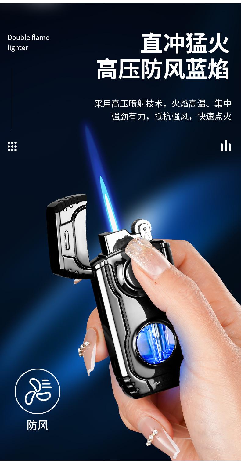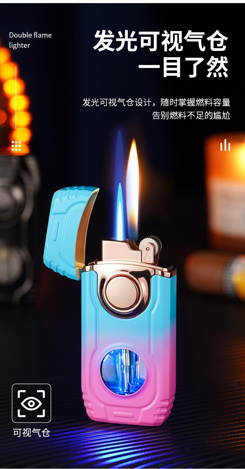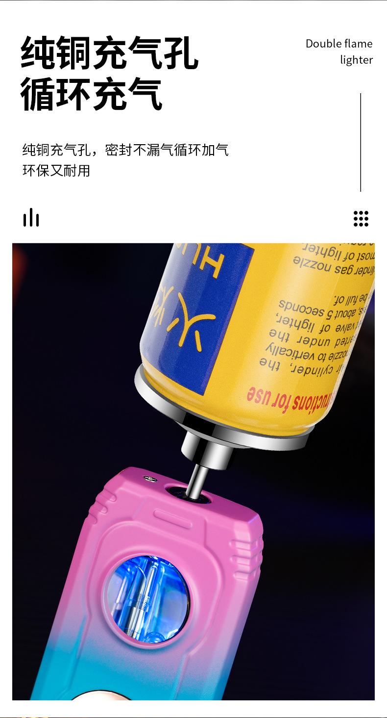 Encendedor inflable de doble llama TH638 para exteriores, resistente al viento, de metal, transparente, visual y con luz. Suministro transfronterizo.