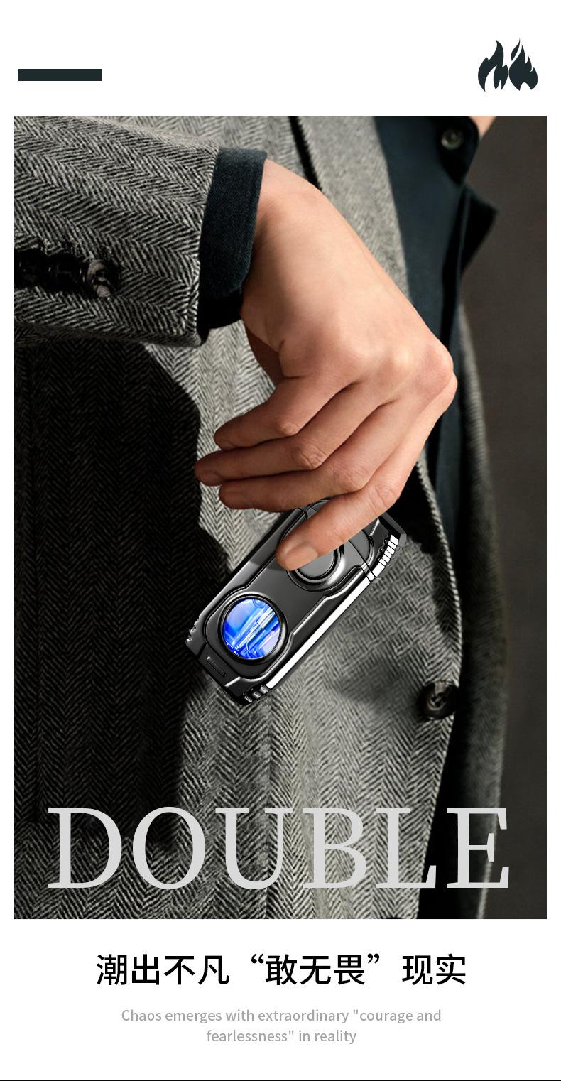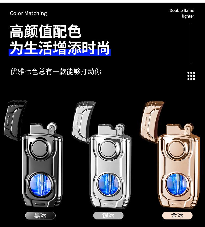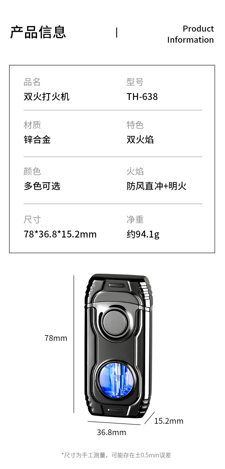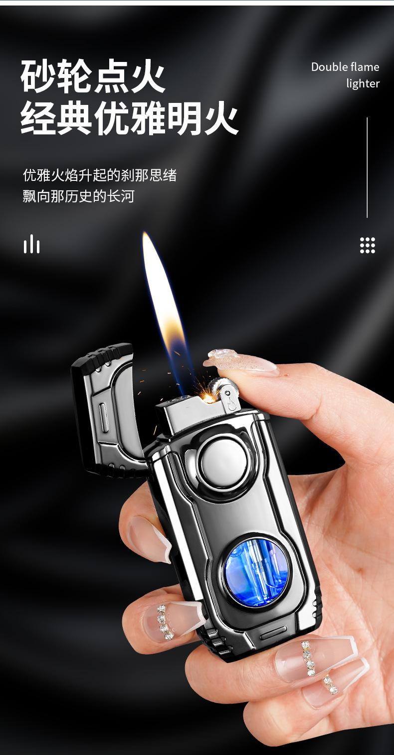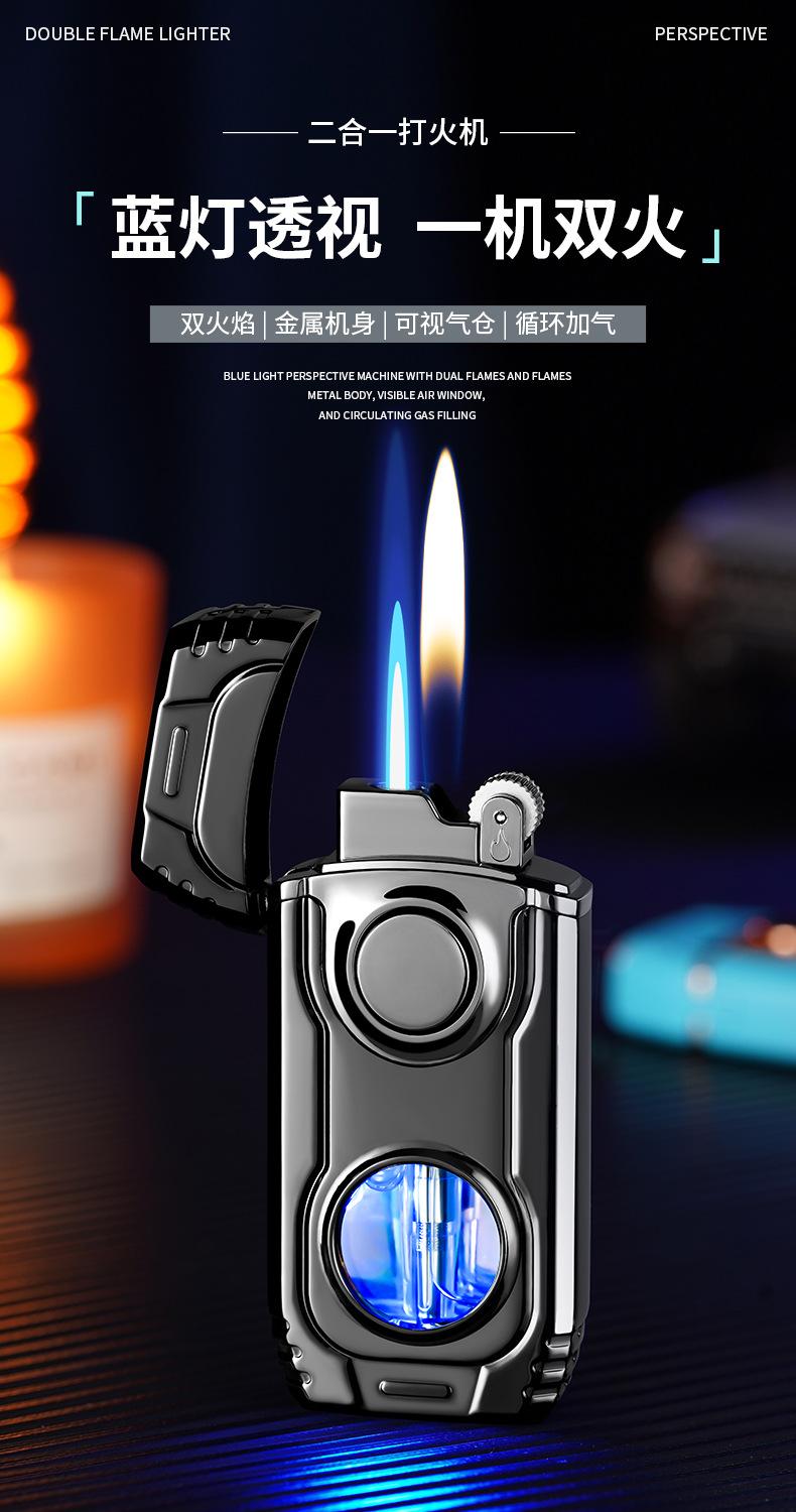 Encendedor inflable de doble llama TH638 para exteriores, resistente al viento, de metal, transparente, visual y con luz. Suministro transfronterizo.