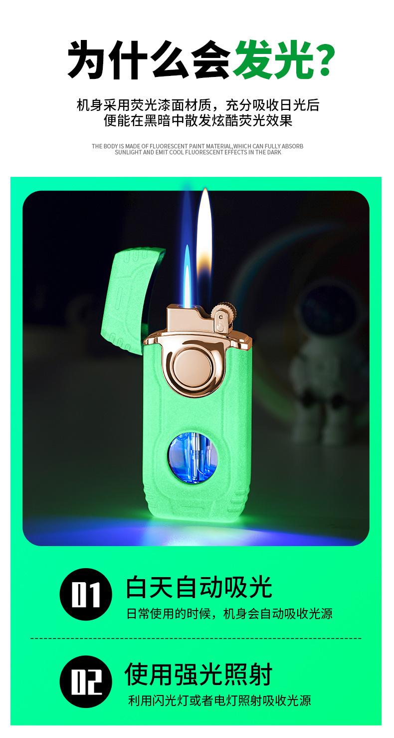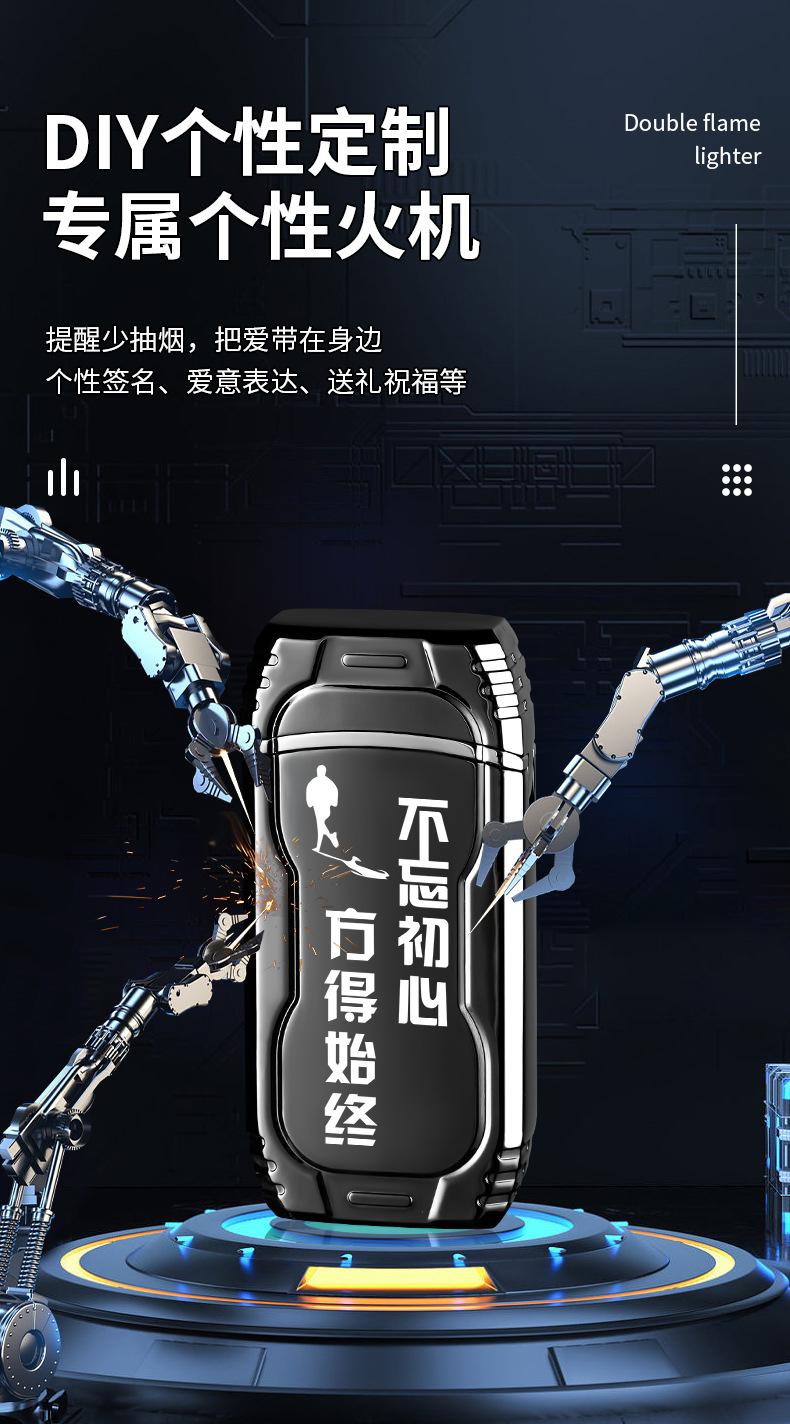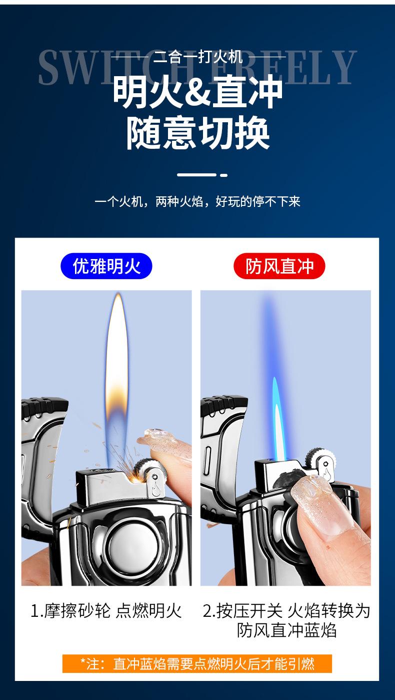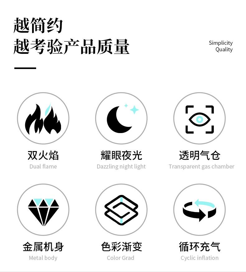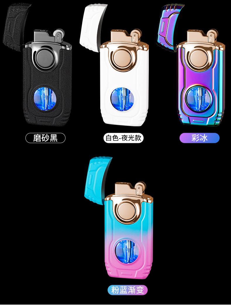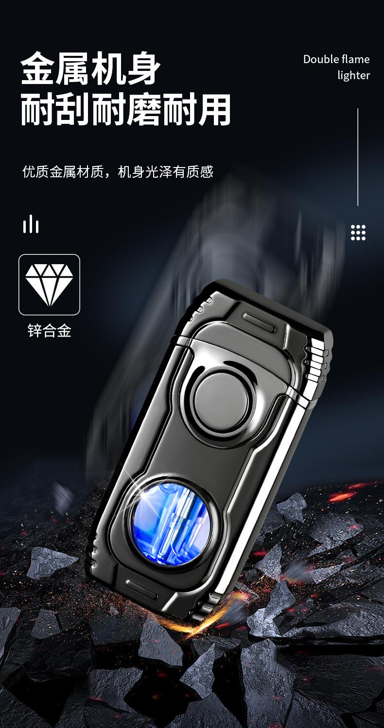 Encendedor inflable de doble llama TH638 para exteriores, resistente al viento, de metal, transparente, visual y con luz. Suministro transfronterizo.
