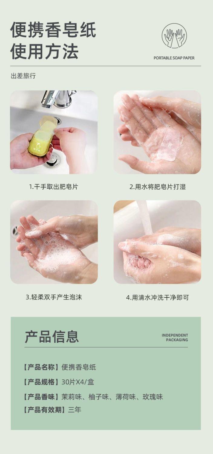 Jabón portátil Papel de viaje Pastillas de jabón desechables para exteriores Estudiantes Niños Mini pastillas para lavarse las manos en caja