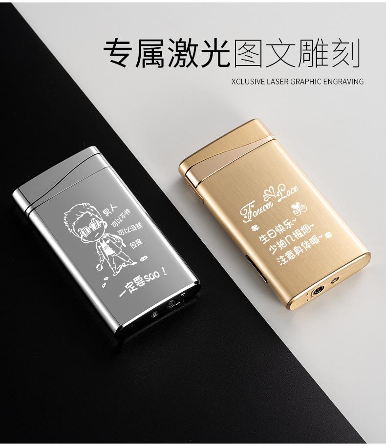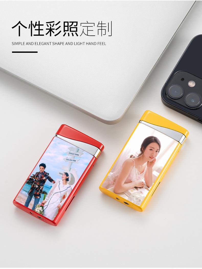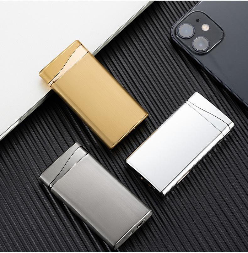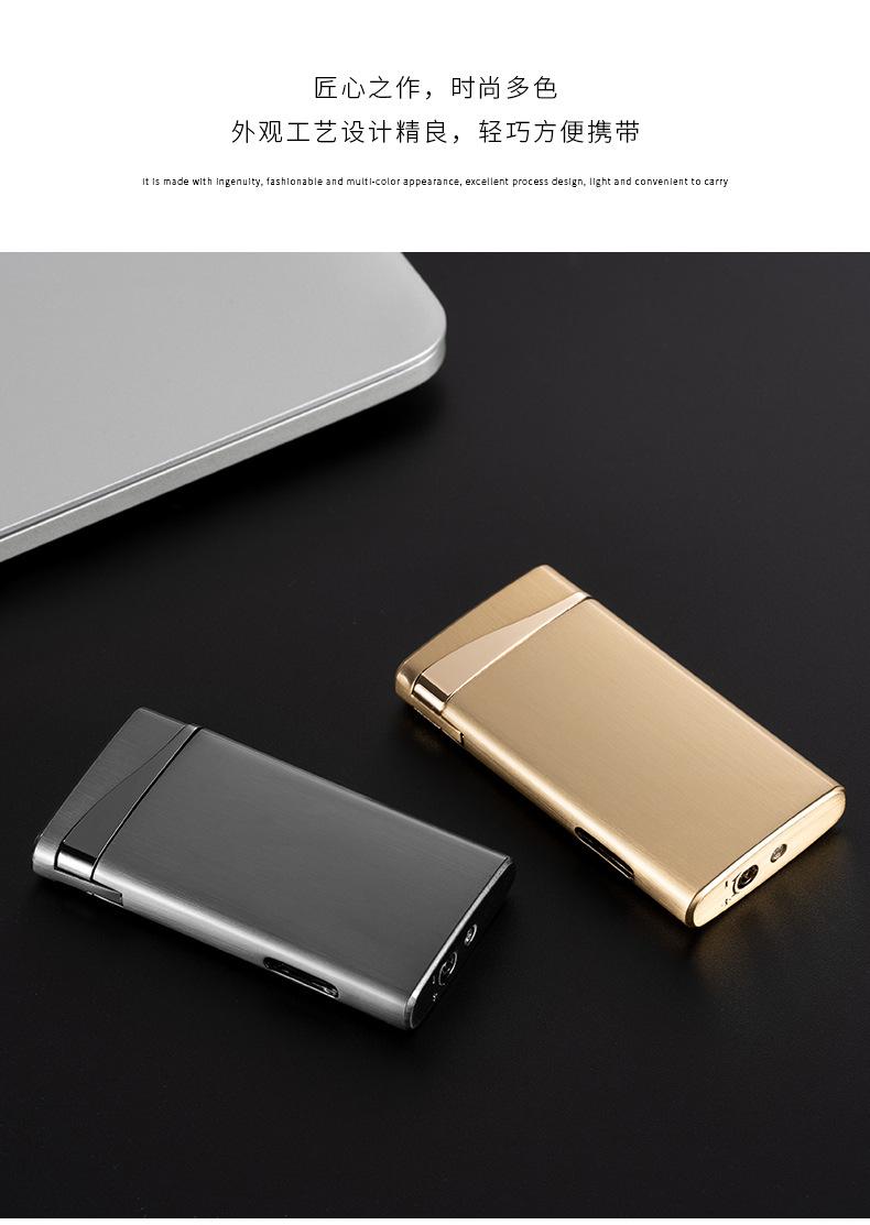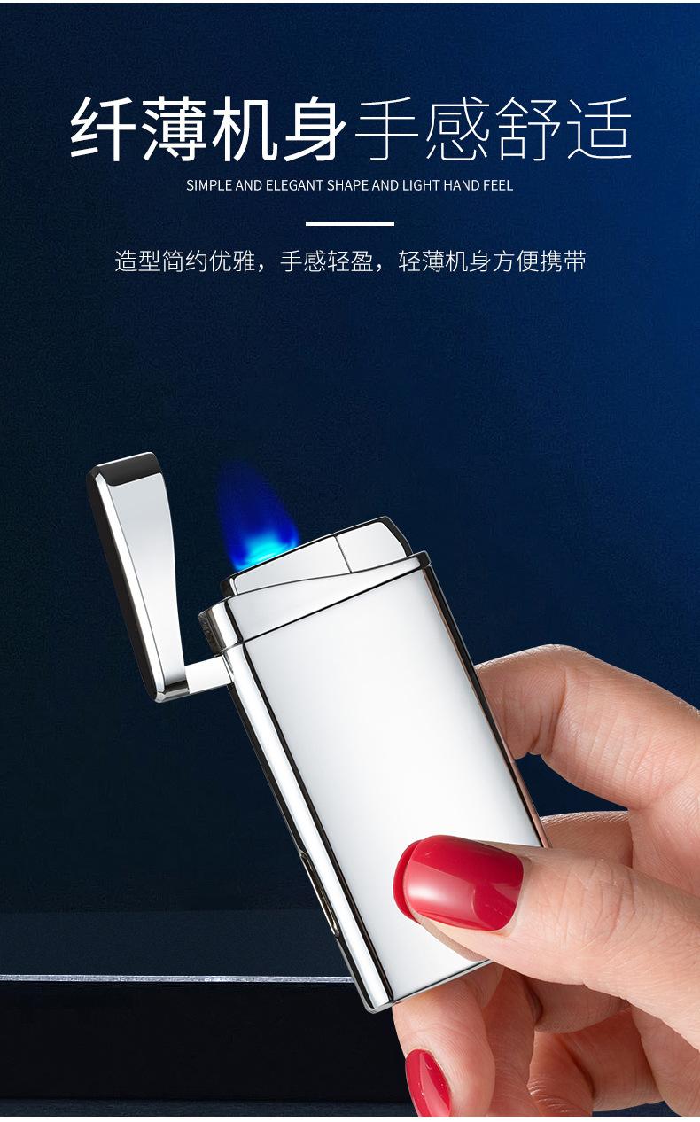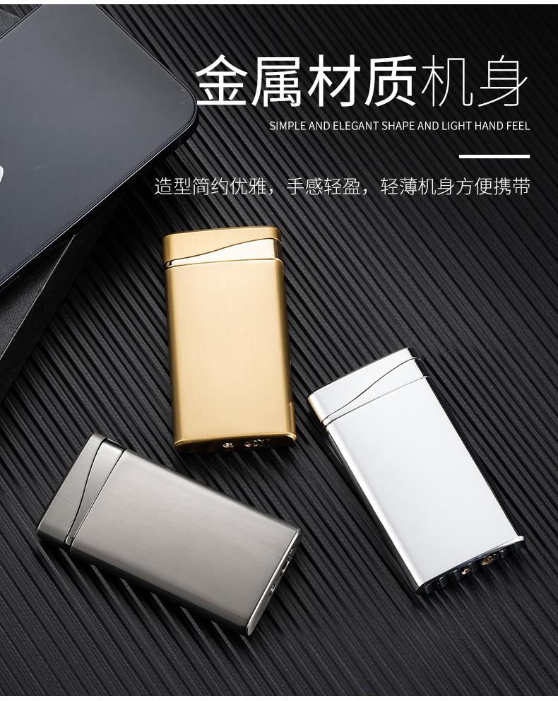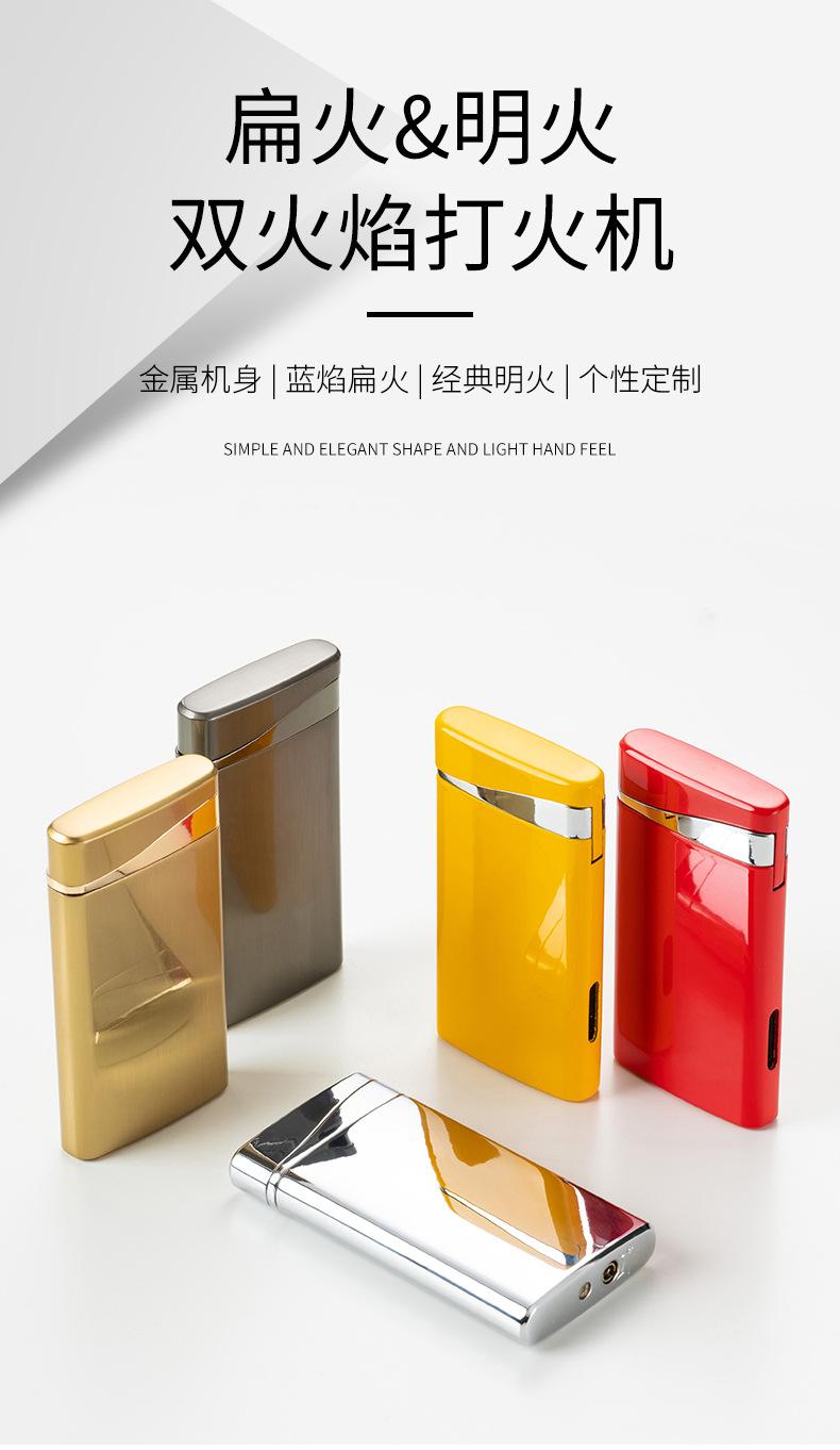 Encendedor inflable ultrafino creativo de doble llama, fuerte, plano, de llama azul, para fuego abierto, venta al por mayor transfronteriza