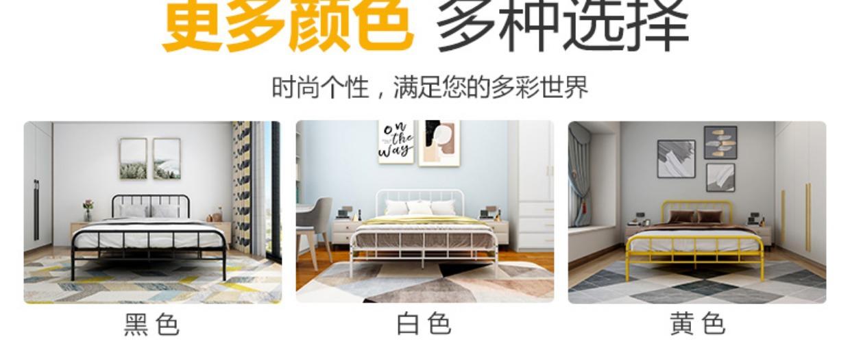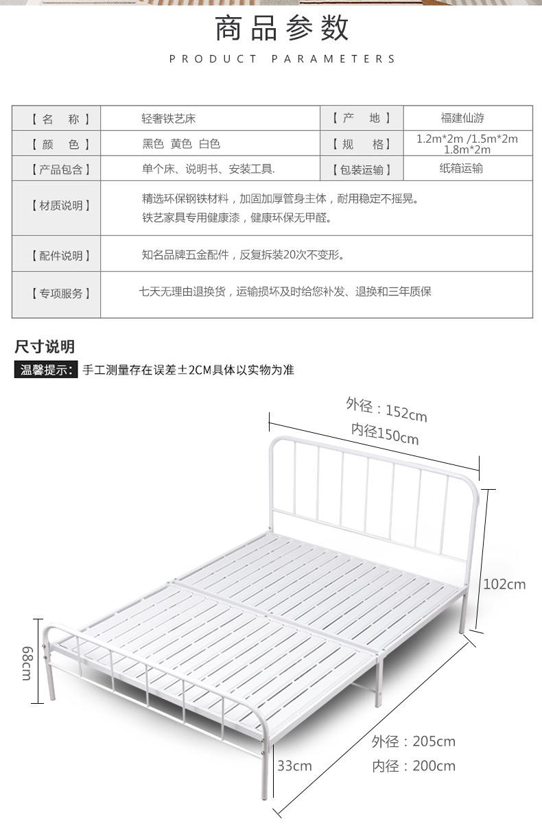 Black bed frame (no bed board and no mattress) bold and thickened, White bed frame (no bed board, no mattress)...