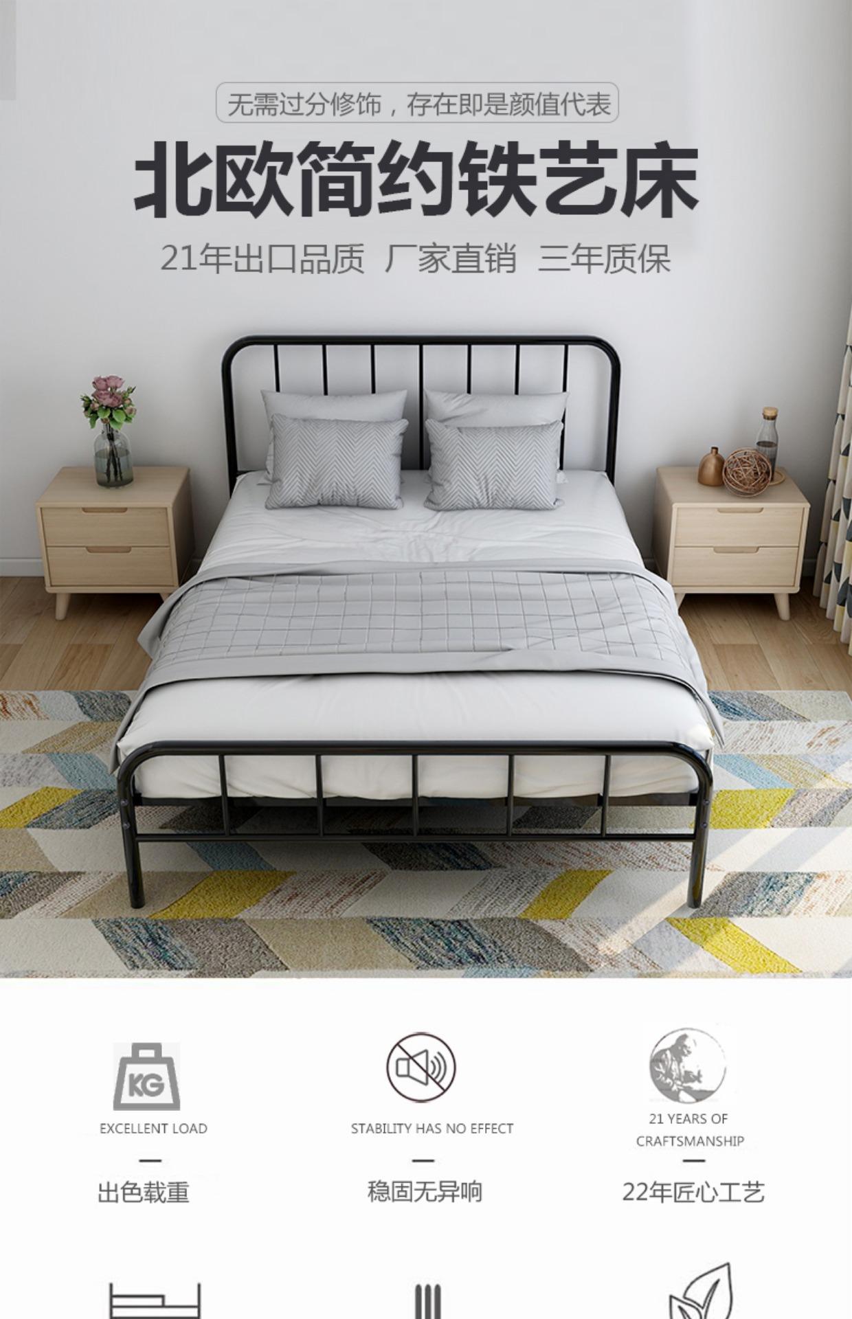 Compra Cama doble de hierro forjado, cama familiar con estructura de hierro, cama de hierro grueso, cama moderna y sencilla de 1,5 m, cama de dormitorio de 1,8 m al por mayor en Joom.pro