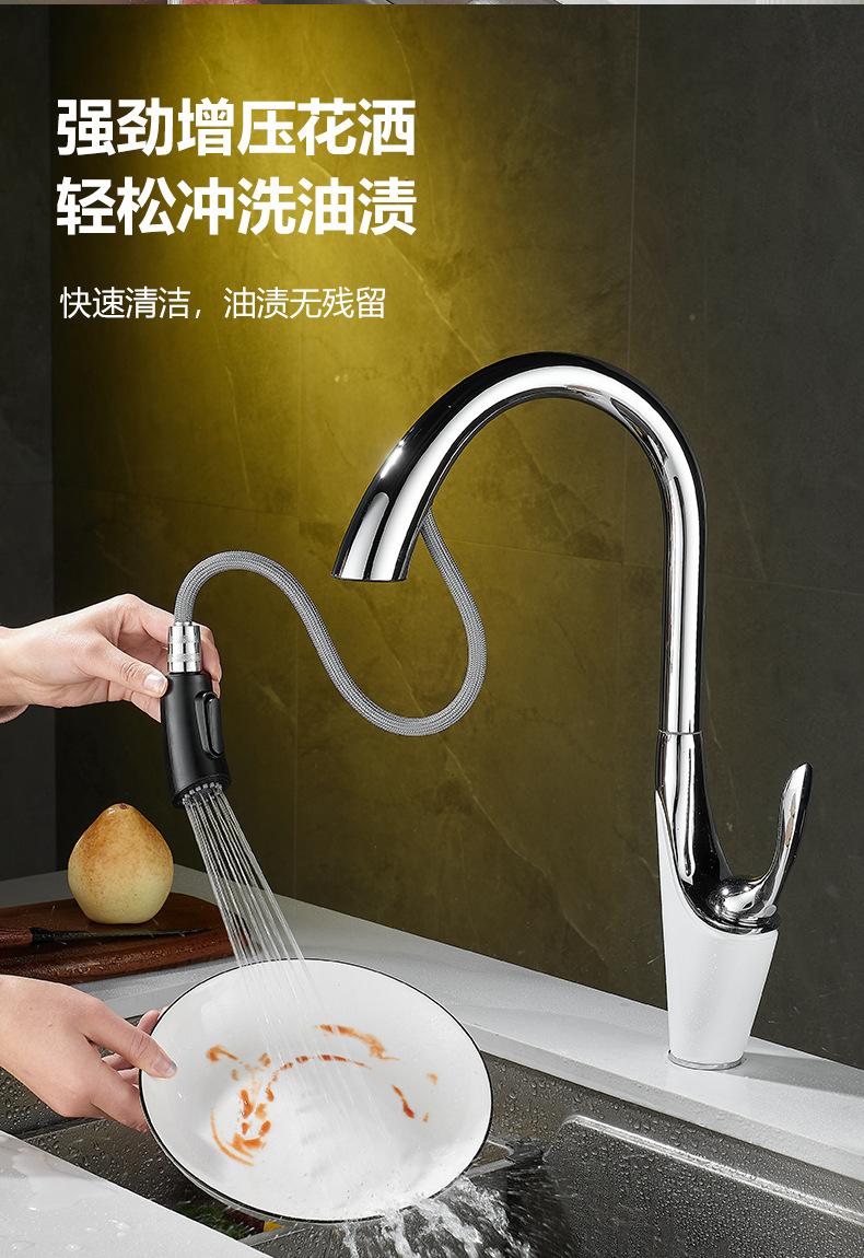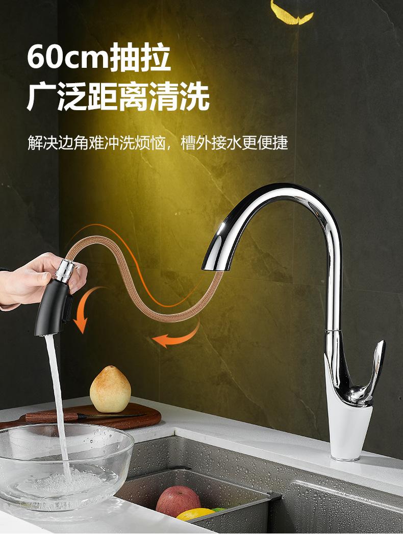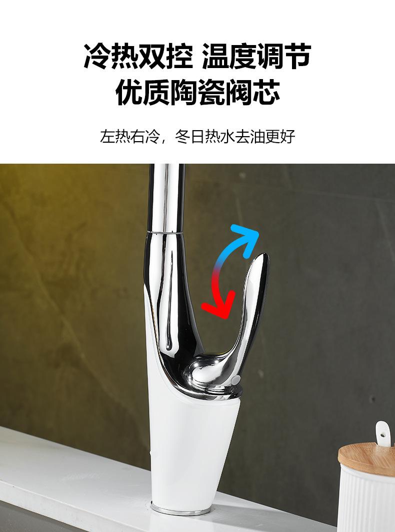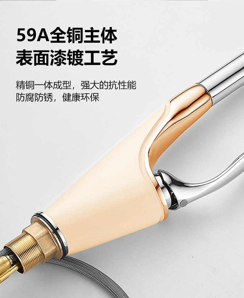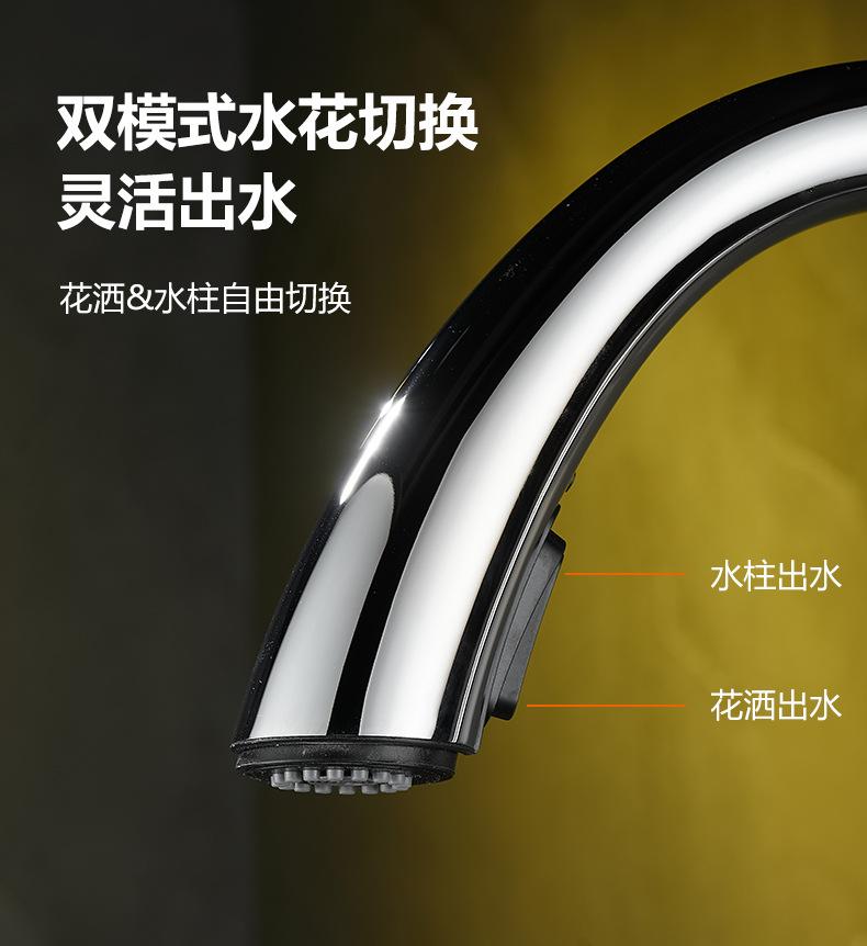 Fregadero de cocina creativo todo cobre telescópico a prueba de salpicaduras grifo de agua fría y caliente extraíble giratorio con cambio de modo de dos velocidades
