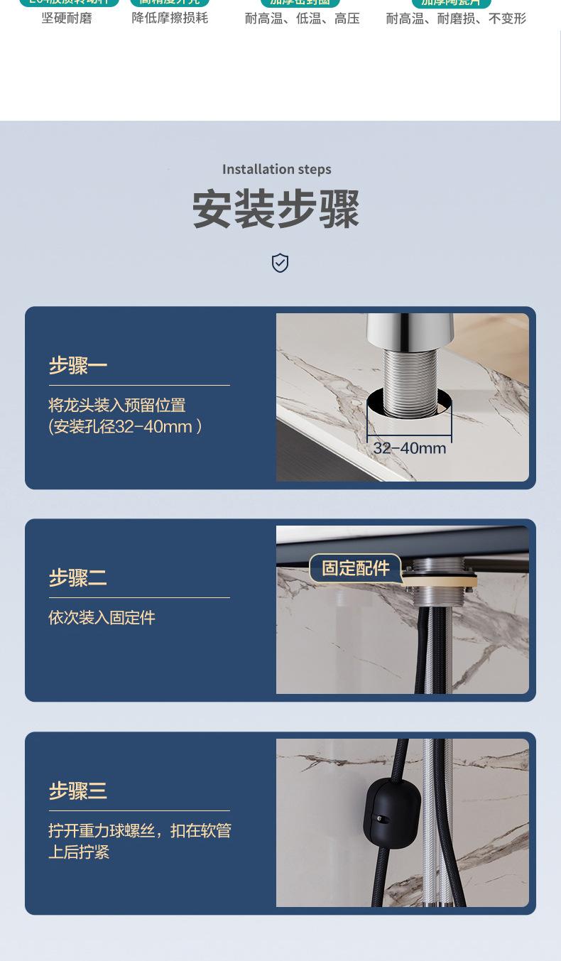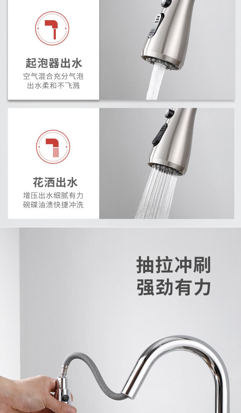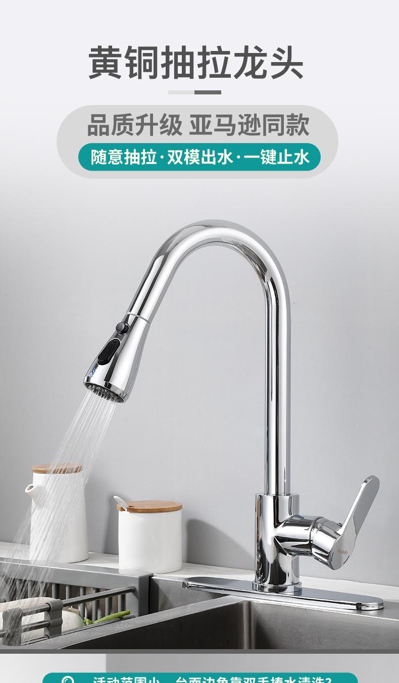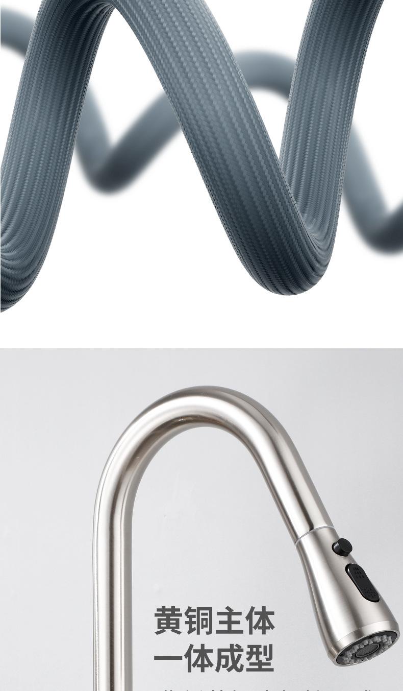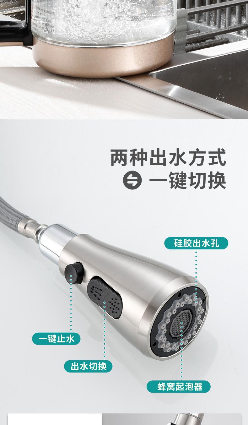 | Grifo de cocina extraíble de latón, grifo para fregadero de lavabo de verduras de acero inoxidable 304 con doble salida de agua caliente y fría |