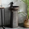 Lavabo de columna de acero inoxidable negro, lavabo de suelo integrado, lavabo de columna para balcón doméstico, lavabo de columna para exterior