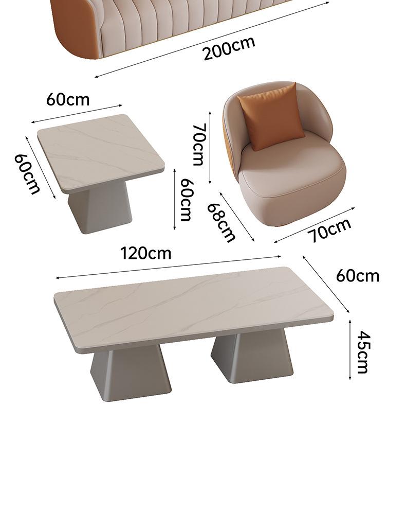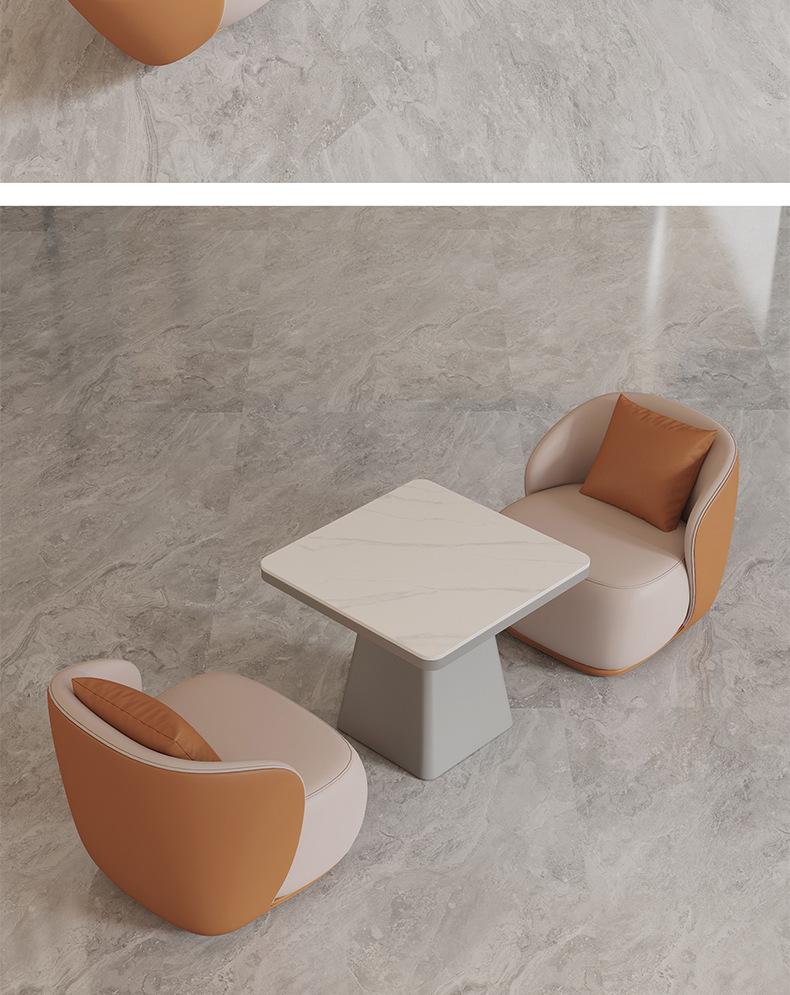 Single sofa (orange), Single sofa (gray), Square table 60*60*60cm (snow mountain stone), Square table 70*70*60...