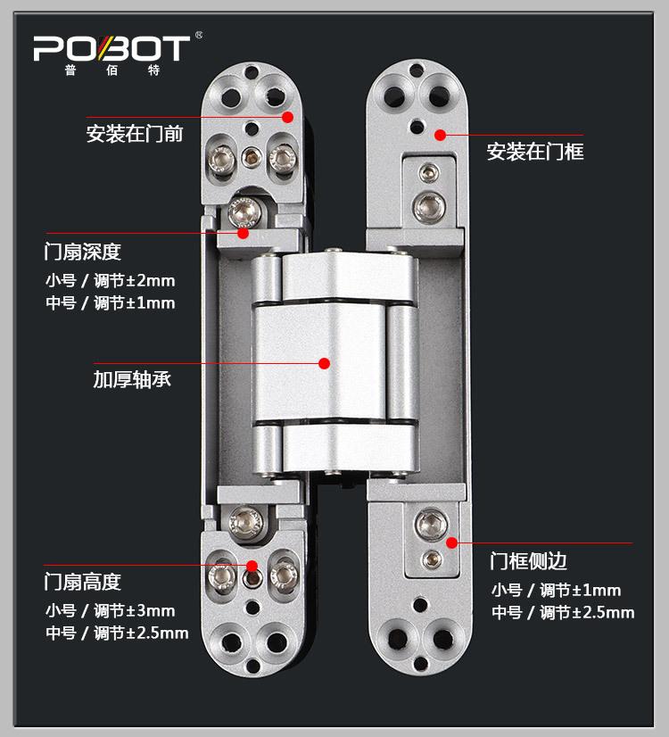 Bisagra invisible ajustable tridimensional, bisagra cruzada, puerta plegable, bisagra oculta, bisagra oculta de 180 grados