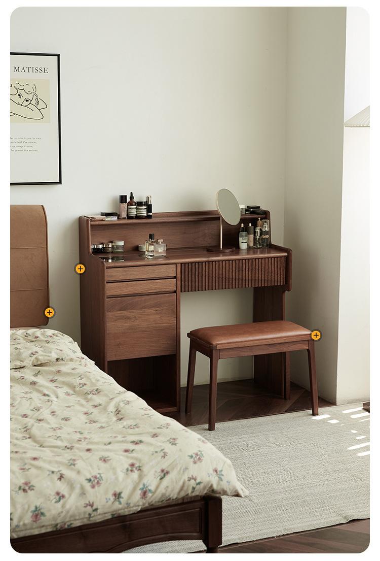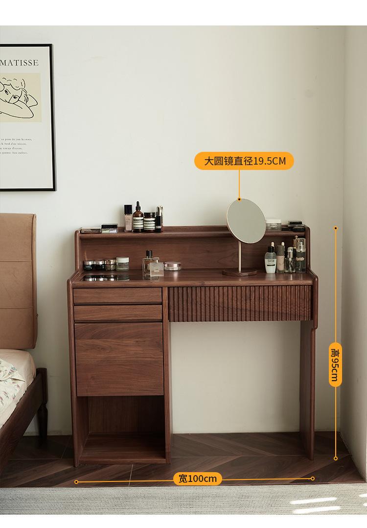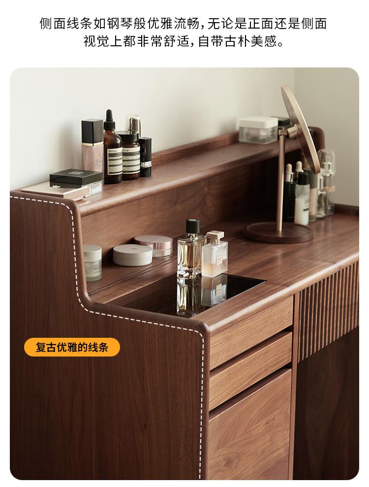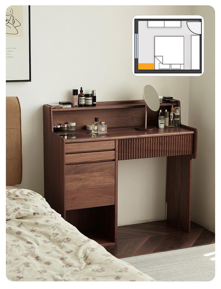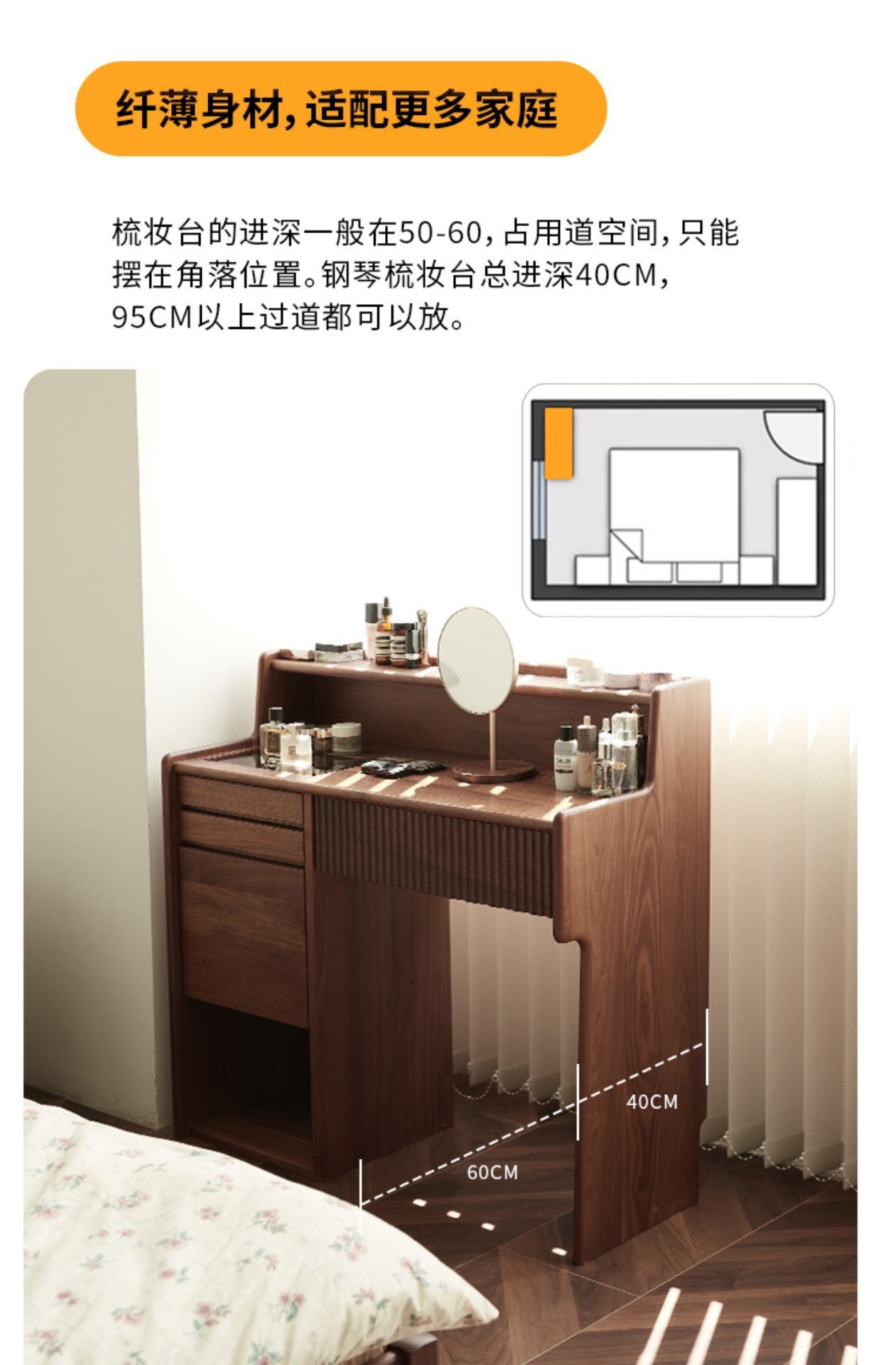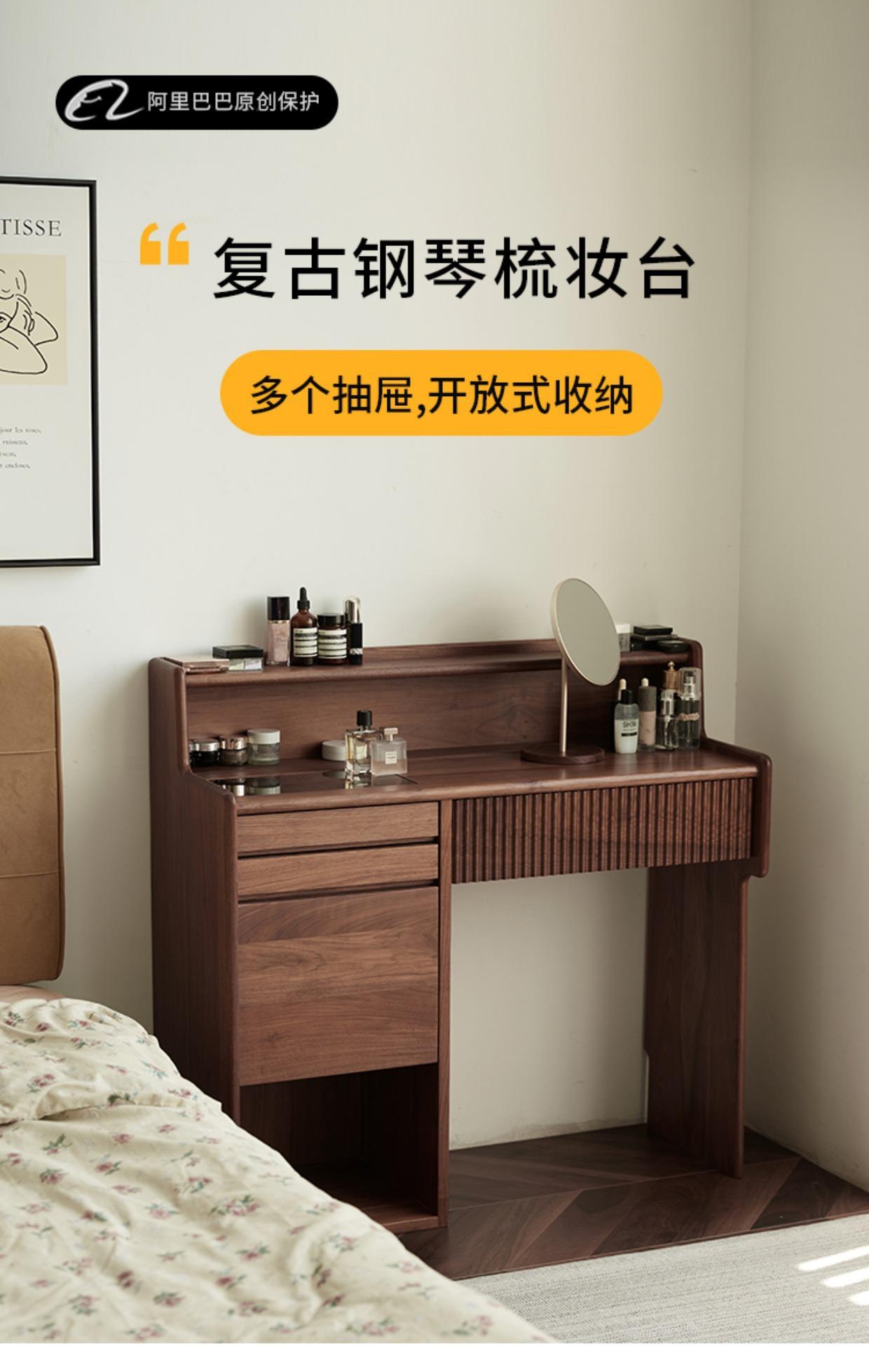 Tocador de piano de madera maciza estilo japonés moderno minimalista para dormitorio mesa de maquillaje nogal negro gabinete de almacenamiento