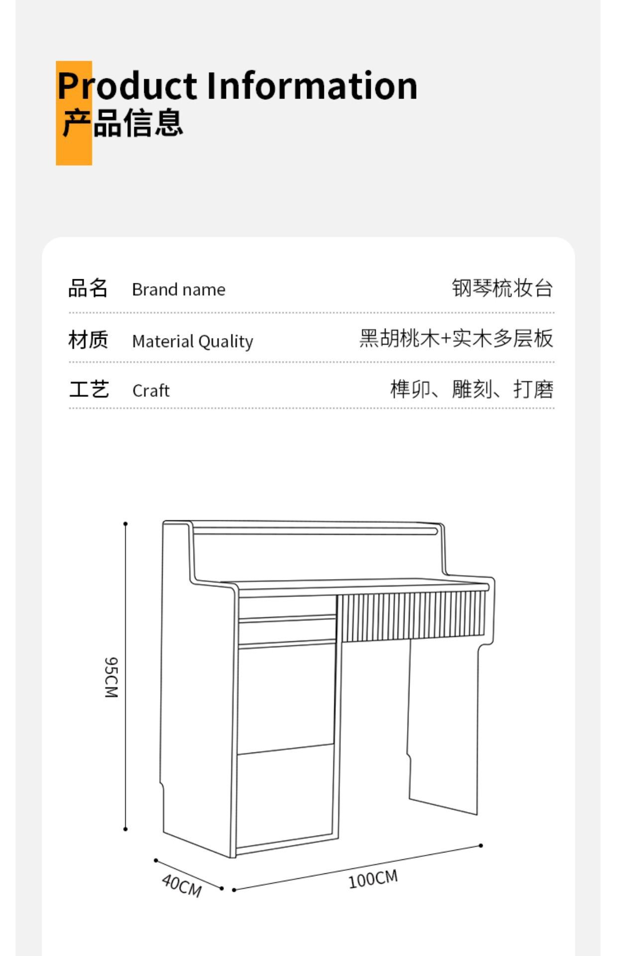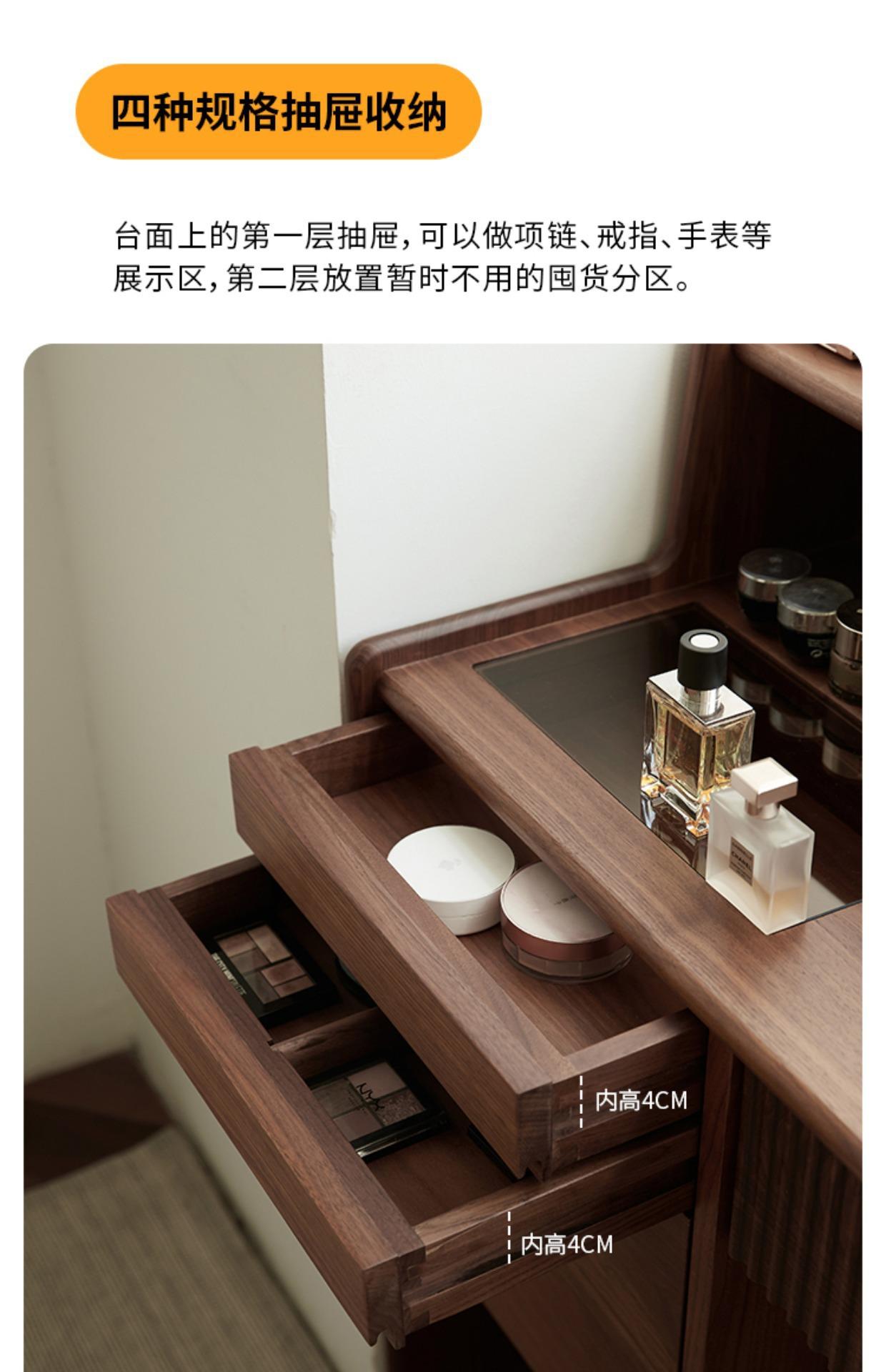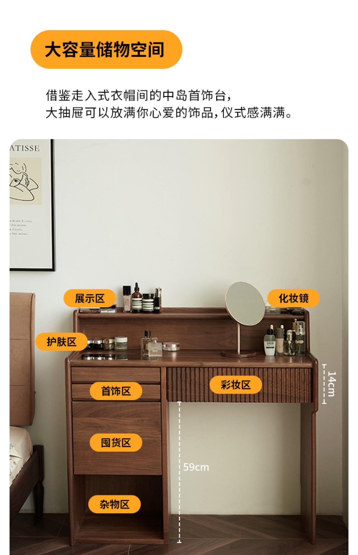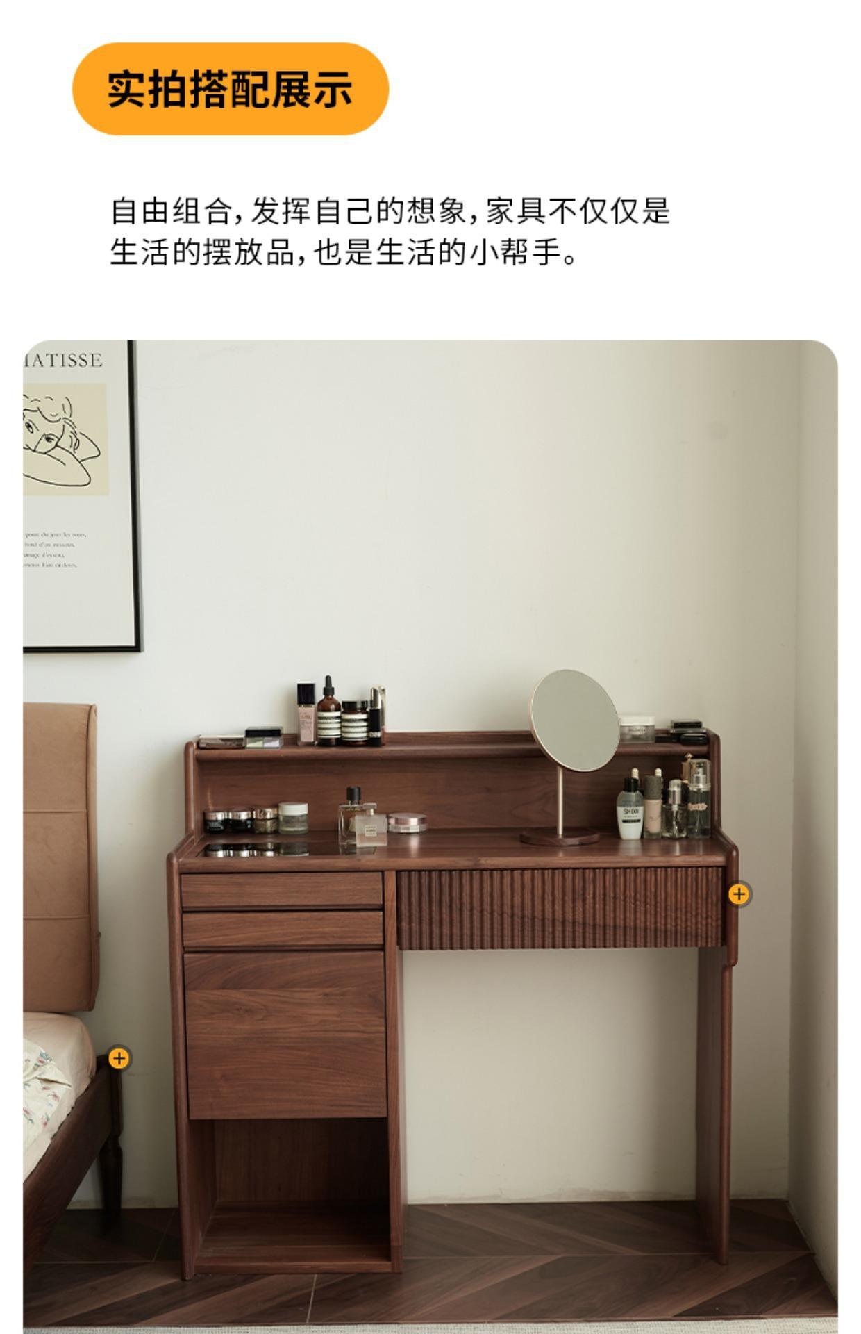 Tocador de piano de madera maciza estilo japonés moderno minimalista para dormitorio mesa de maquillaje nogal negro gabinete de almacenamiento