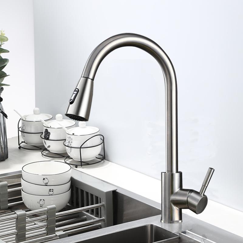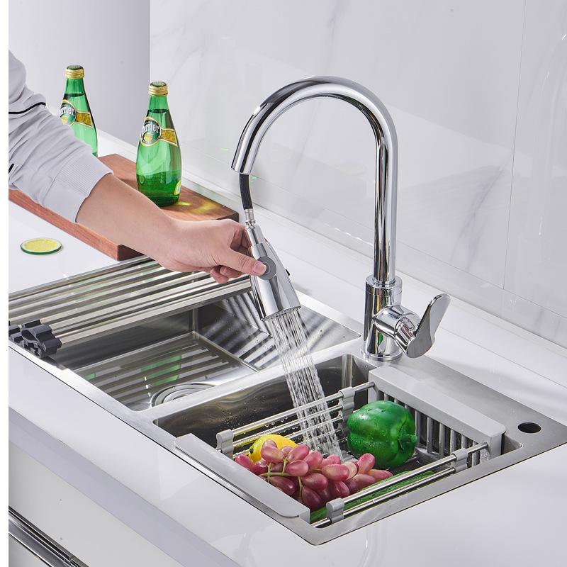 Grifo extraíble de cocina transfronterizo 304, grifo giratorio universal retráctil para lavabo de verduras, grifo de agua caliente y fría