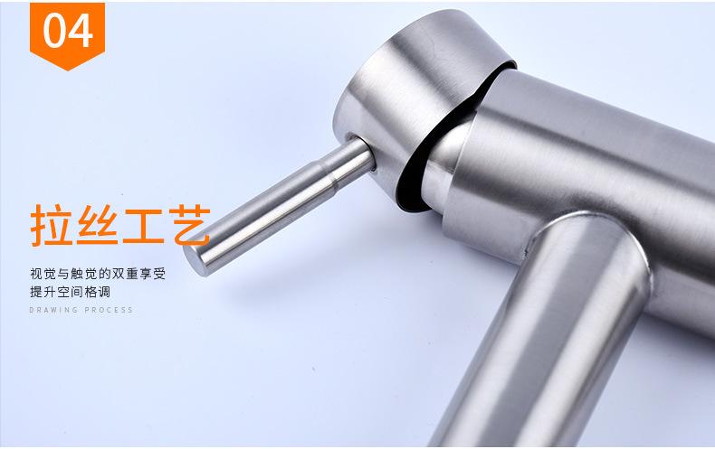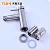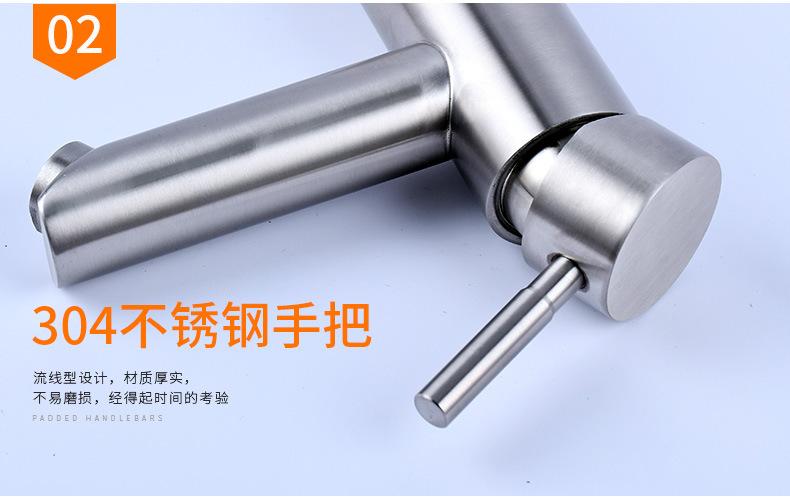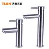 Grifo de lavabo de acero inoxidable 304 al por mayor de fábrica, grifo de lavabo de boca recta de un solo agujero con válvula mezcladora de agua fría y caliente