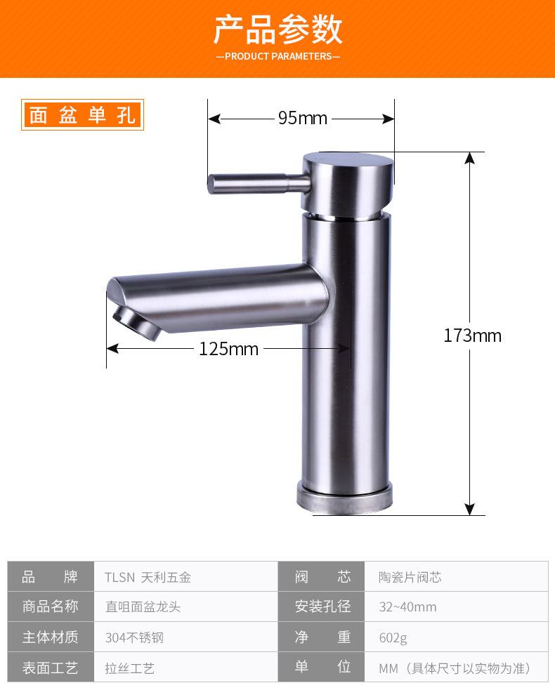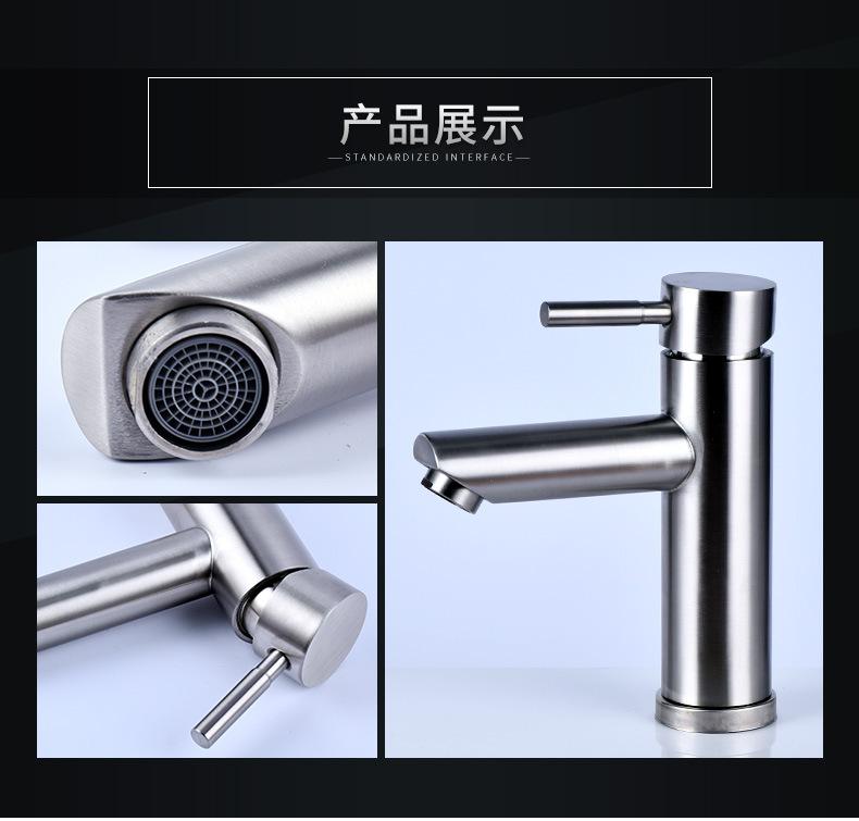 Compra Grifo de lavabo de acero inoxidable 304 al por mayor de fábrica, grifo de lavabo de boca recta de un solo agujero con válvula mezcladora de agua fría y caliente al por mayor en Joom.pro