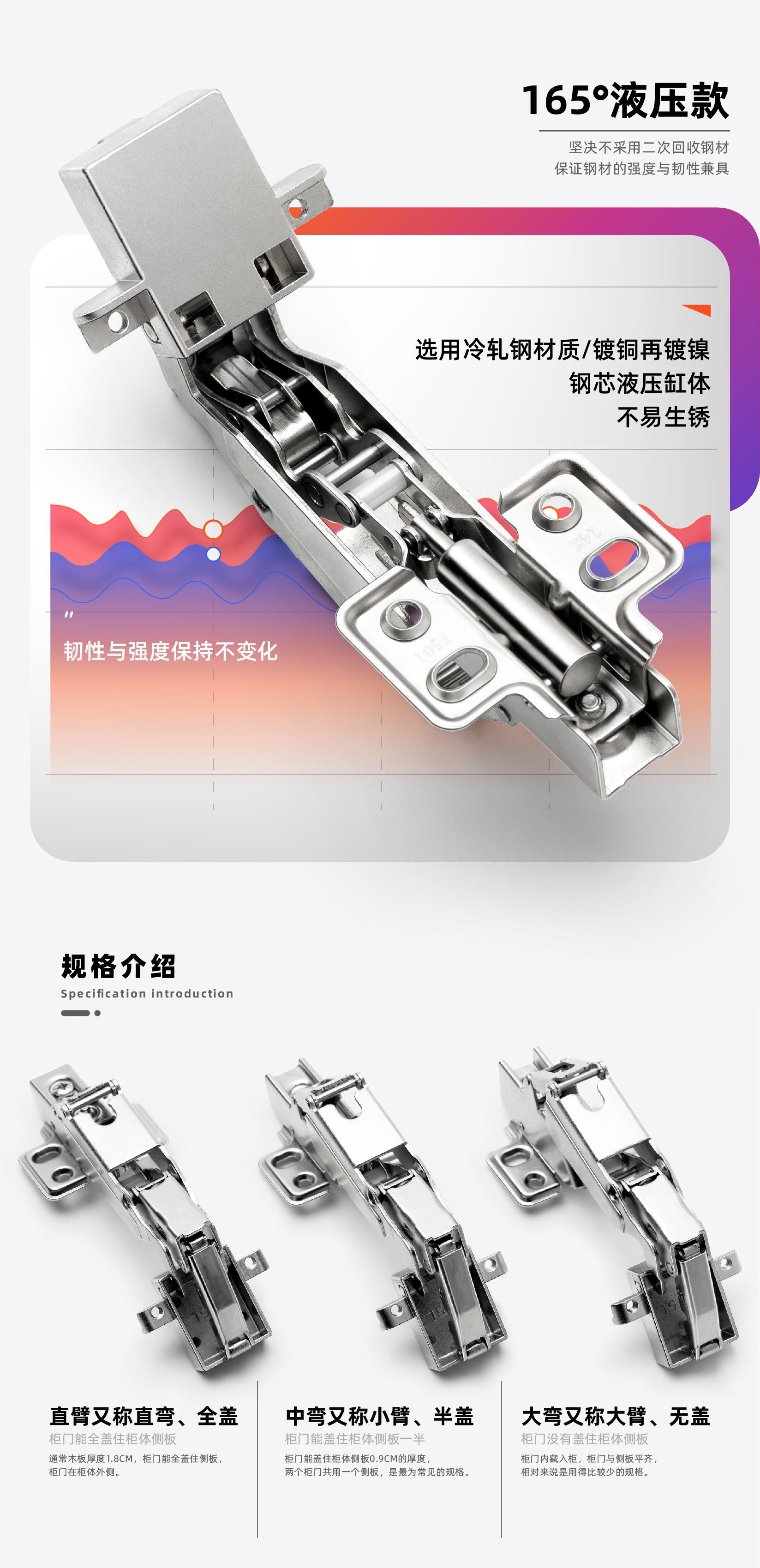 165 ° nickel-plated straight arm/full cover, 165 ° nickel-plated mid-bend/half-lid, 165 ° nickel-plated large ...