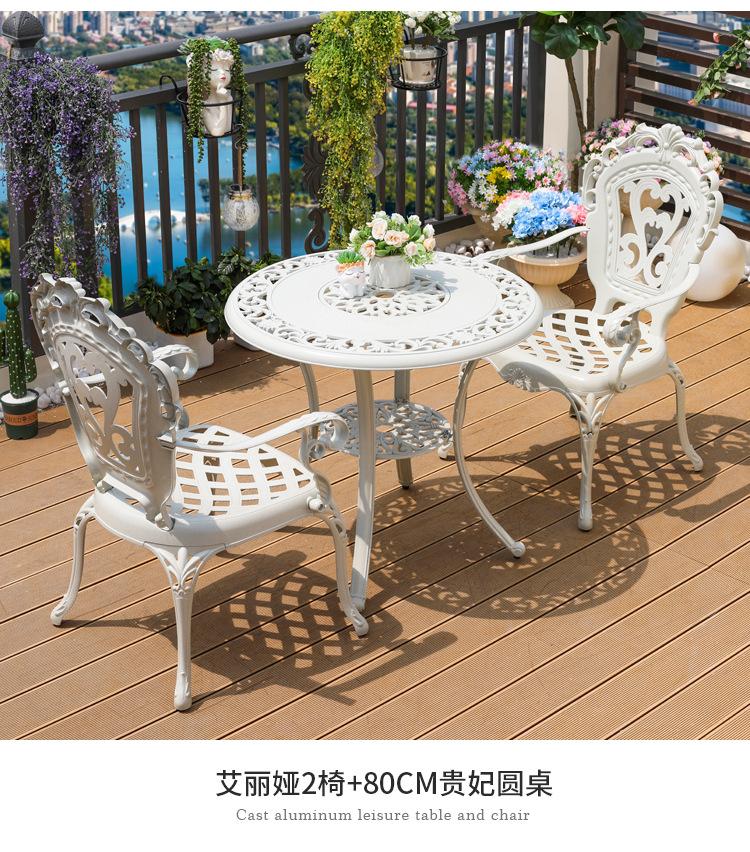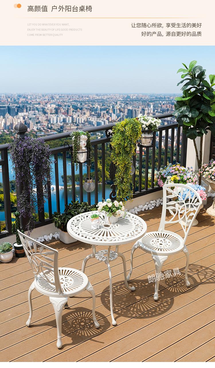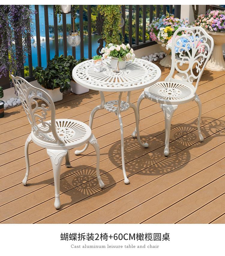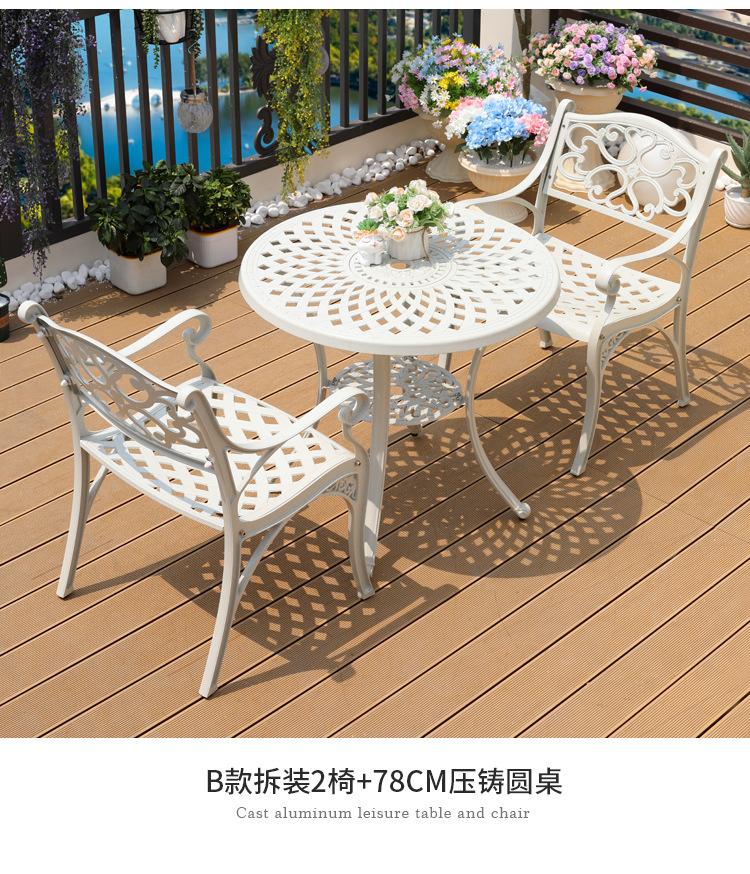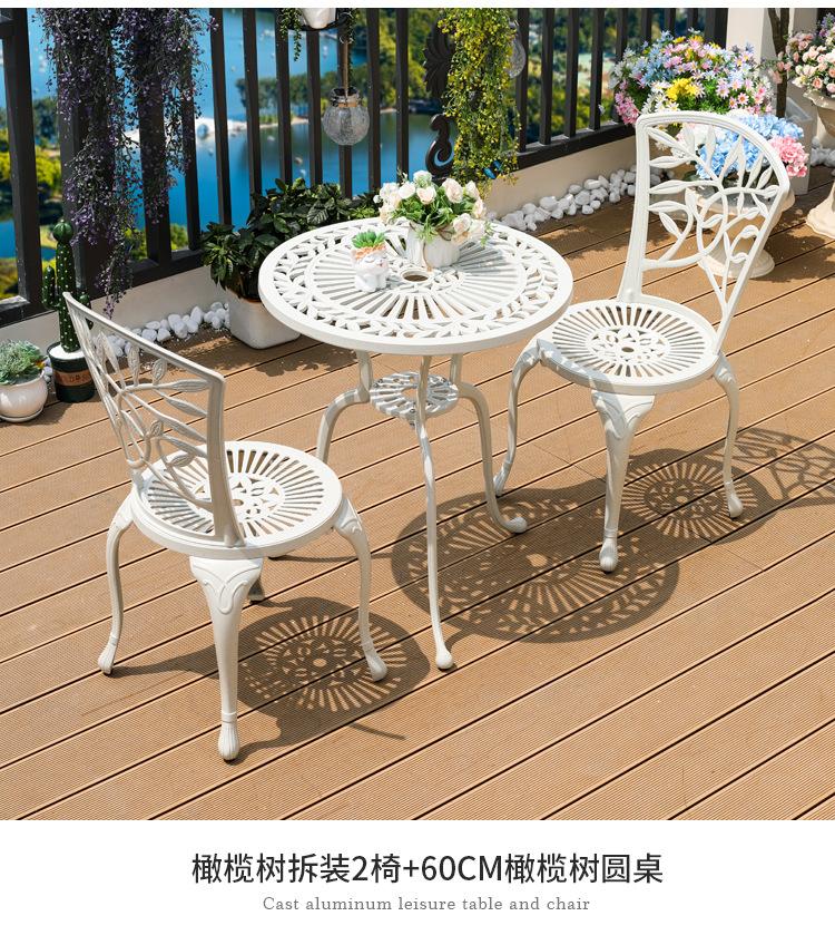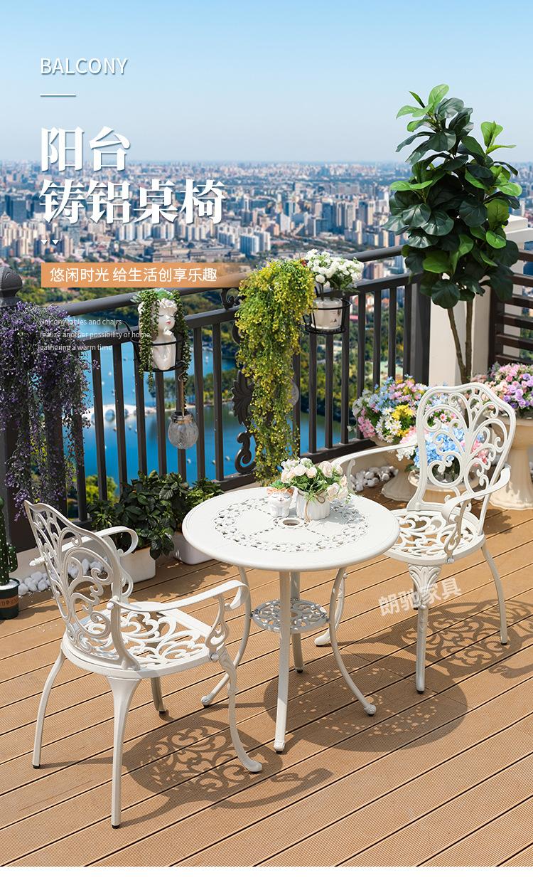 Mesa y silla de aluminio fundido para exteriores, impermeables, para villas, patios, ocio al aire libre, sillas de jardín, de hierro blanco, para balcones, mesa y silla pequeñas.