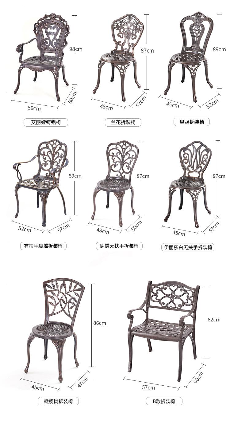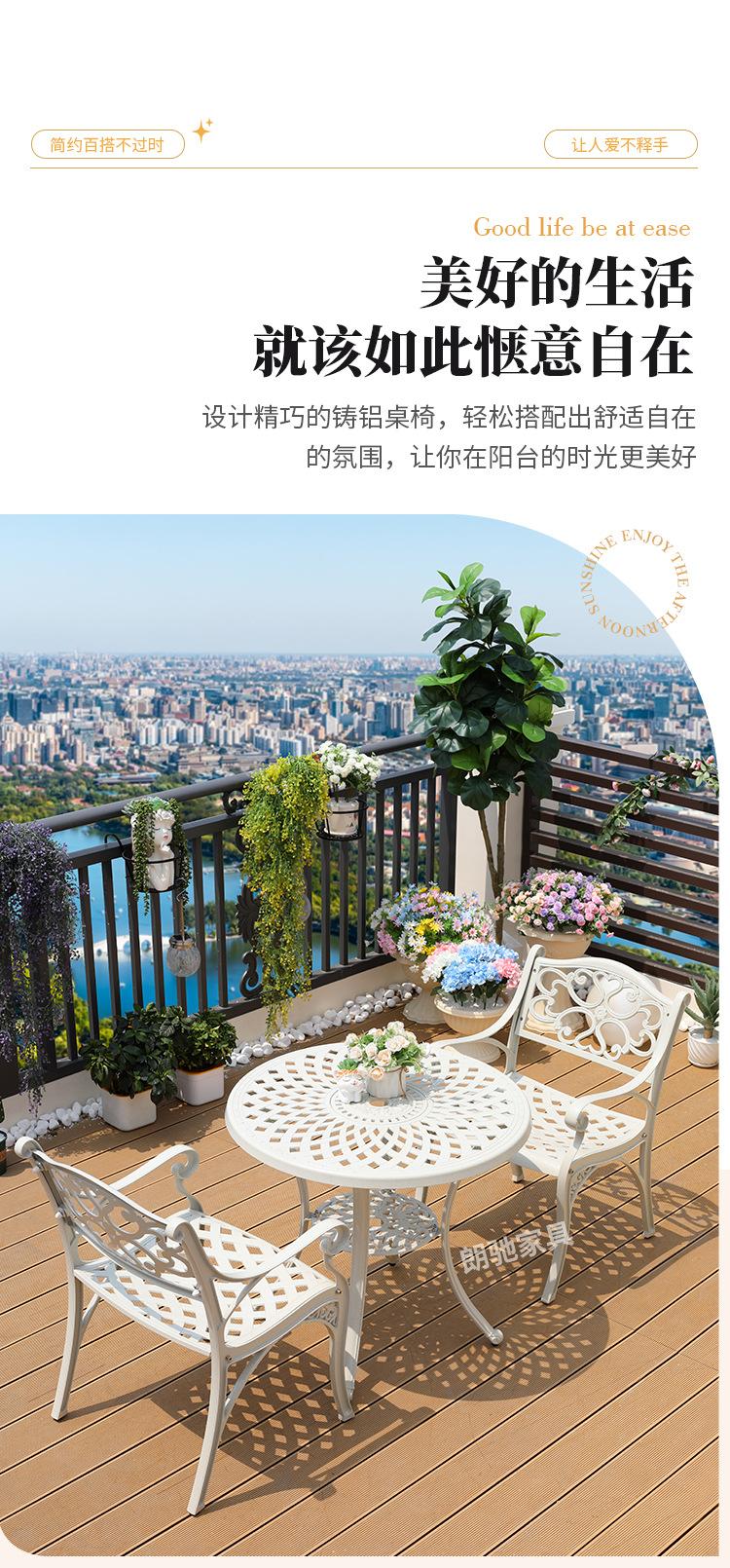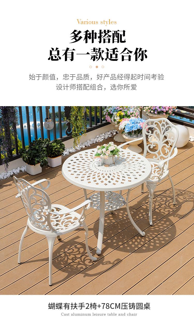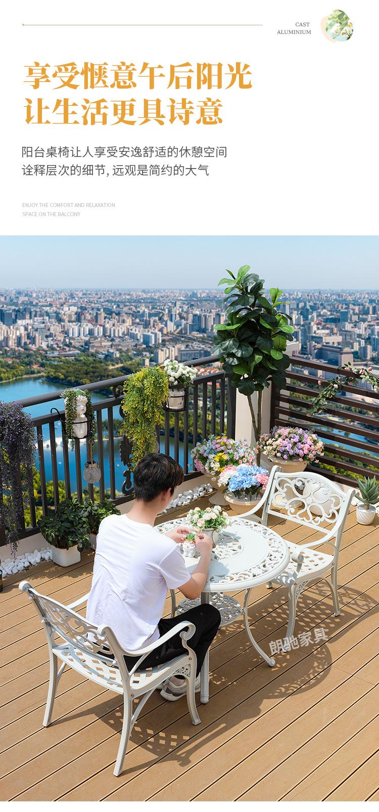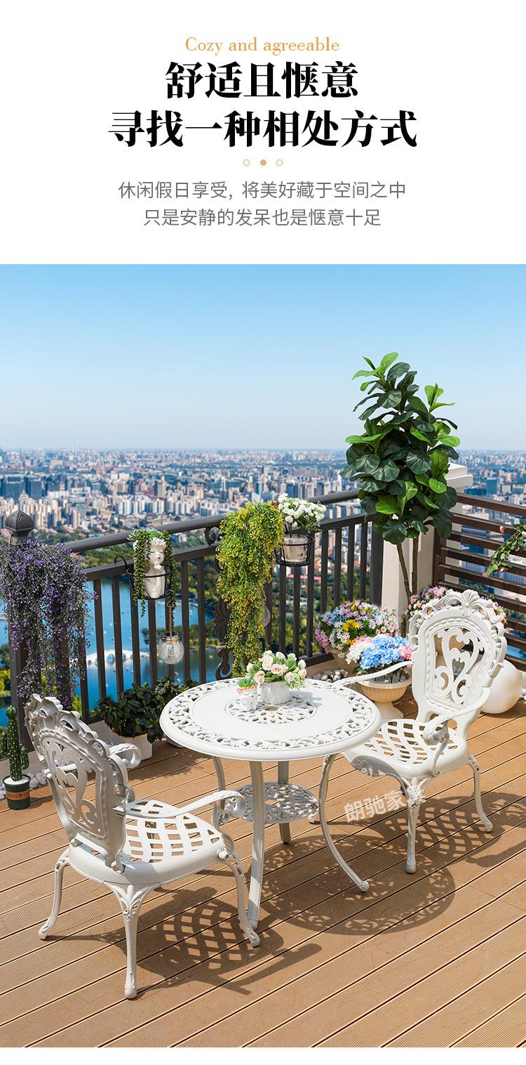 Mesa y silla de aluminio fundido para exteriores, impermeables, para villas, patios, ocio al aire libre, sillas de jardín, de hierro blanco, para balcones, mesa y silla pequeñas.