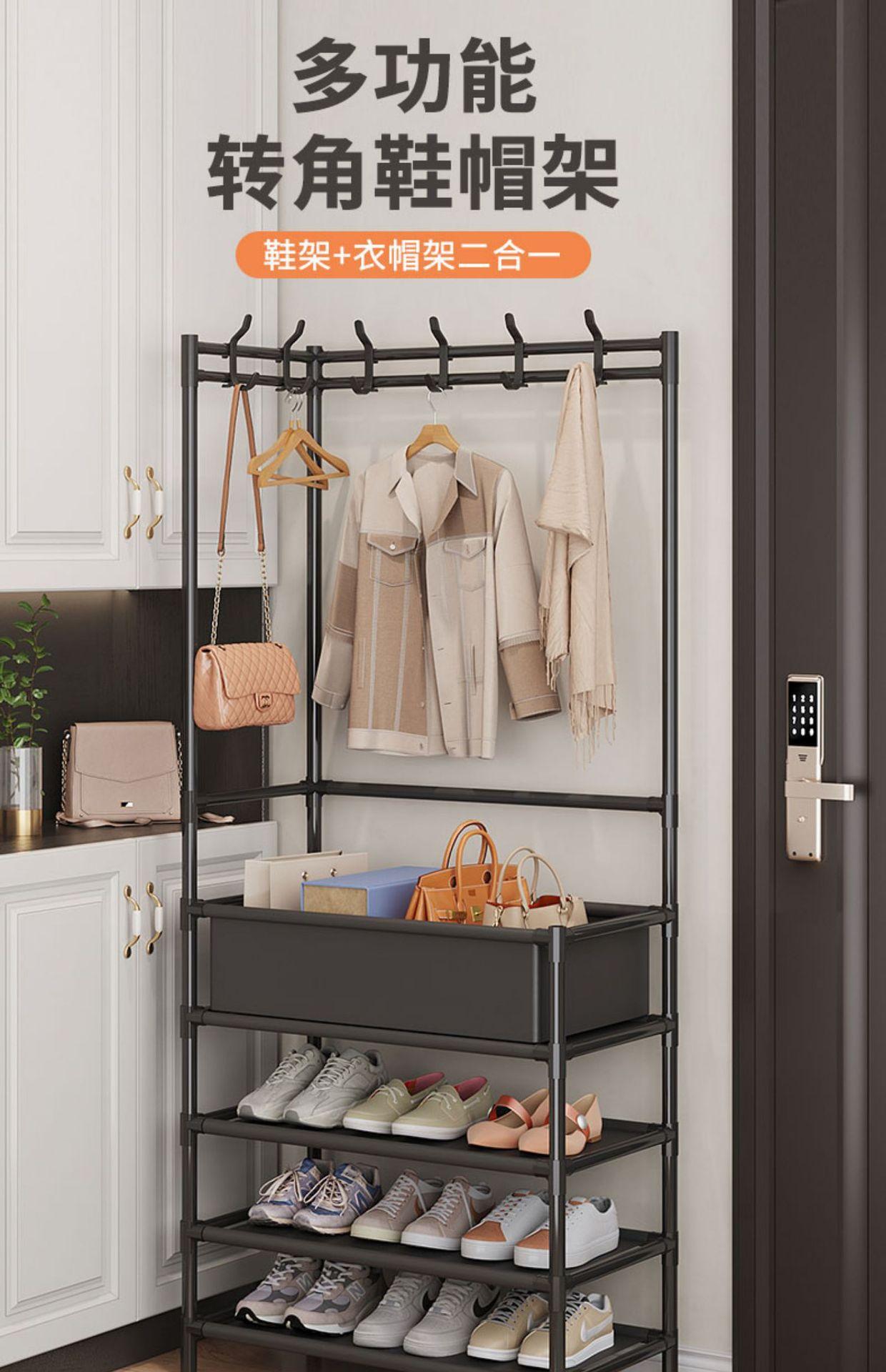 Perchero para zapatos, integrado, de pie, esquinero, sencillo, para dormitorio, hogar, dormitorio, percha, artefacto de almacenamiento multifuncional.
