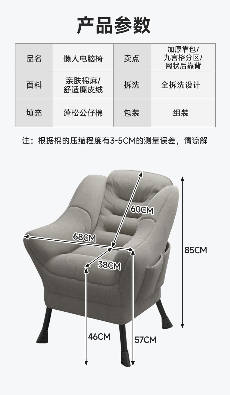 Sofá perezoso reclinable con respaldo, silla de computadora para dormitorio de estudiantes, sofá pequeño individual para el hogar, dormitorio, silla de ocio para balcón