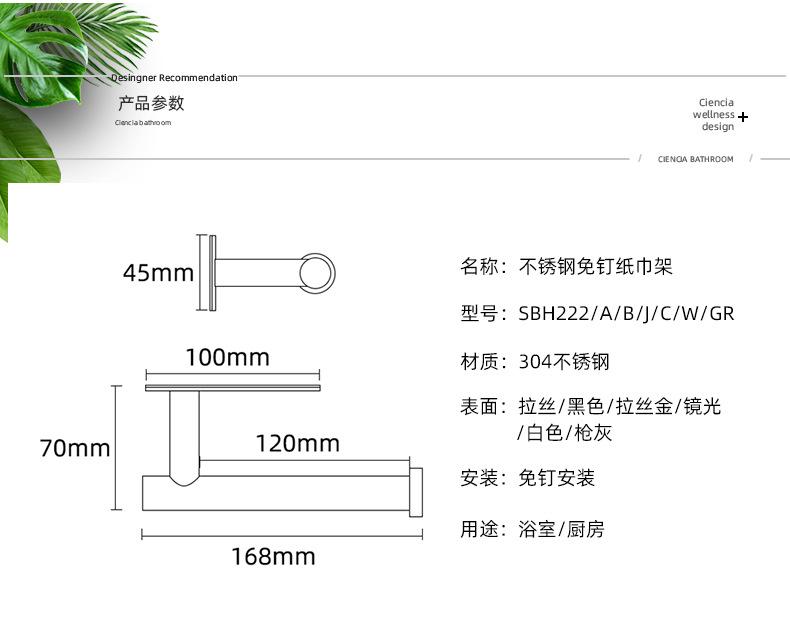 Portarrollos de papel higiénico de acero inoxidable 304 sin perforaciones, soporte para rollo de papel higiénico, soporte para papel higiénico, soporte colgante para baño montado en la pared