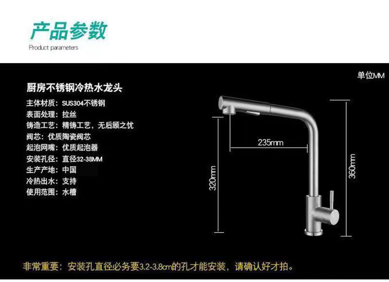 Grifo Extraíble de Acero Inoxidable 304 Transfronterizo para Cocina, Frío y Caliente, Universal, Telescópico, para Fregadero, Lavabo, Fregadero de Lavandería