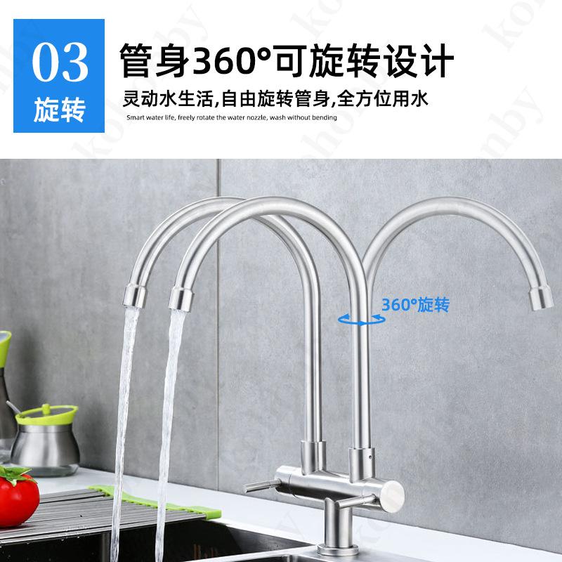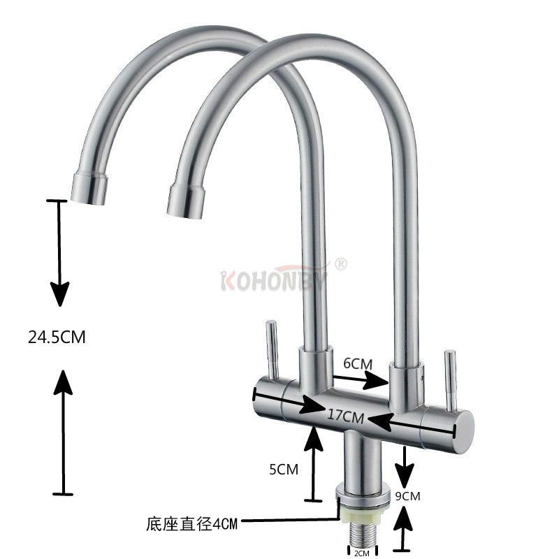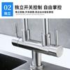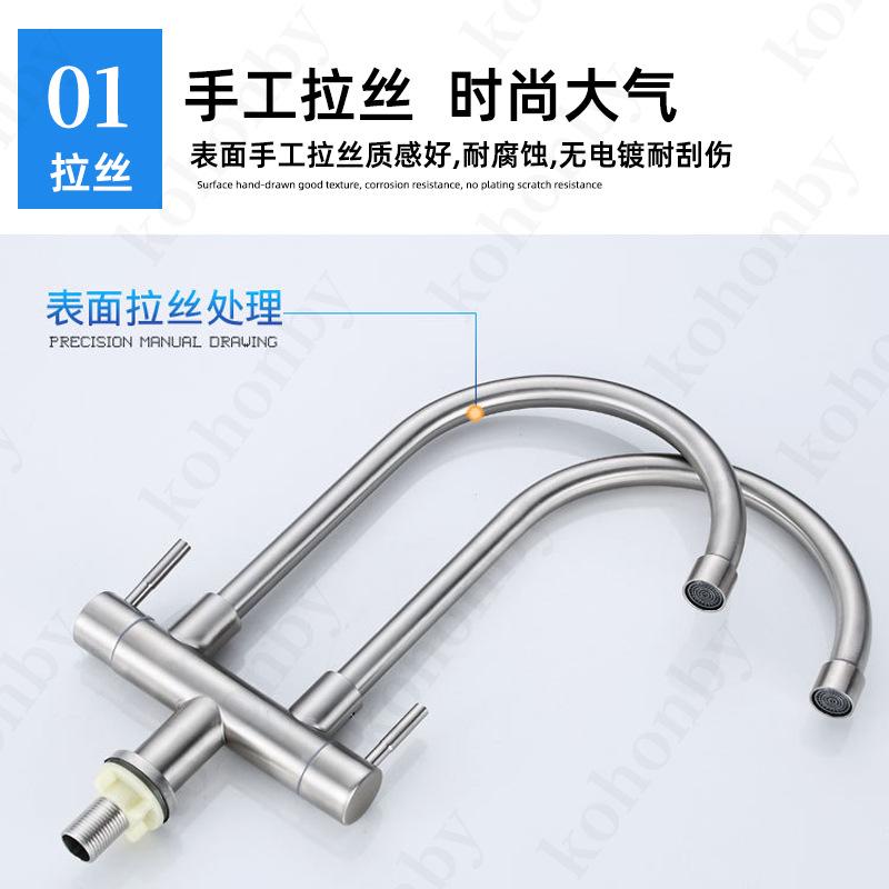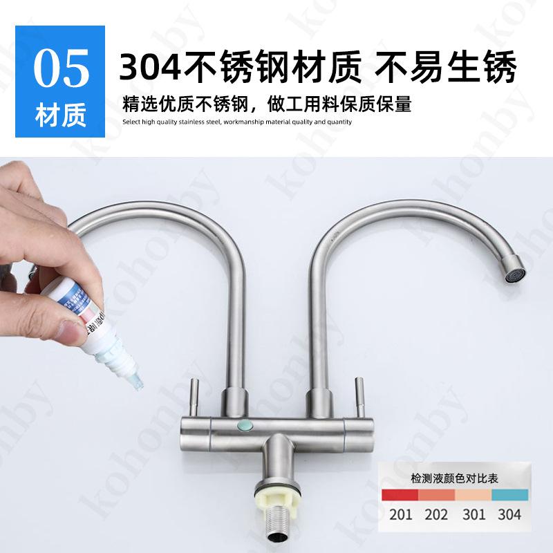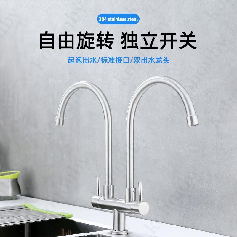 Grifo de cocina de doble tubo de acero inoxidable 304, grifo para fregadero, lavavajillas, grifo para el hogar, grifo giratorio de un solo mango con doble control.