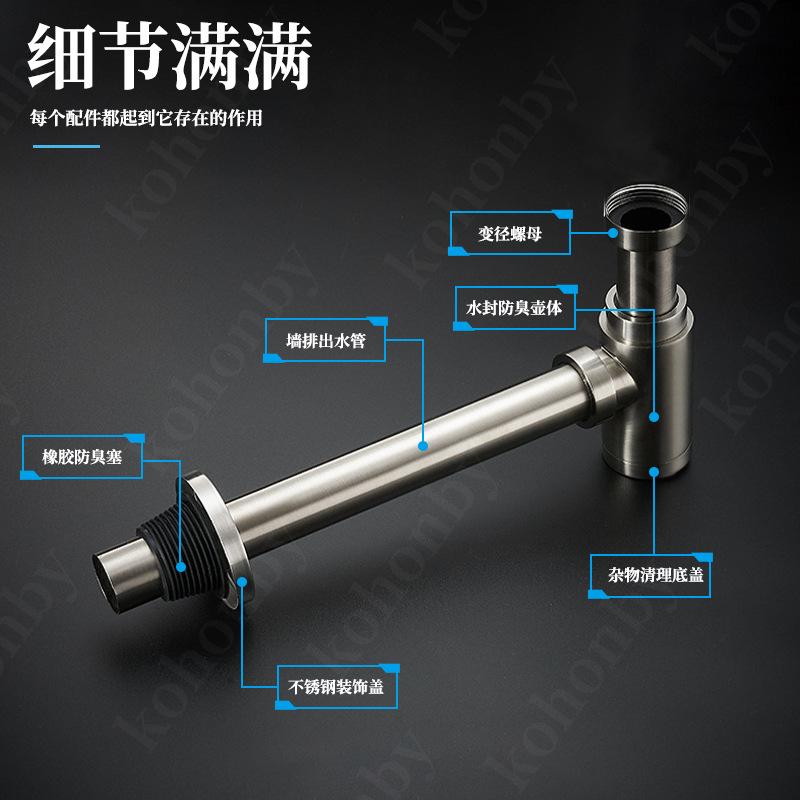 Bajante de acero inoxidable redondo desodorante a prueba de insectos escurridor de pared lavabo bajante escurridor separador de agua
