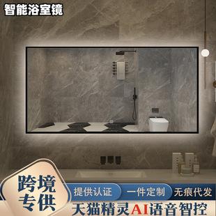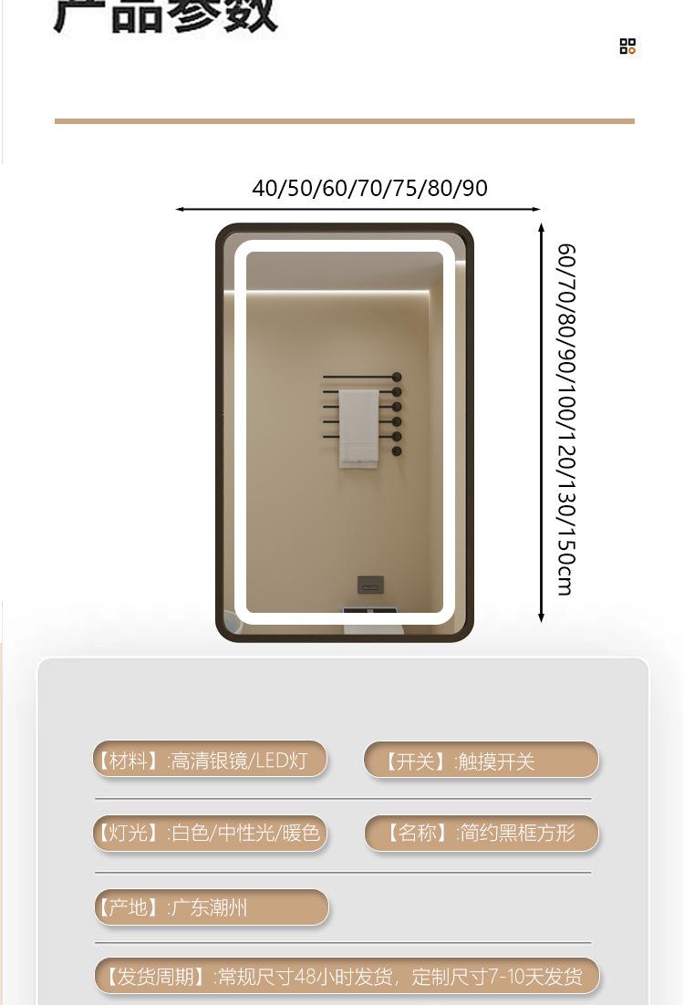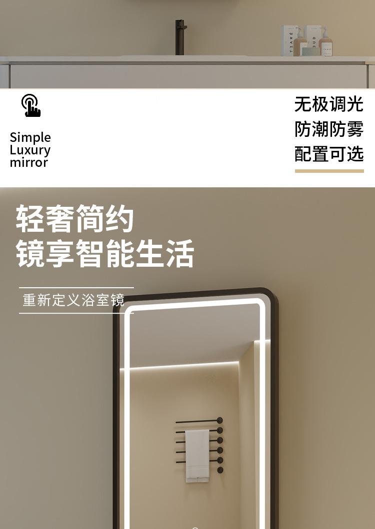 Espejo inteligente LED cuadrado comercial con marco de aleación de aluminio ligero, espejo de baño antivaho HD, espejo cosmético para baño