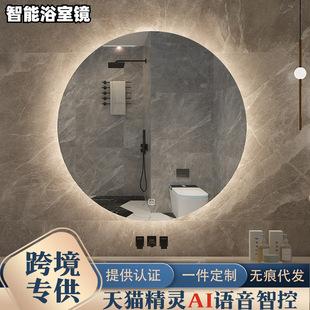 Espejo de Baño Redondo Nórdico Espejo Inteligente Antivaho de Pared con Sensor Táctil Luz LED Espejo de Maquillaje