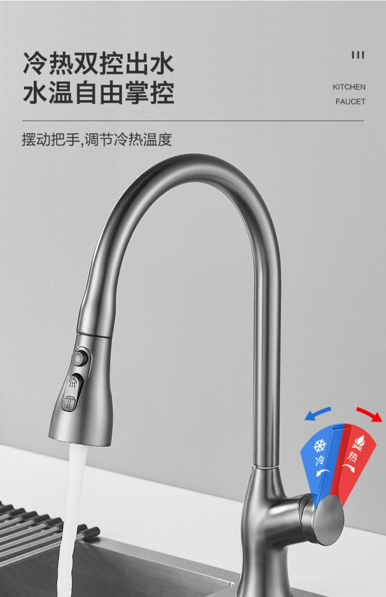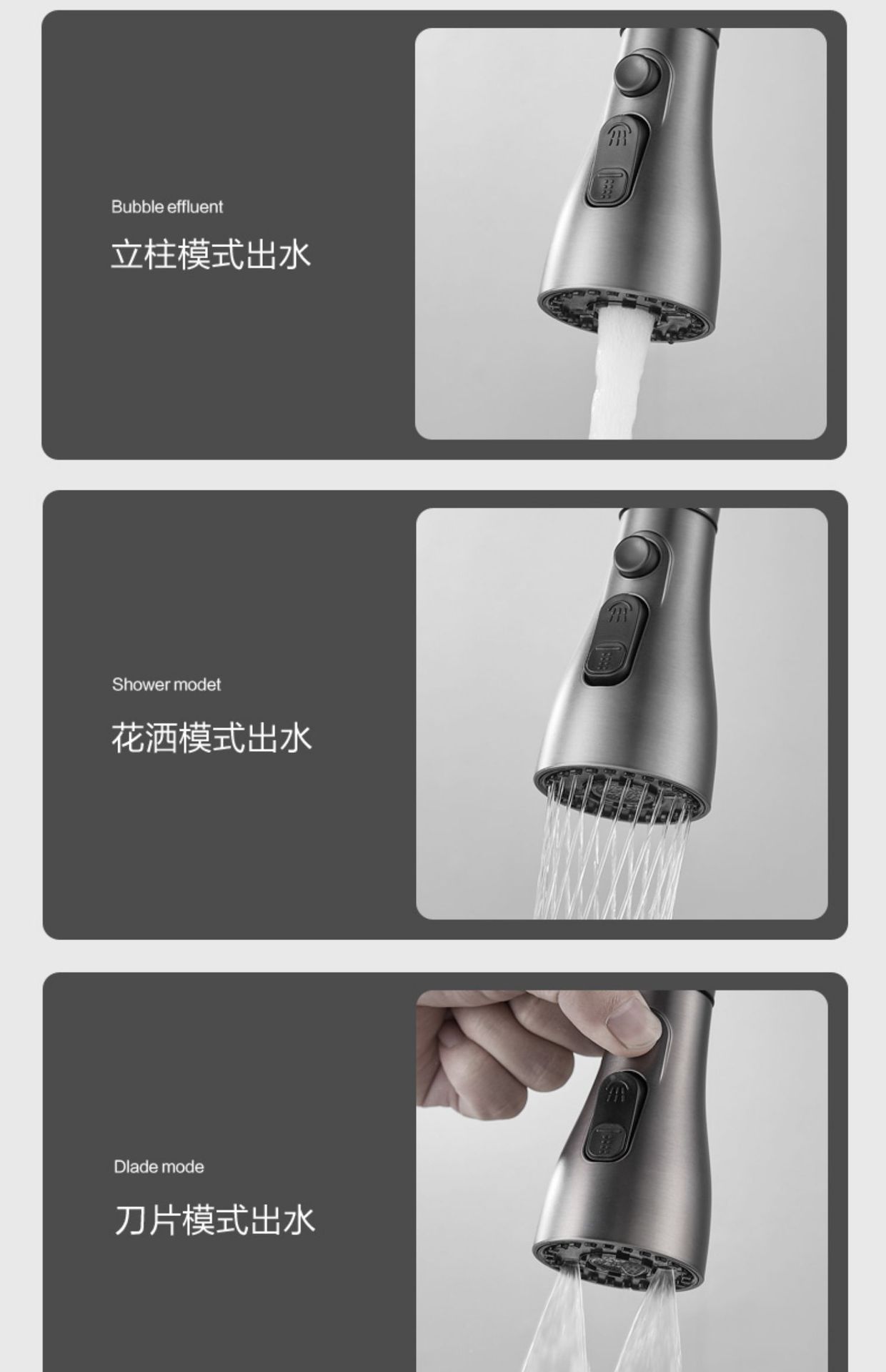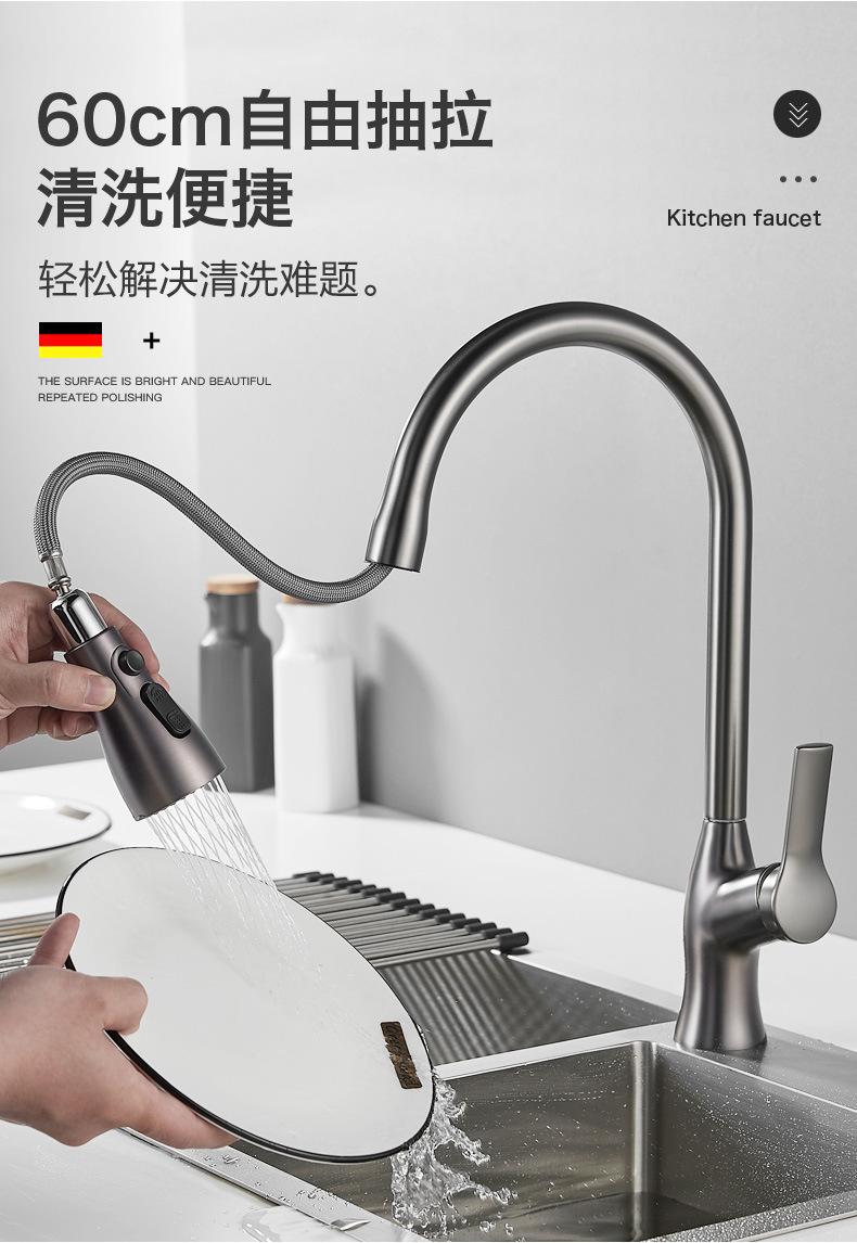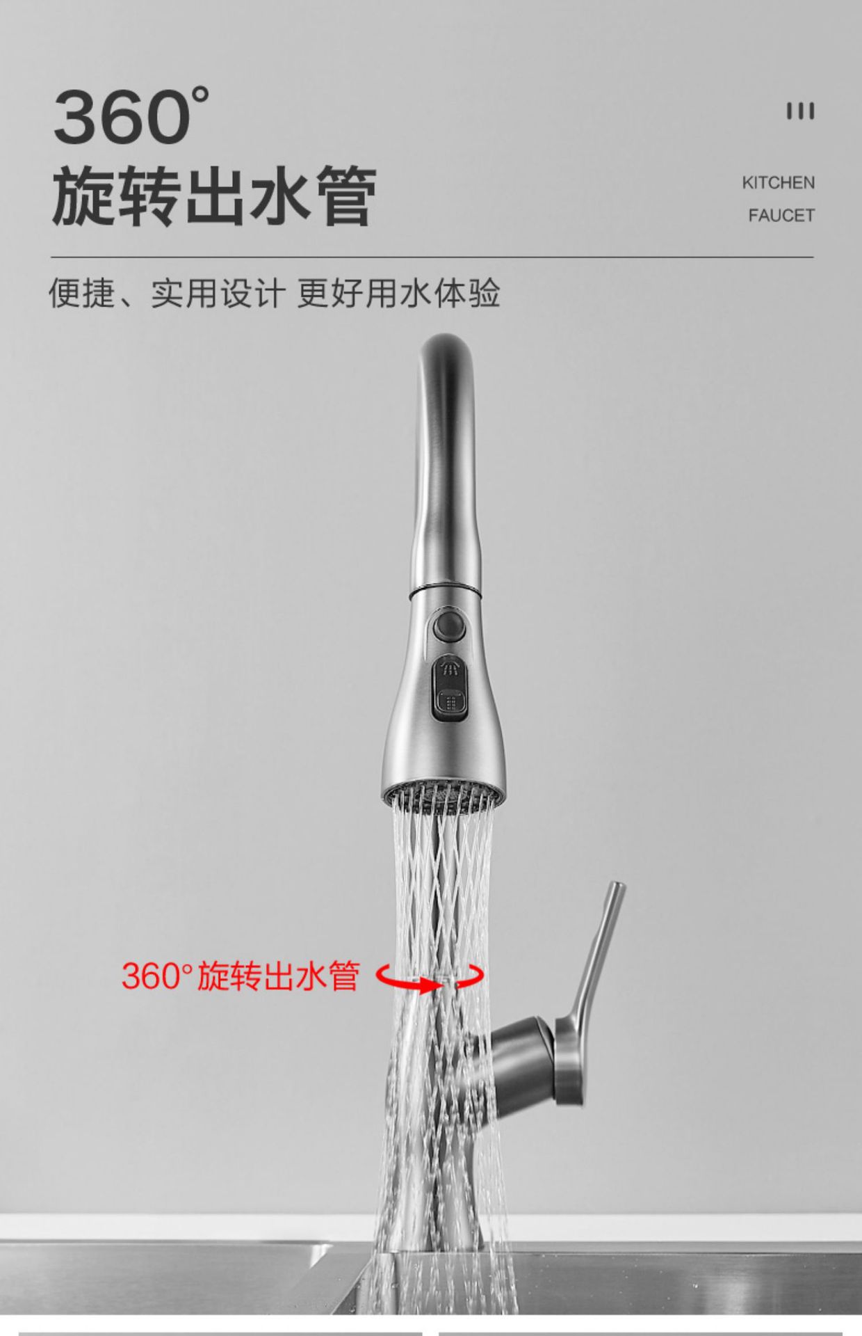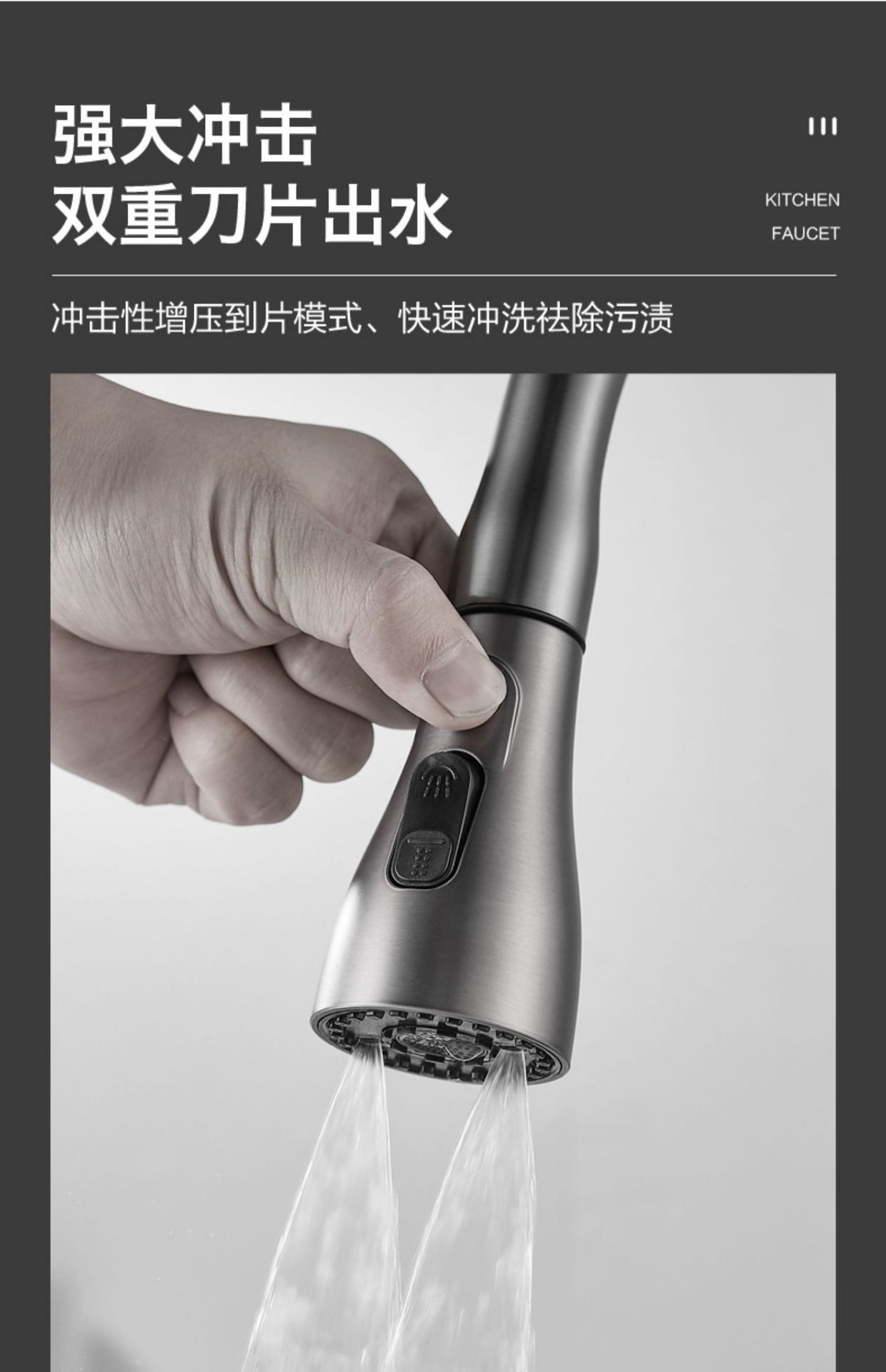 Compra Grifo de Cocina Extraíble Frío y Caliente Giratorio Fregadero Lavavajillas Estufa Doble Salida Fregadero Recubrimiento al Vacío al por mayor en Joom.pro