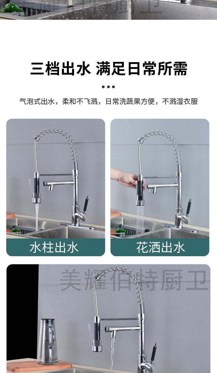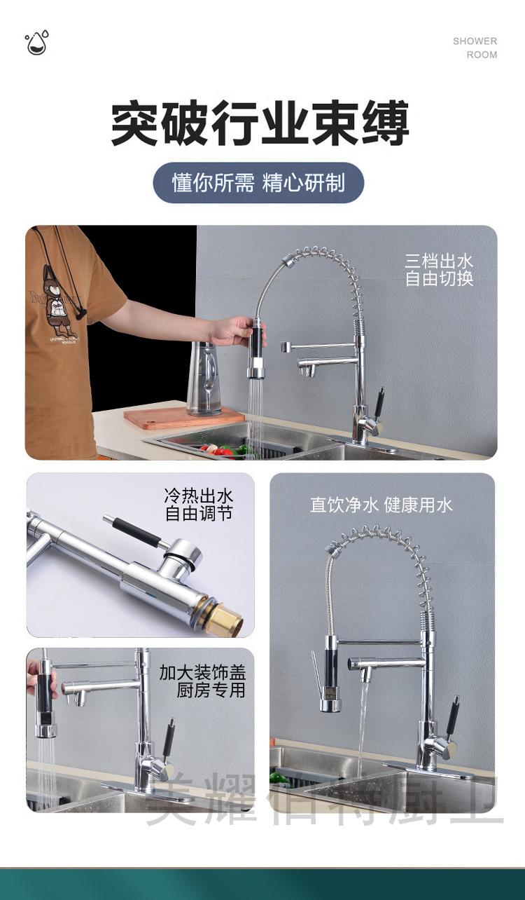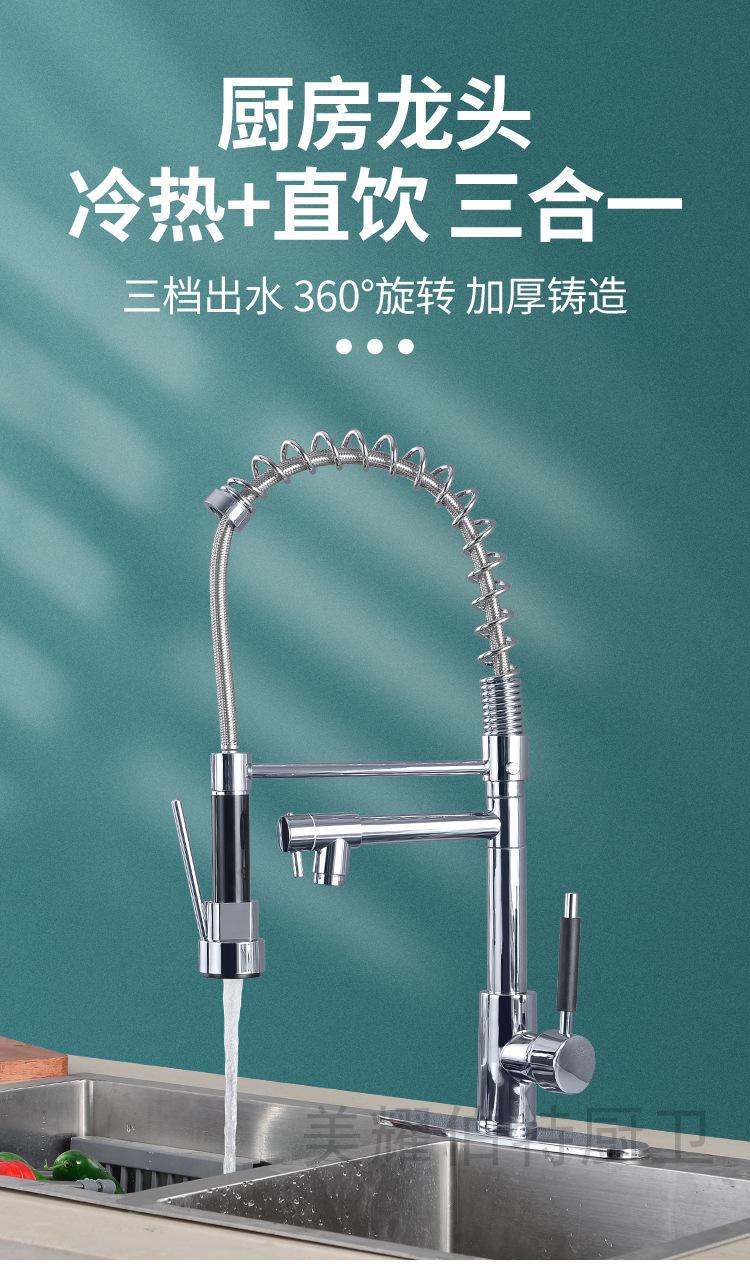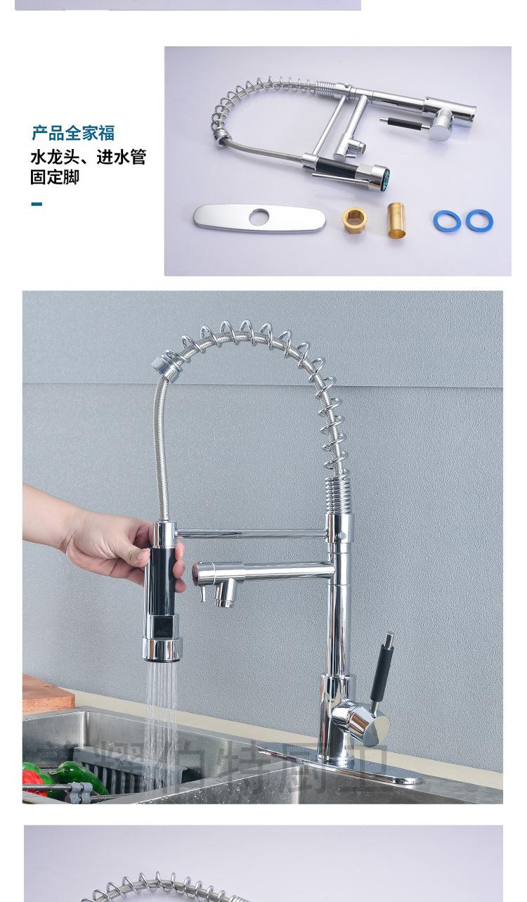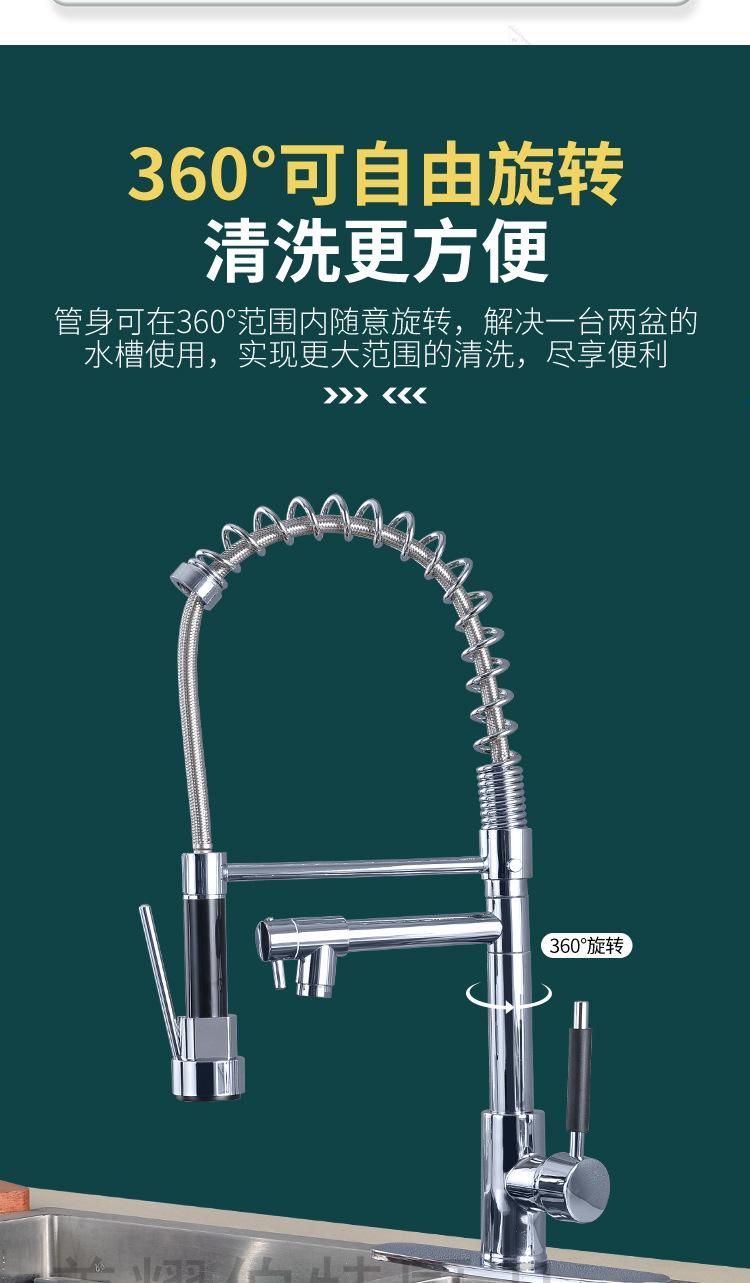 Grifo de cocina de resorte de doble función transfronterizo, grifo de fregadero retráctil giratorio universal para lavar verduras en agua fría y caliente.